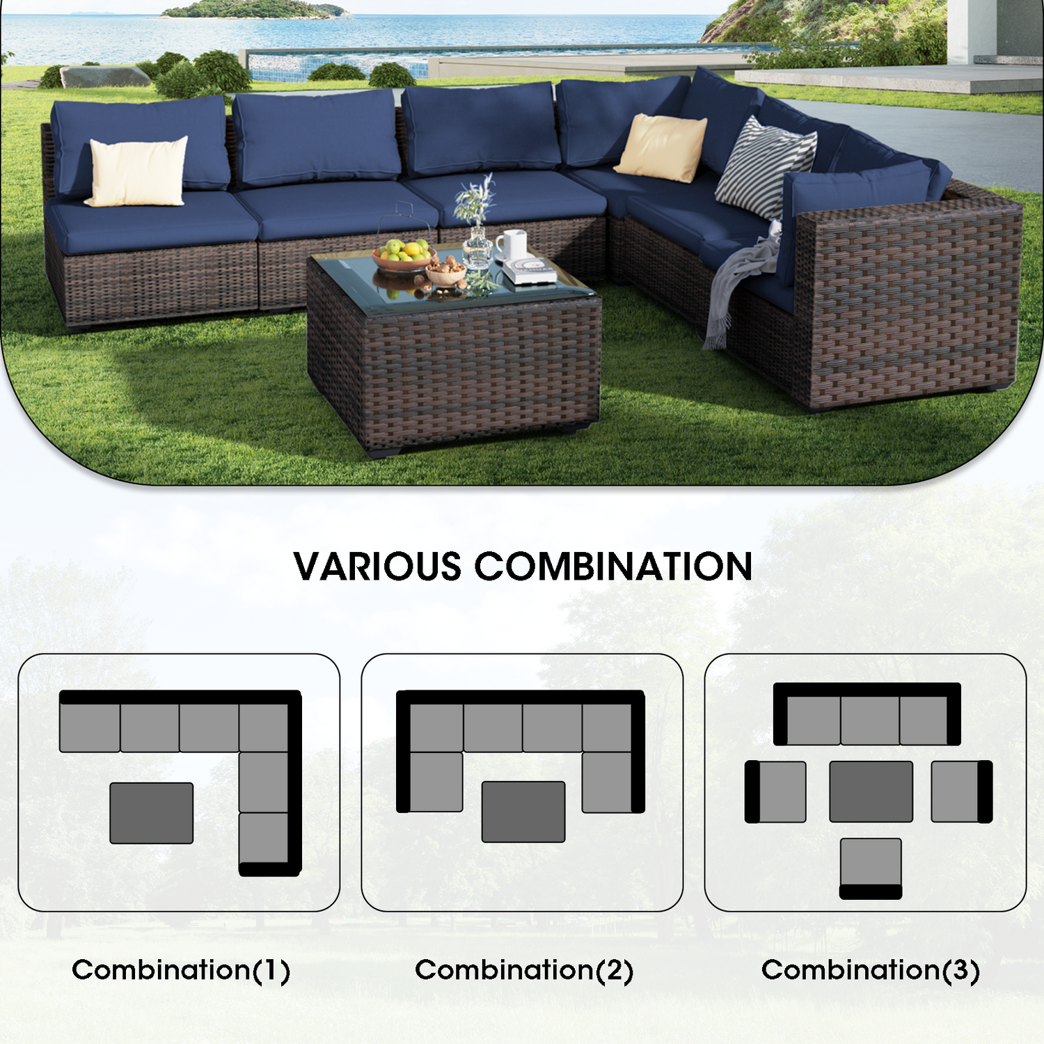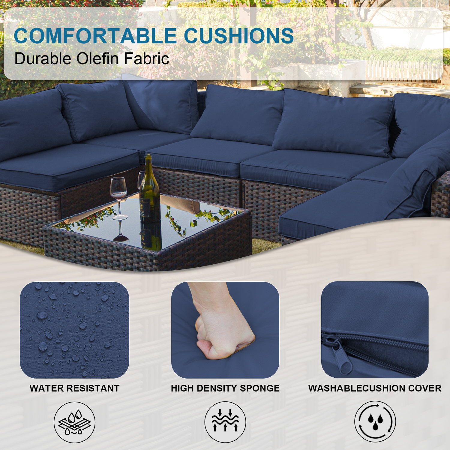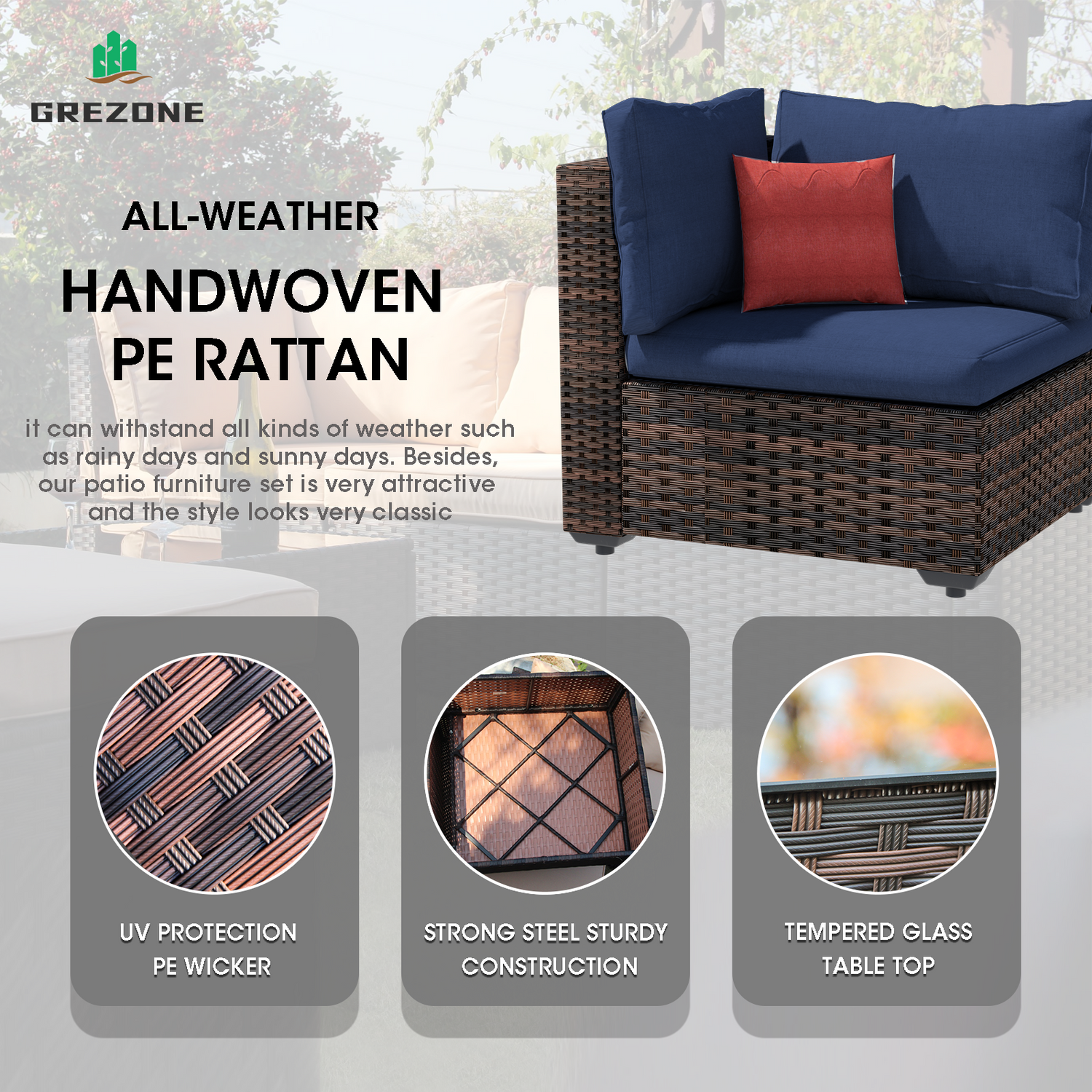 Grezone 7 Patio Outdoor Furniture Wicker Sectional Sofa Couch Lawn Sectional, Red