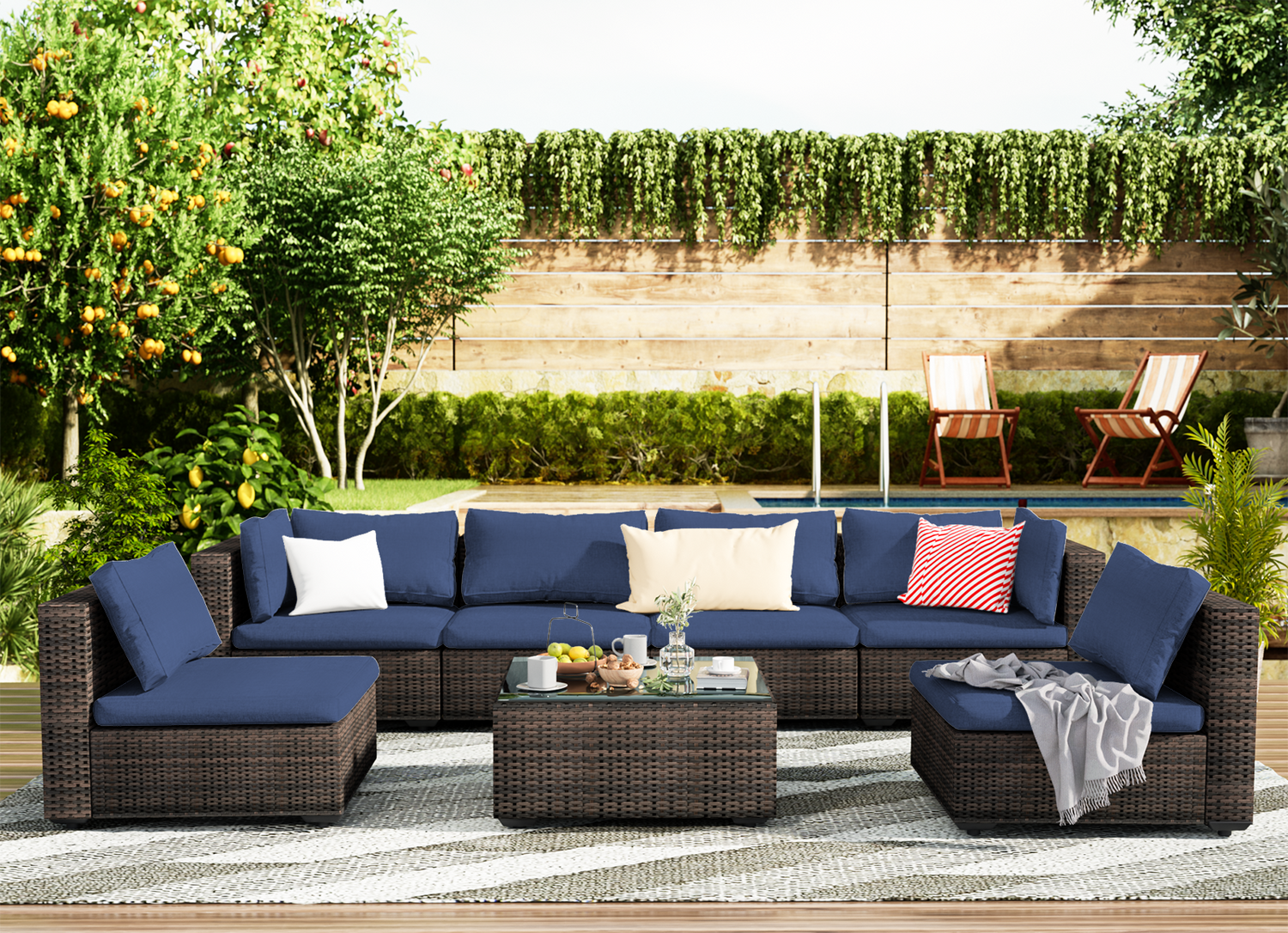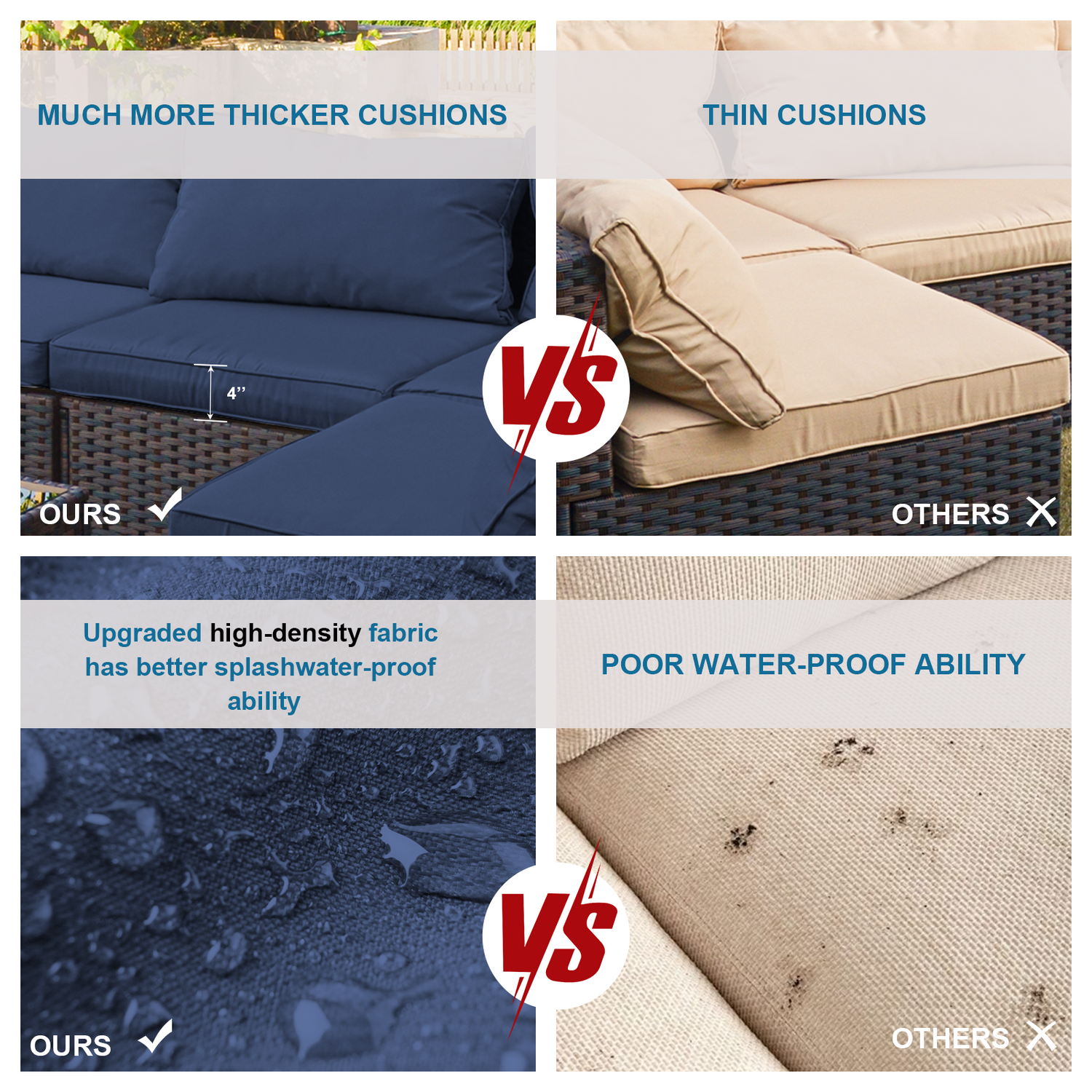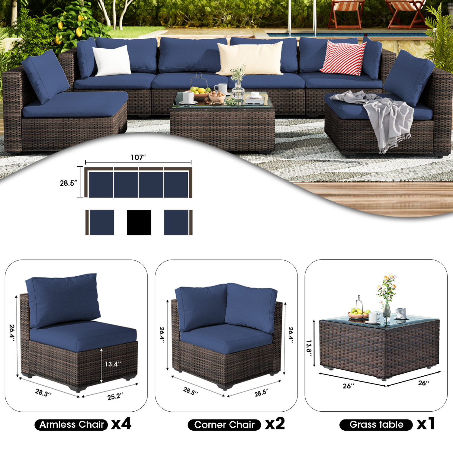 Grezone 7 Patio Outdoor Furniture Wicker Sectional Sofa Couch Lawn Sectional, Red