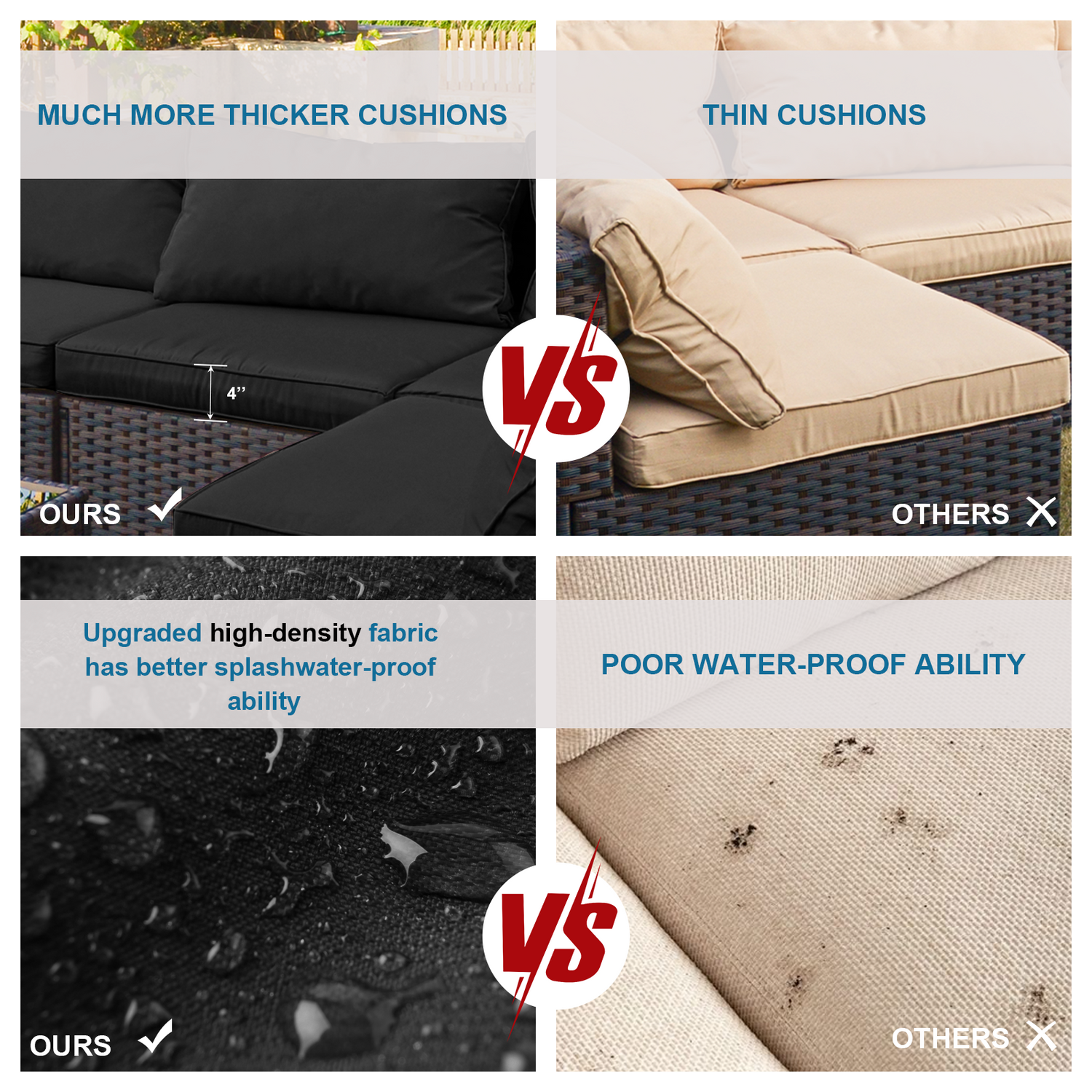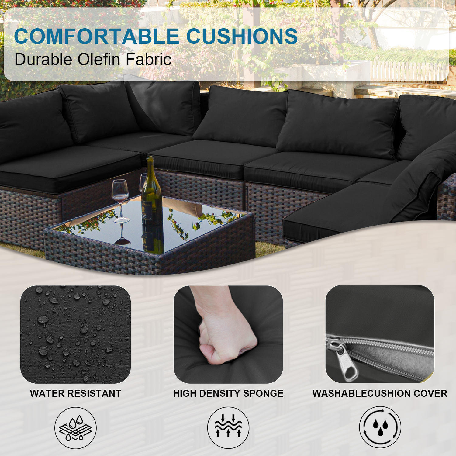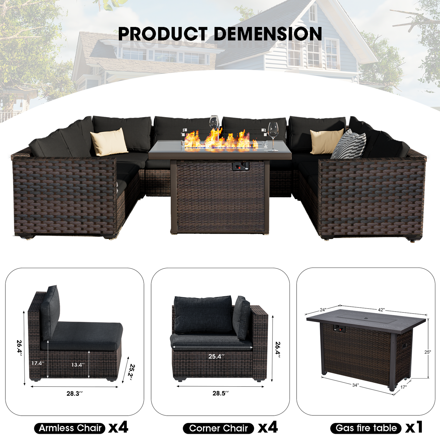 Grezone 9 Pieces Outdoor Patio Furniture with 43" 55000BTU Gas Propane Fire Pit Table PE Wicker Rattan Sectional Sofa Patio Conversation Sets