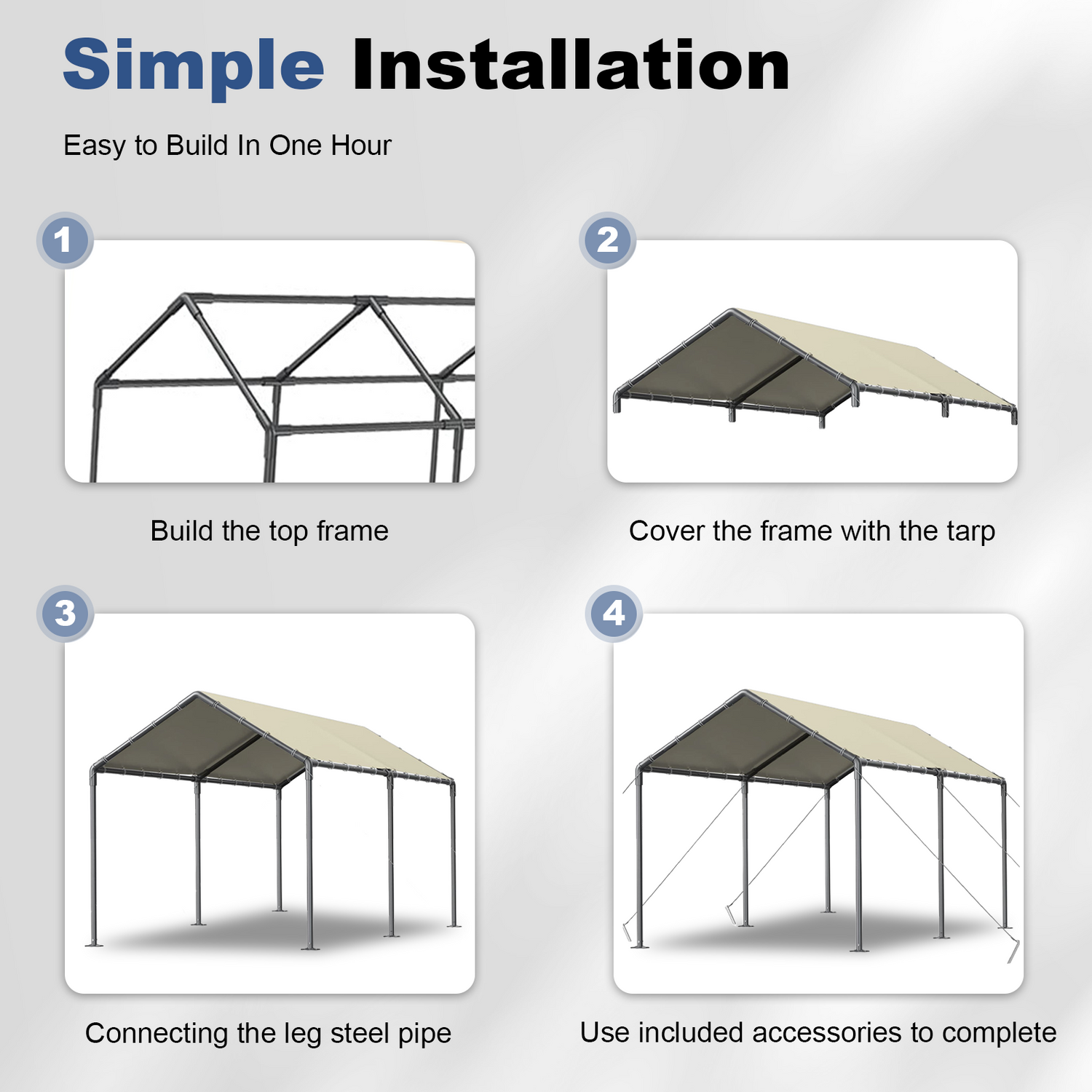 Grezone Carport L20xW10xH9.2Ft Heavy Duty Portable Garage Car Tent All Season UV Resistant Canopy