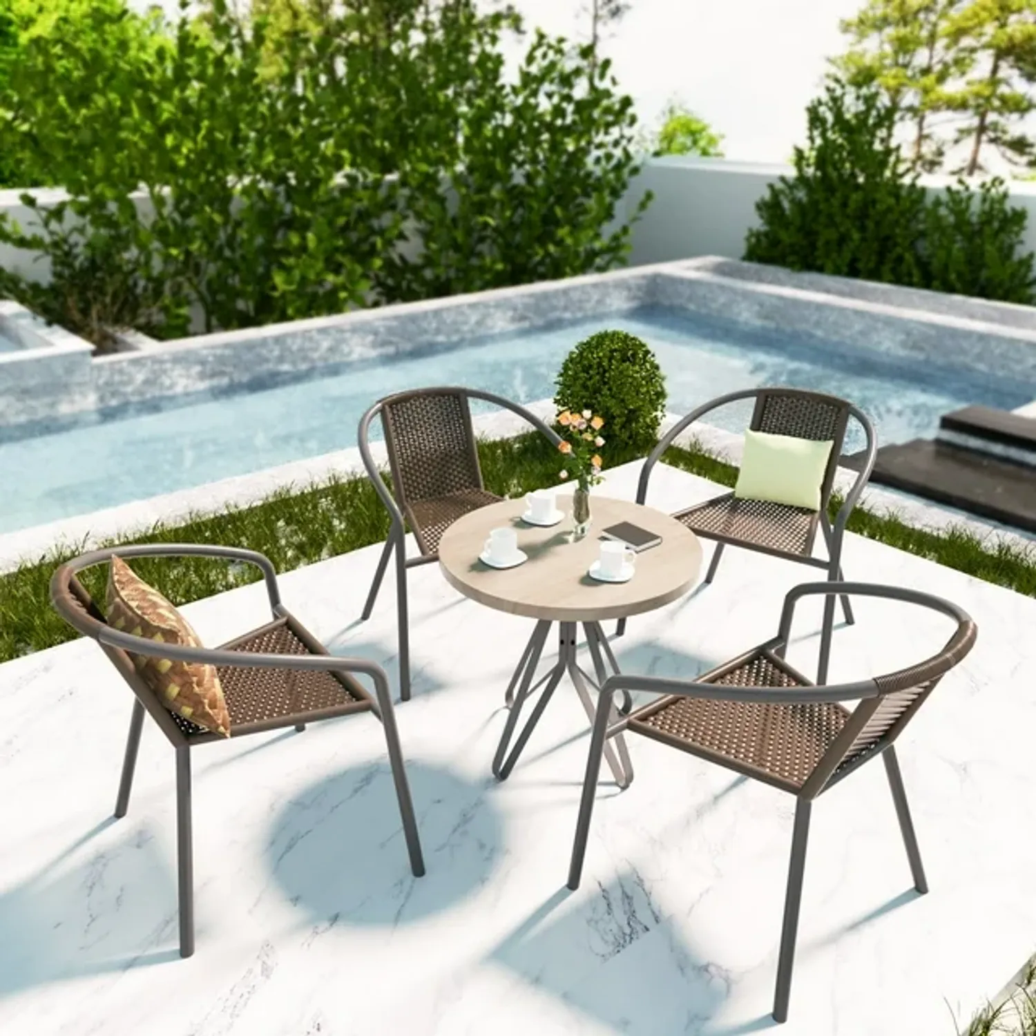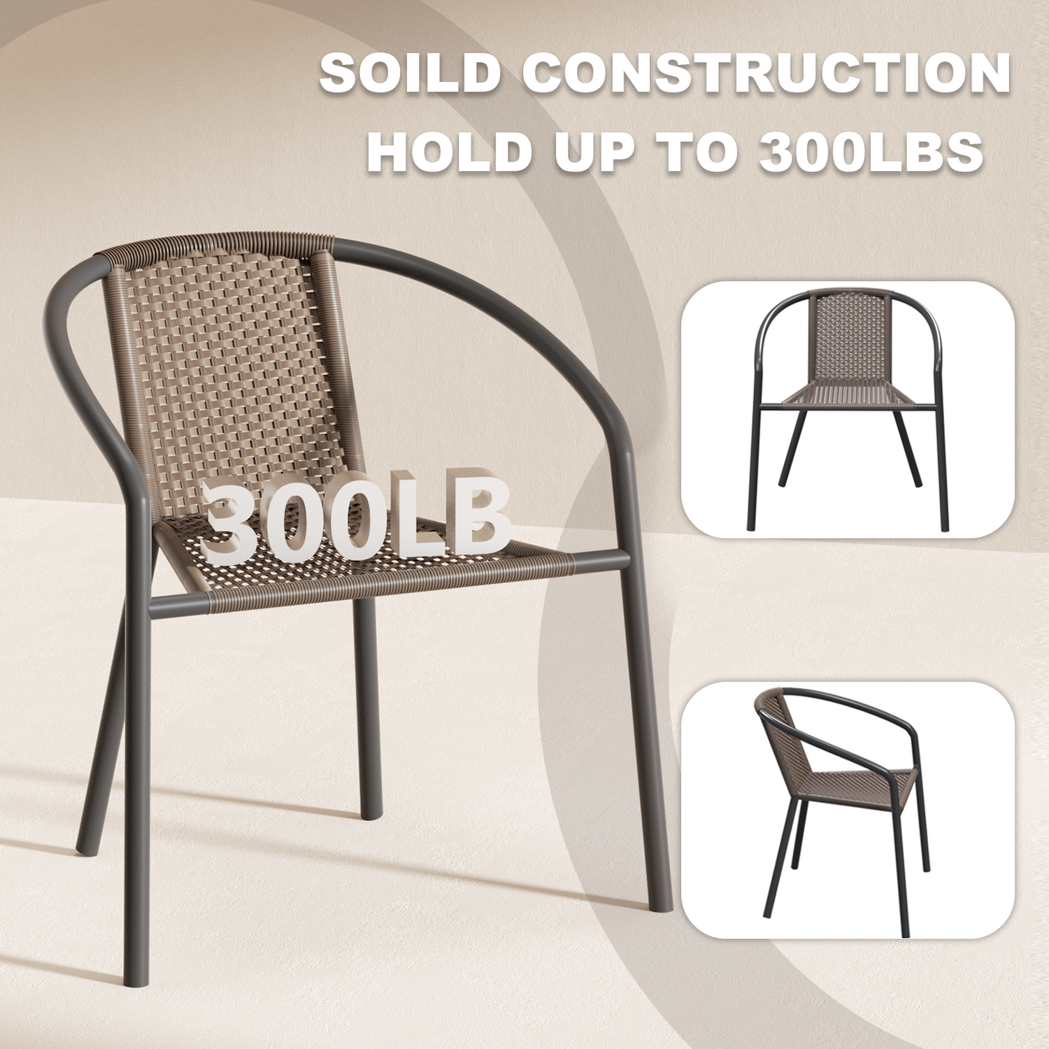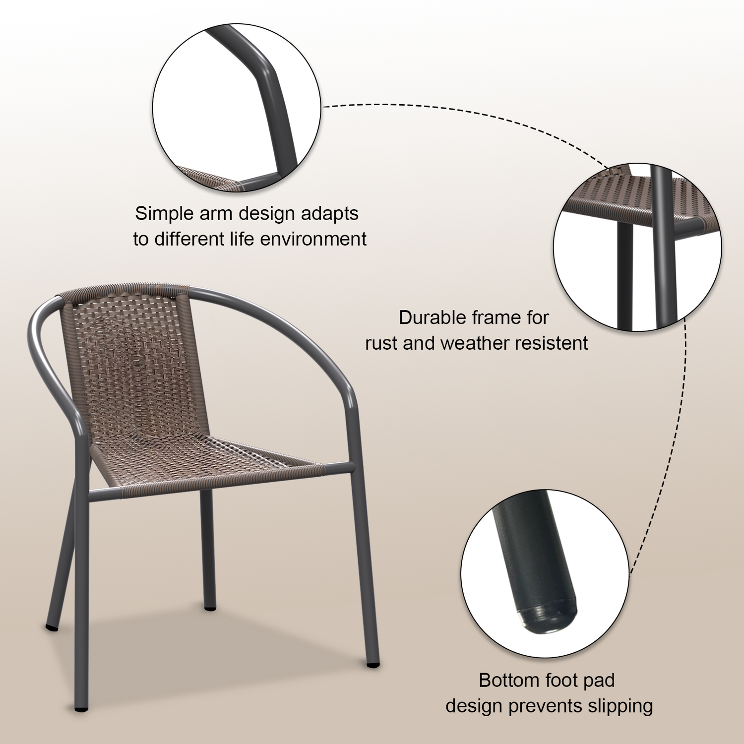 Grezone Modern Rattan Outdoor,Indoor Bedroom Restaurant Dining Chairs, Stackable Rattan Chairs for Patio or Drawing Room, Set of 4, Brown