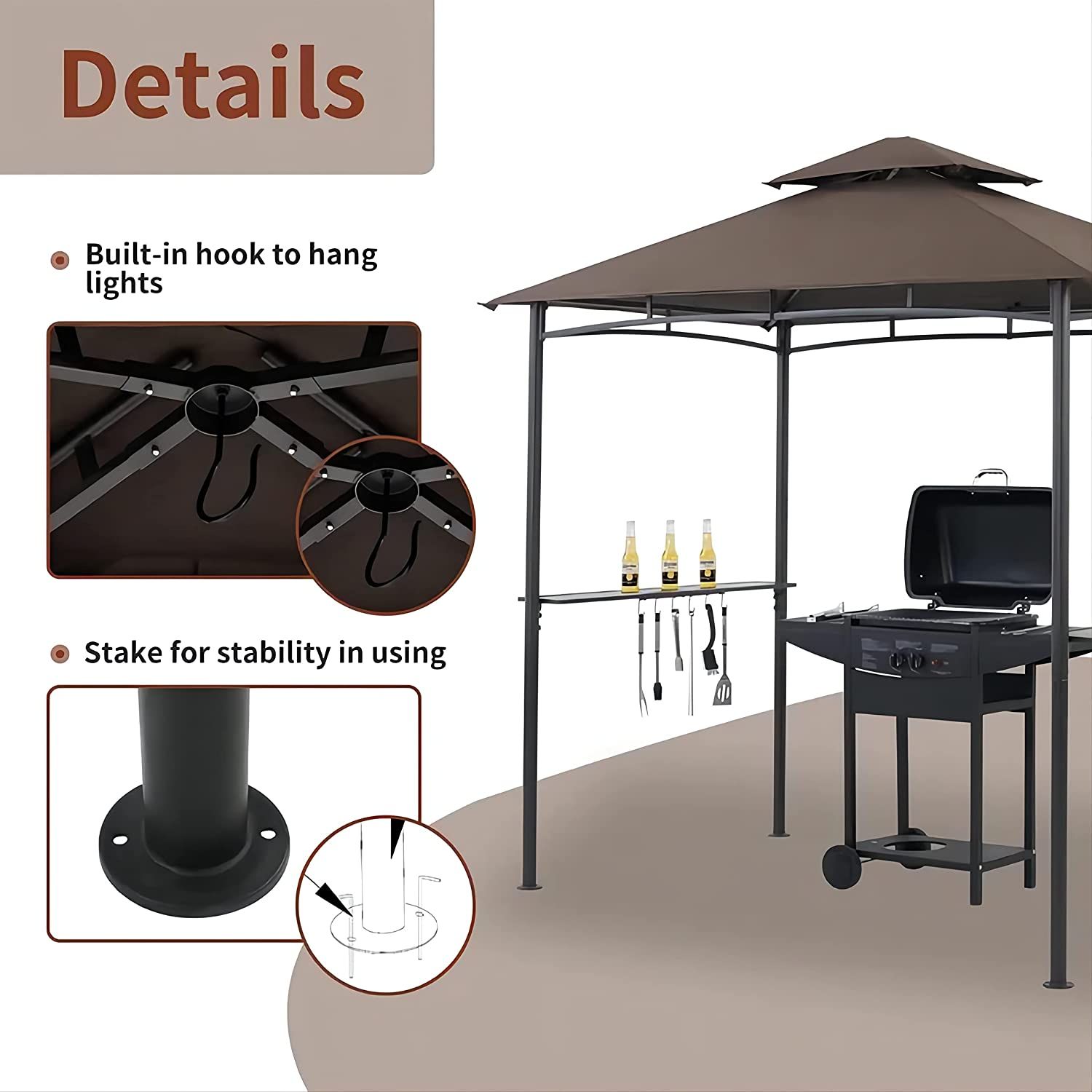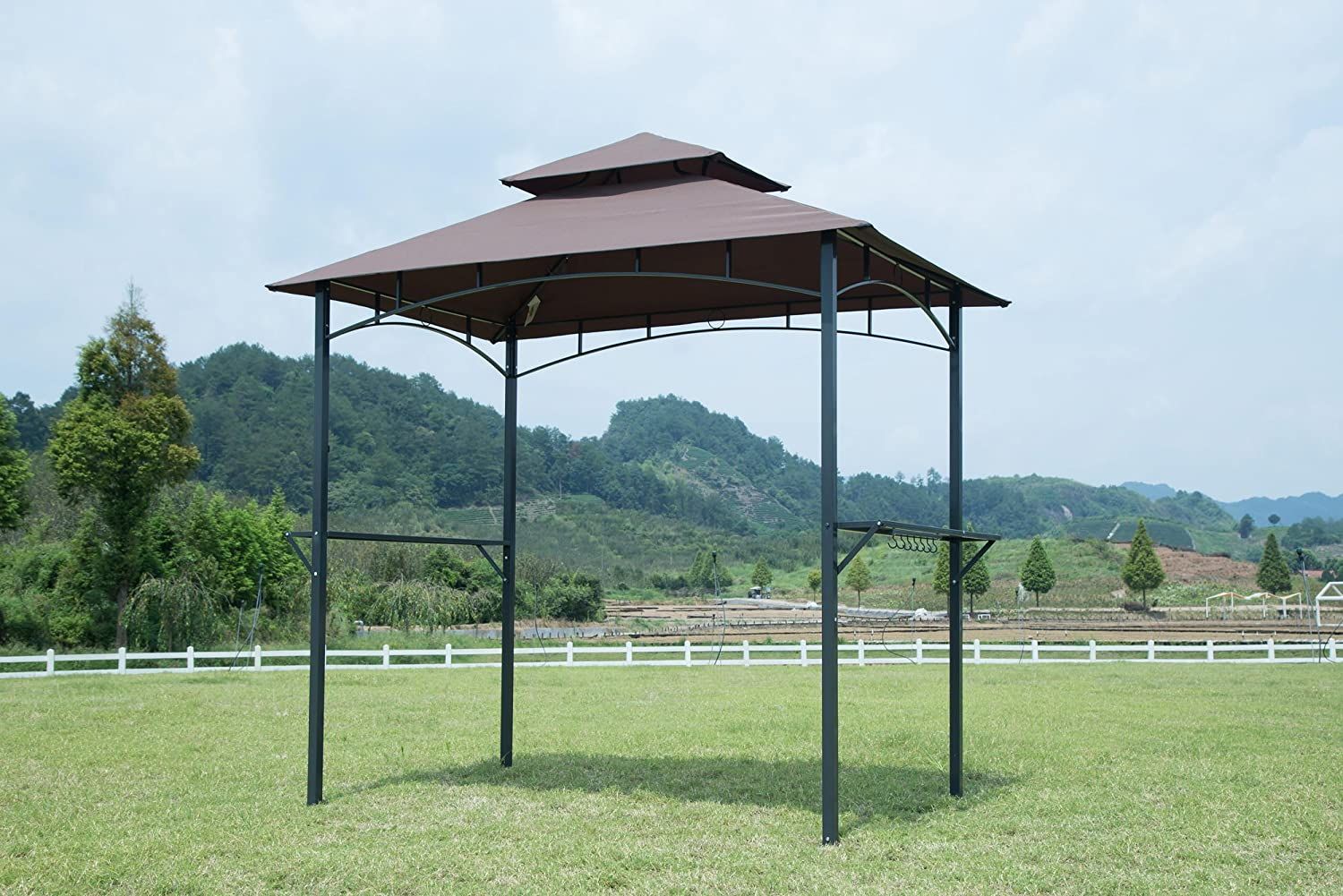 Grezone Outdoor Grill Gazebo Tent BBQ Canopy for Outdoor Grill Shelter BBQ Grill Gazebo Hardtop (L96 x W60 x H101 Inch) Brown
