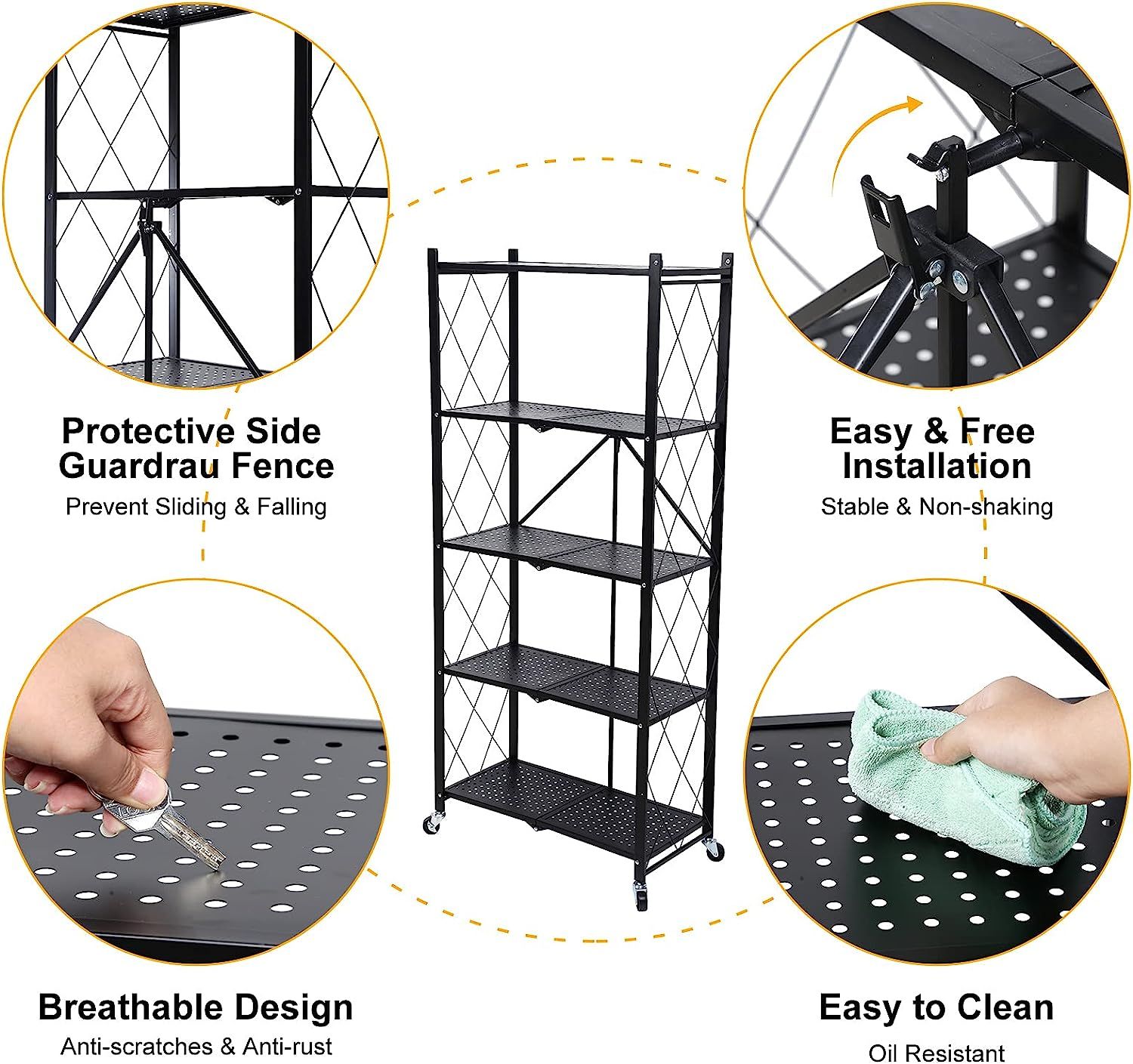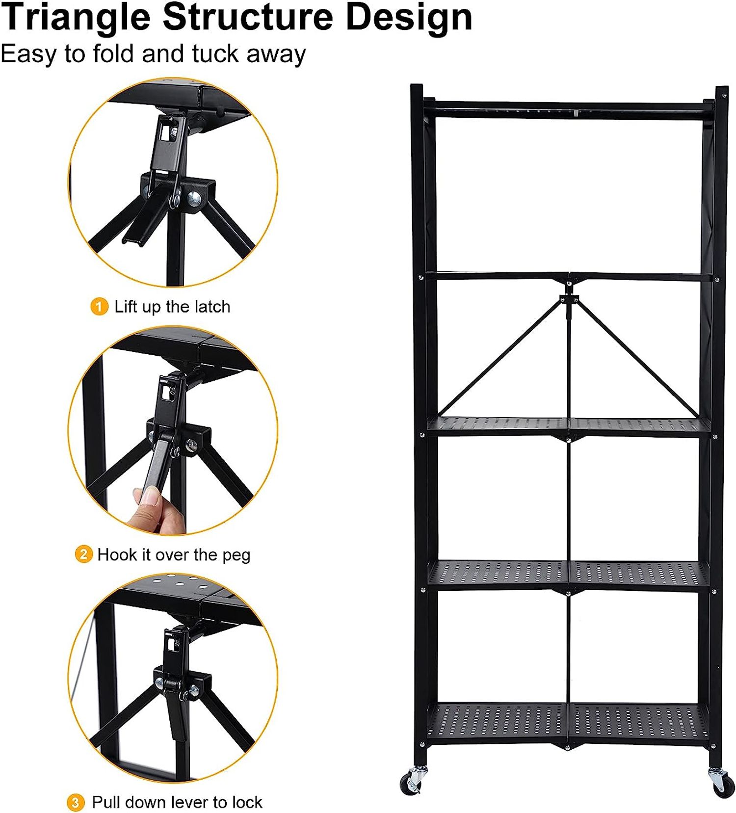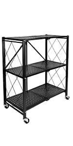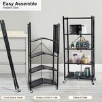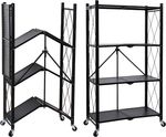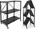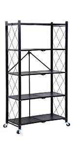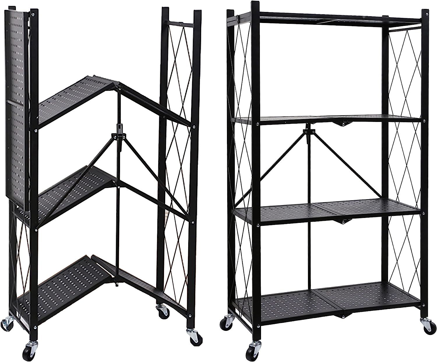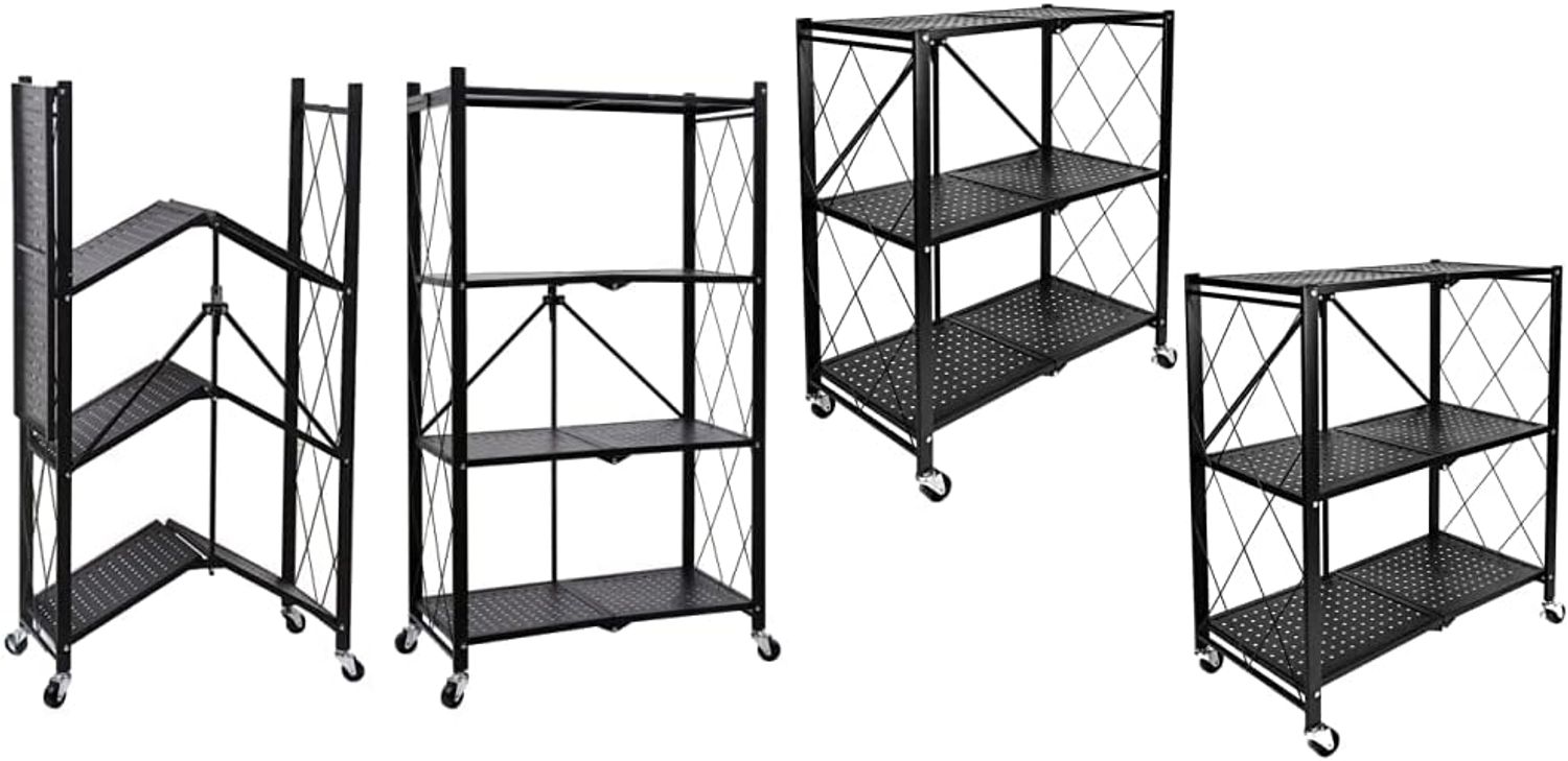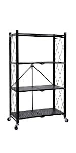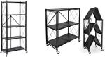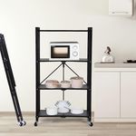 HealSmart 4-Tier Heavy Duty Foldable Metal Rack Storage Shelving Unit with Wheels Moving Easily Organier Shelves Great for Garage Kitchen Holds up to