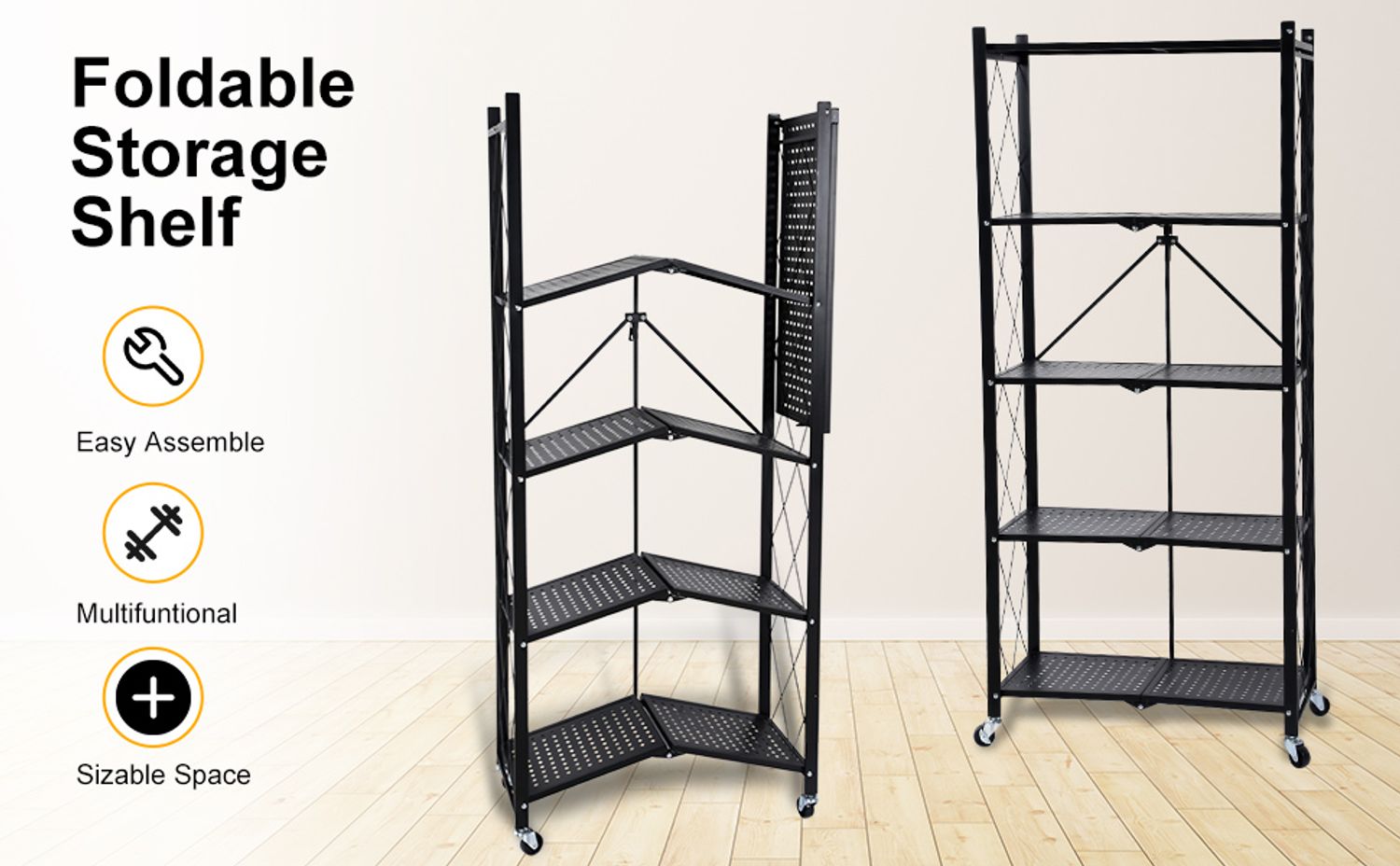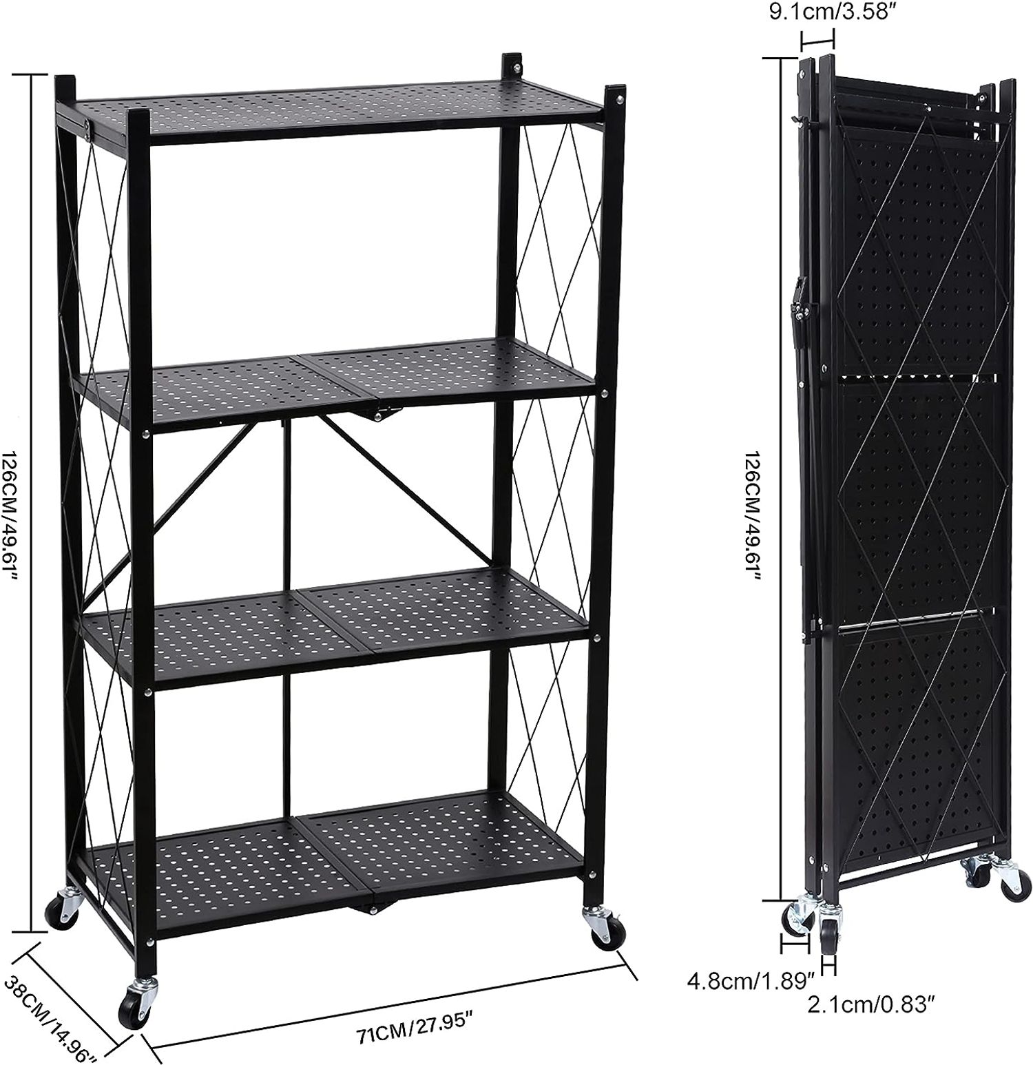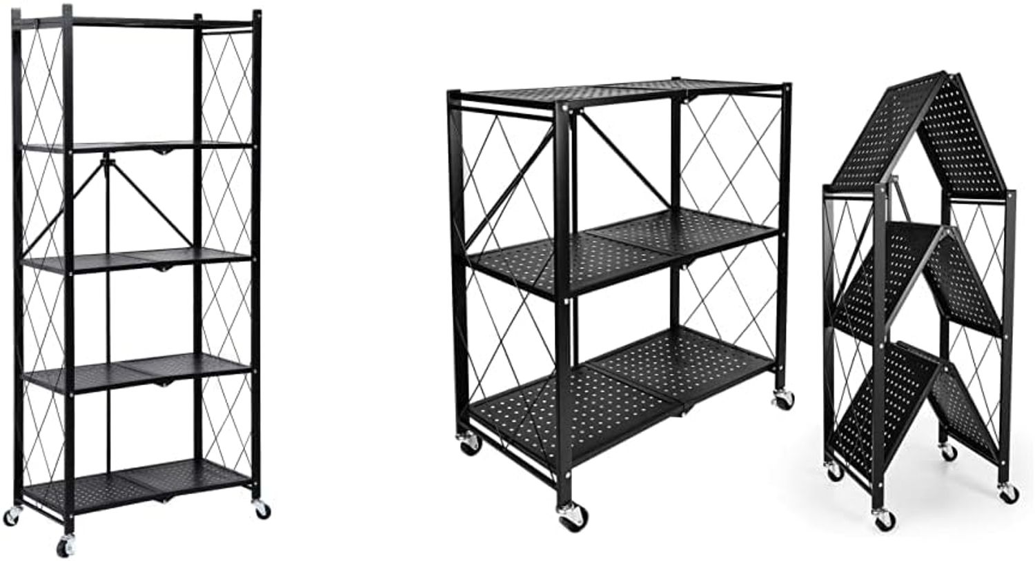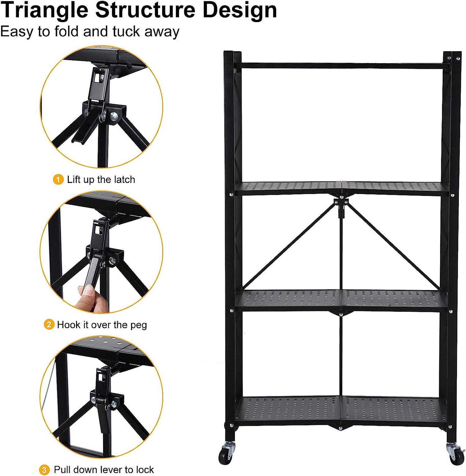 HealSmart 4-Tier Heavy Duty Foldable Metal Rack Storage Shelving Unit with Wheels Moving Easily Organier Shelves Great for Garage Kitchen Holds up to