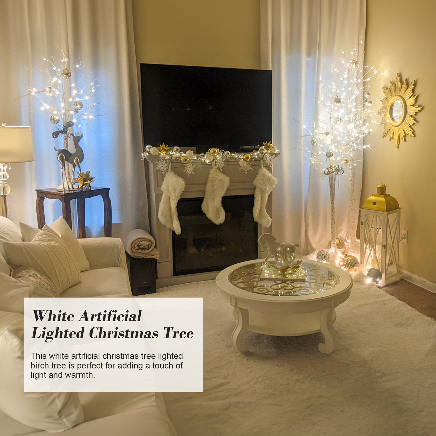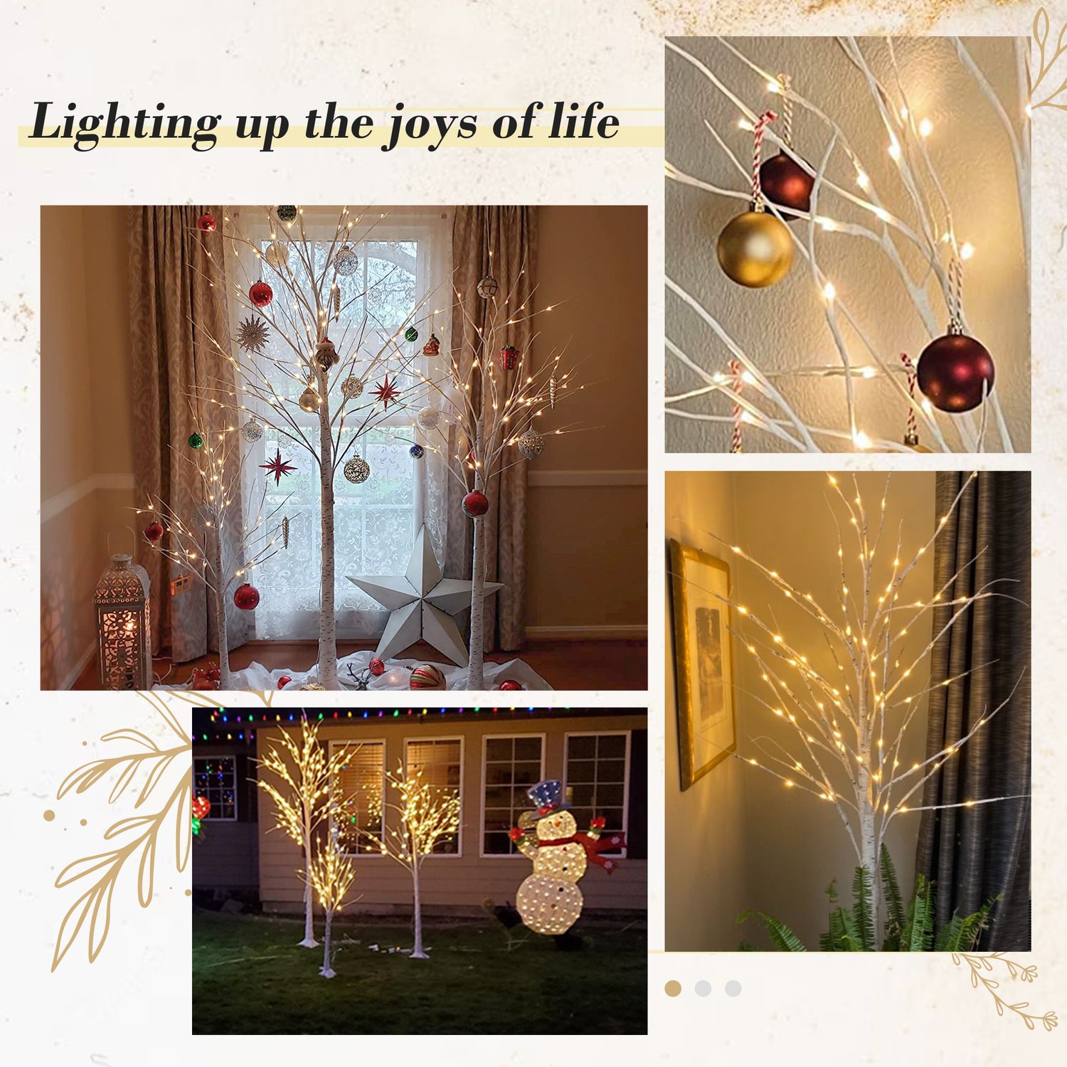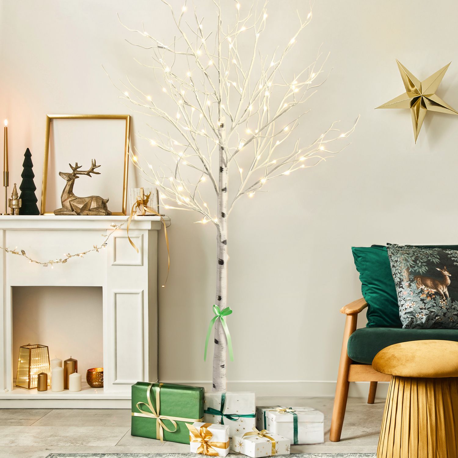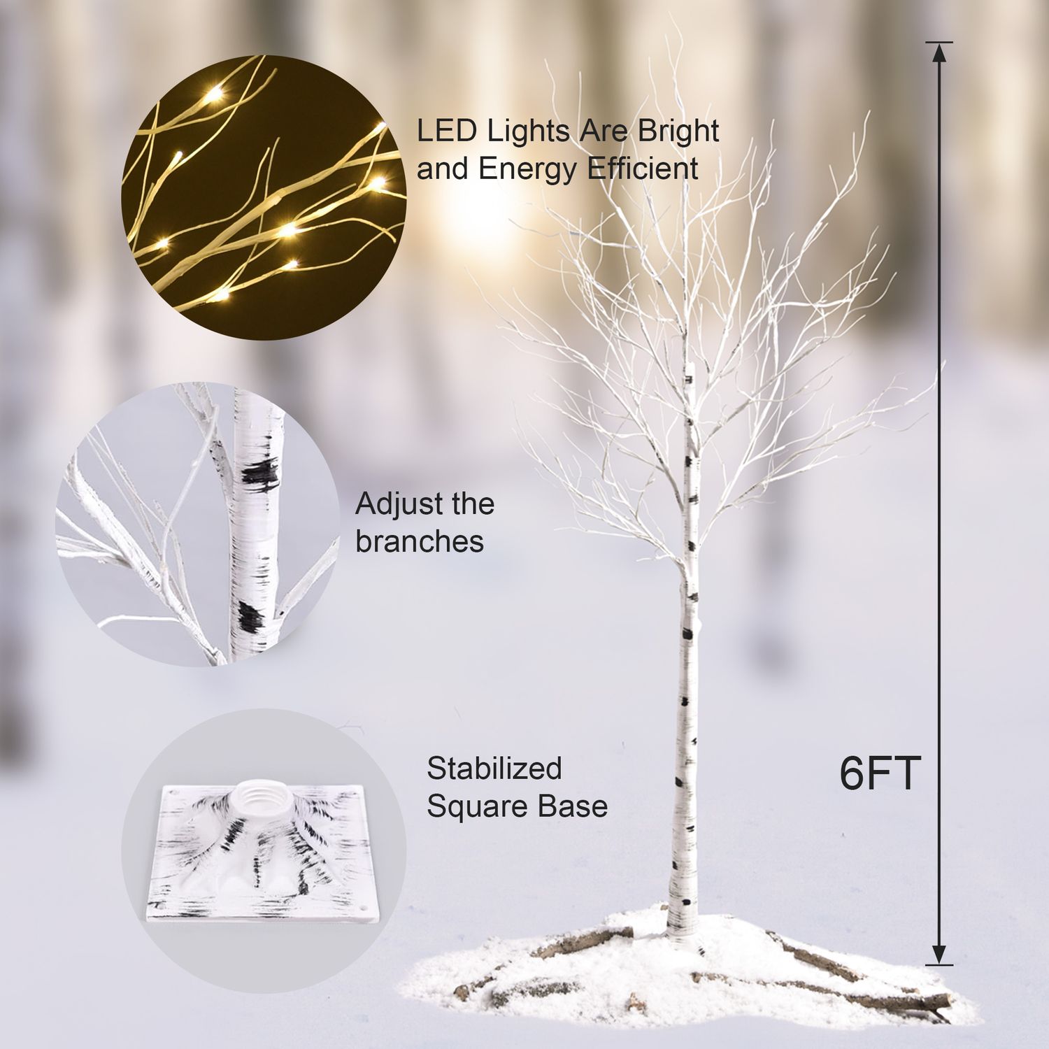 Birch Tree with LED Lights 6 ft Warm White Fairy Lights Christmas Decoration Lighted Tree for Indoor Outdoor Home Thanksgiving Holiday Decoration