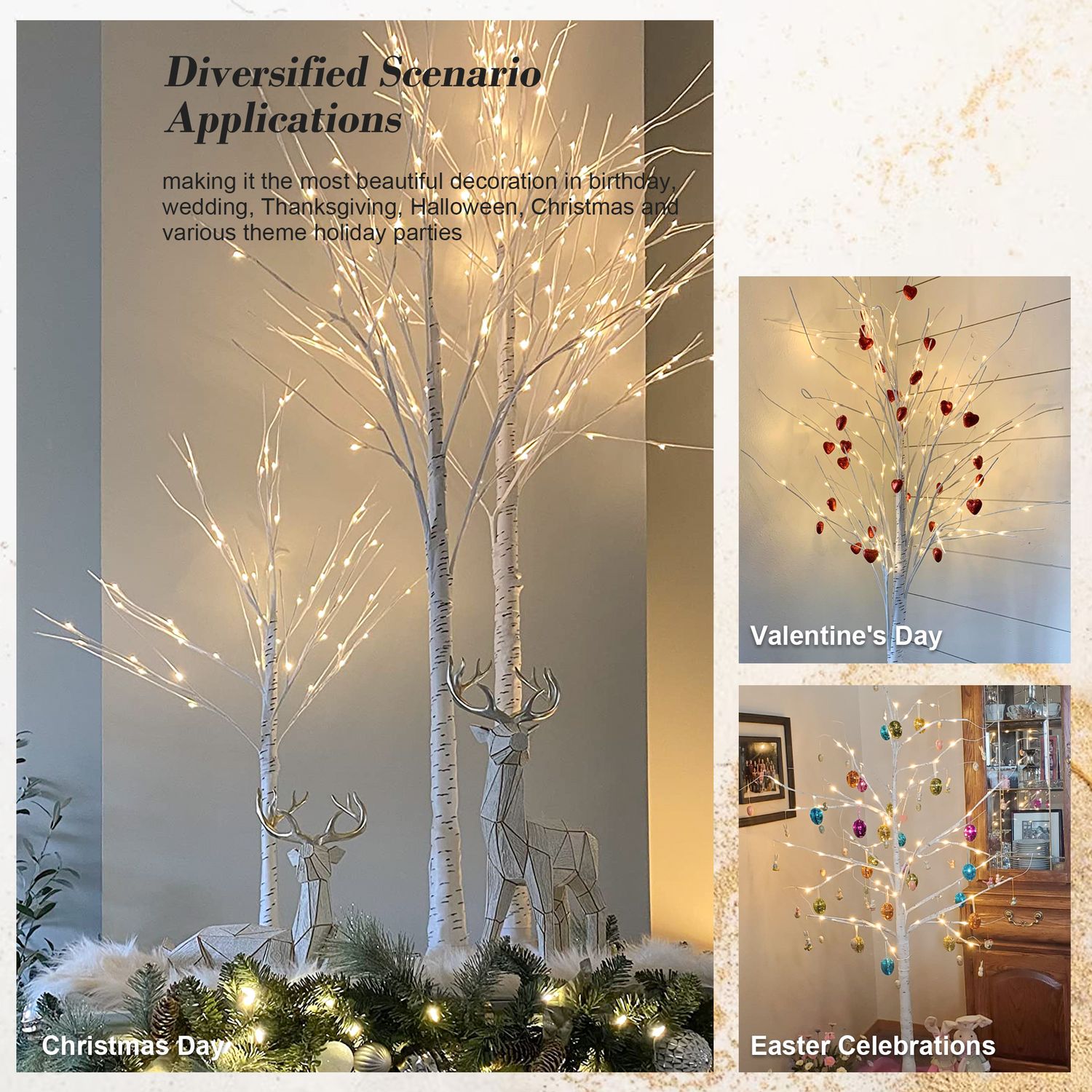 Kecreque Birch Tree with LED Lights 6 ft Warm White Fairy Lights Christmas Decoration Lighted Tree for Indoor Outdoor Home Thanksgiving Holiday Deco