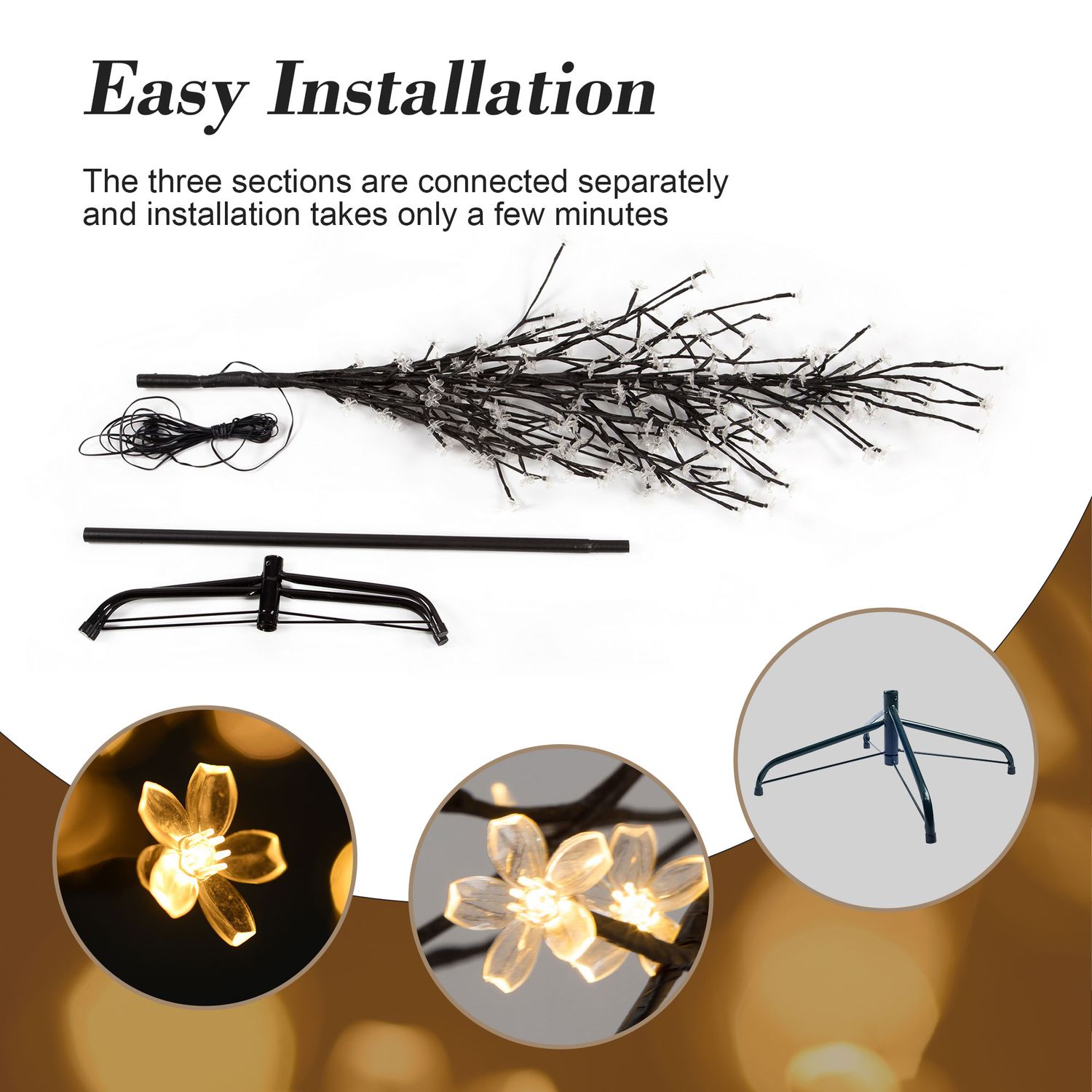 LED Cherry Blossom Lights Tree Warm White Fairy Lights Lighted Trees for Indoor Outdoor Home Thanksgiving Christmas Holiday Decoration