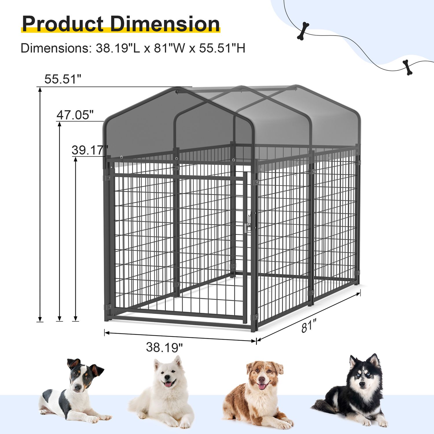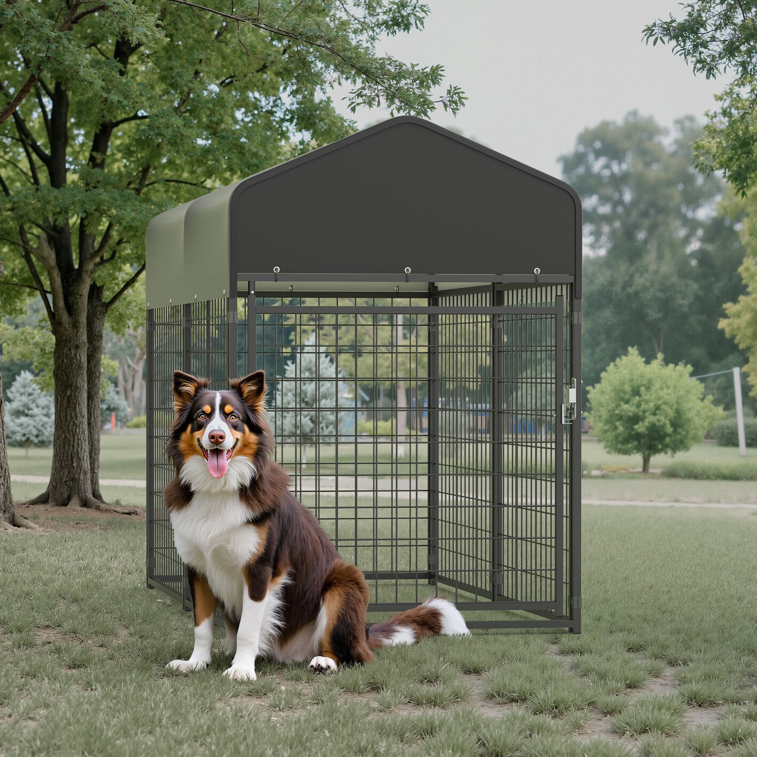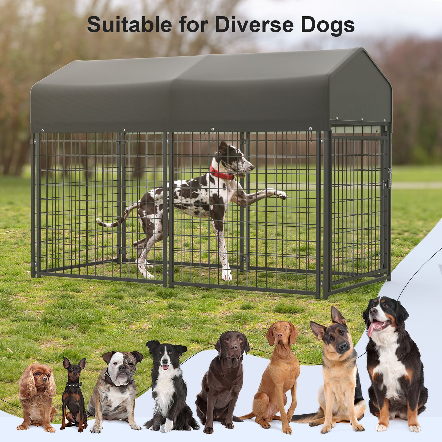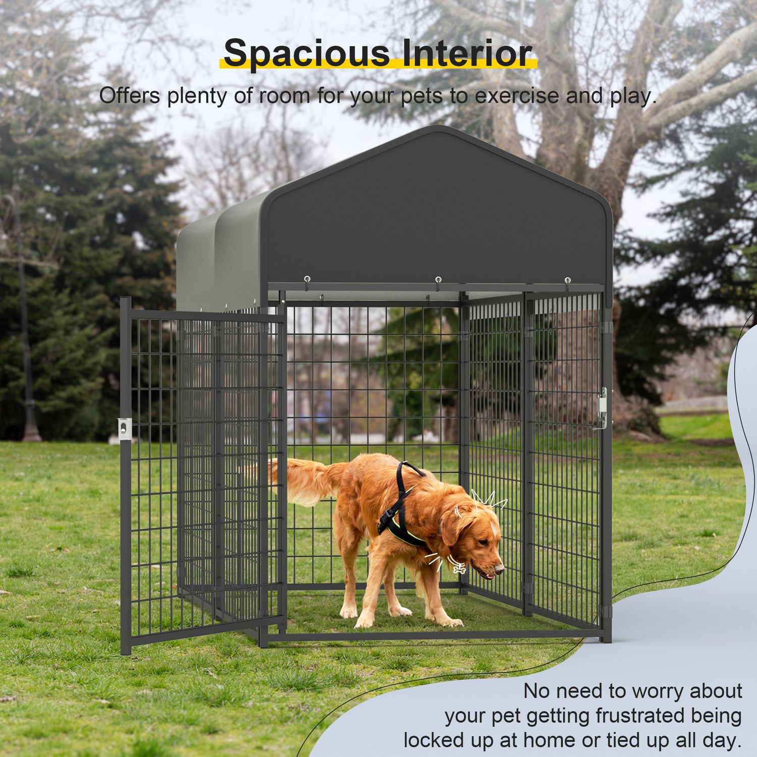 Kecreque Large Dog Crate Heavy Duty Dog Kennel Outdoor Dog Playpen w/ Waterproof Cover 6.7×3×4.6ft Dog Crates For Large Dogs Dog House Outdoor Dog Enclosure