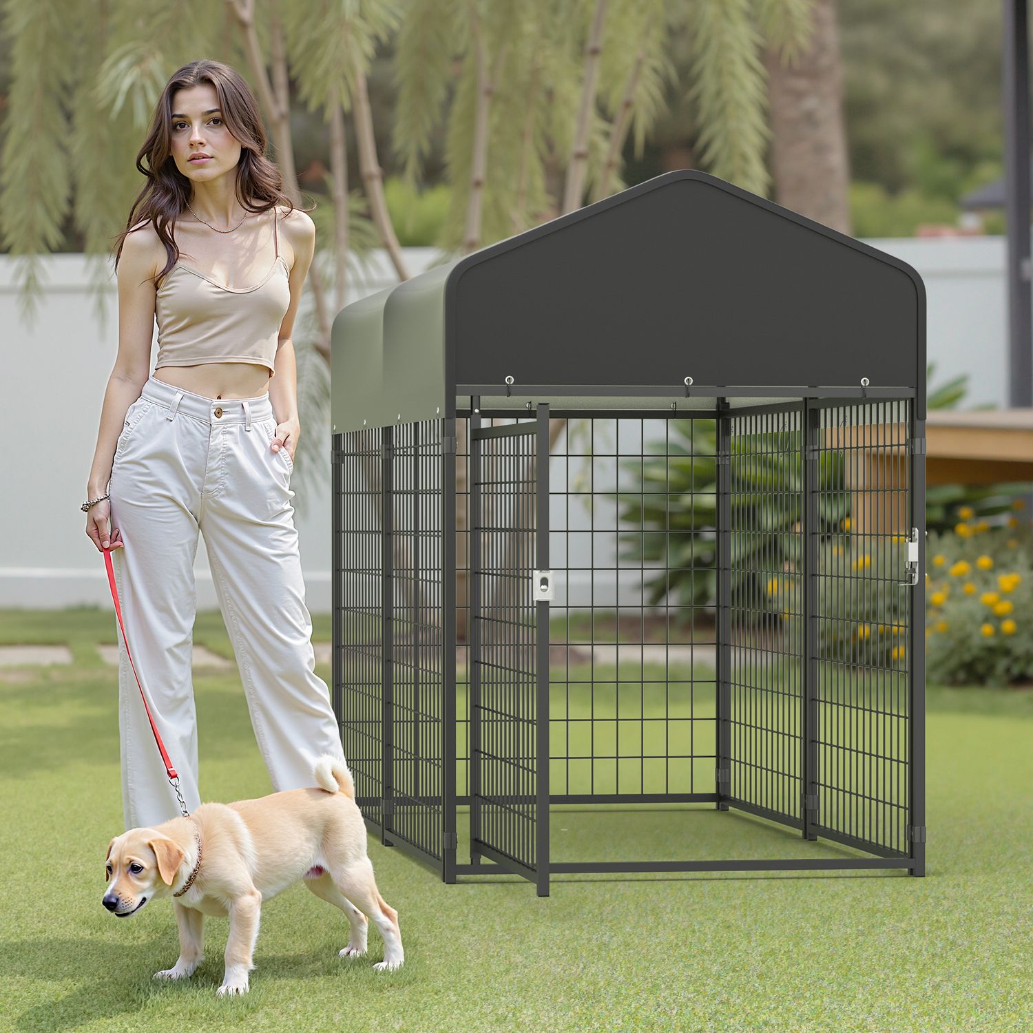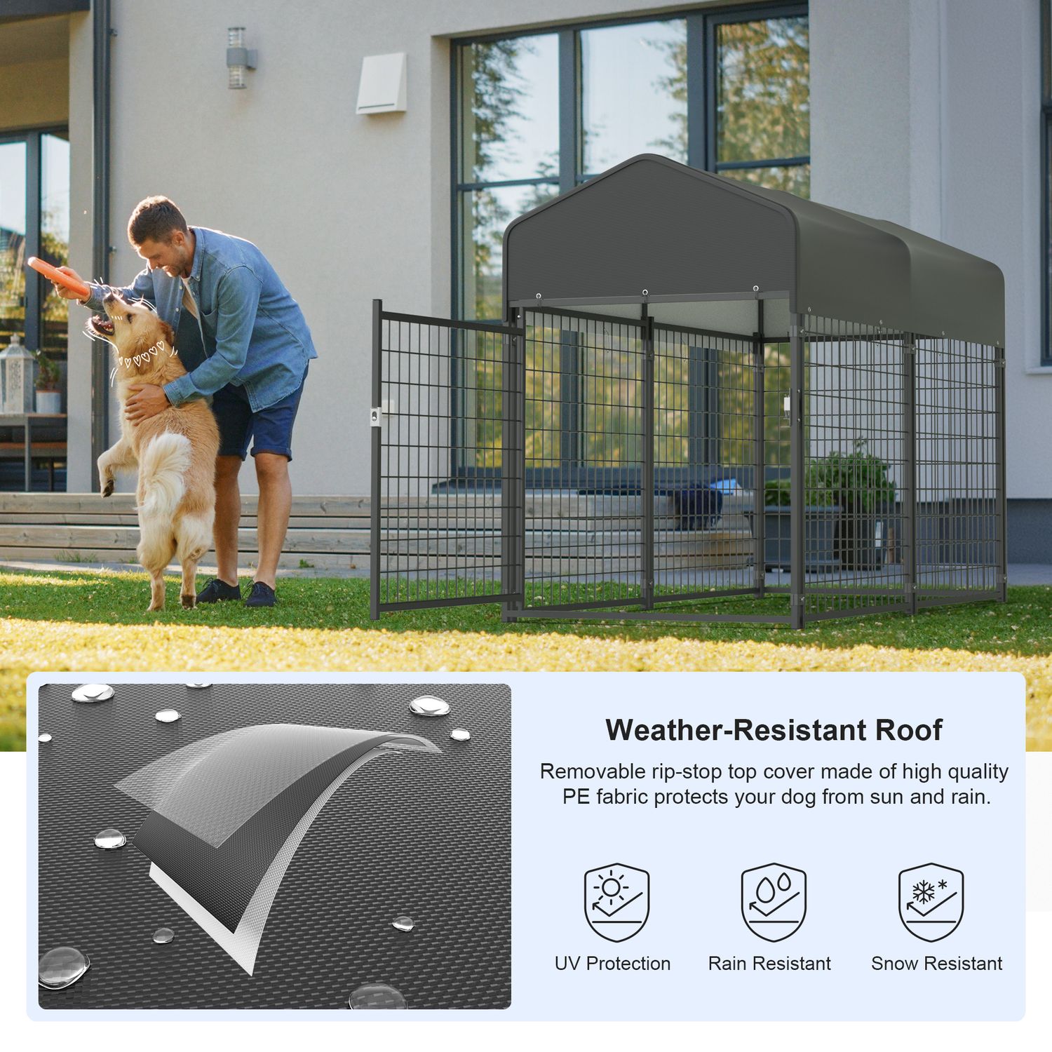 Kecreque Large Dog Crate Heavy Duty Dog Kennel Outdoor Dog Playpen w/ Waterproof Cover 6.7×3×4.6ft Dog Crates For Large Dogs Dog House Outdoor