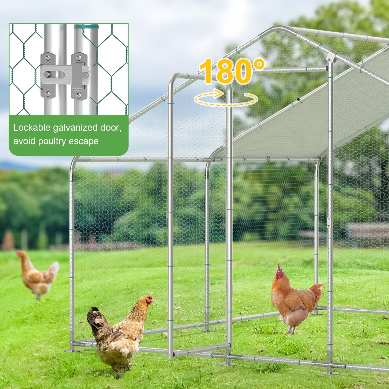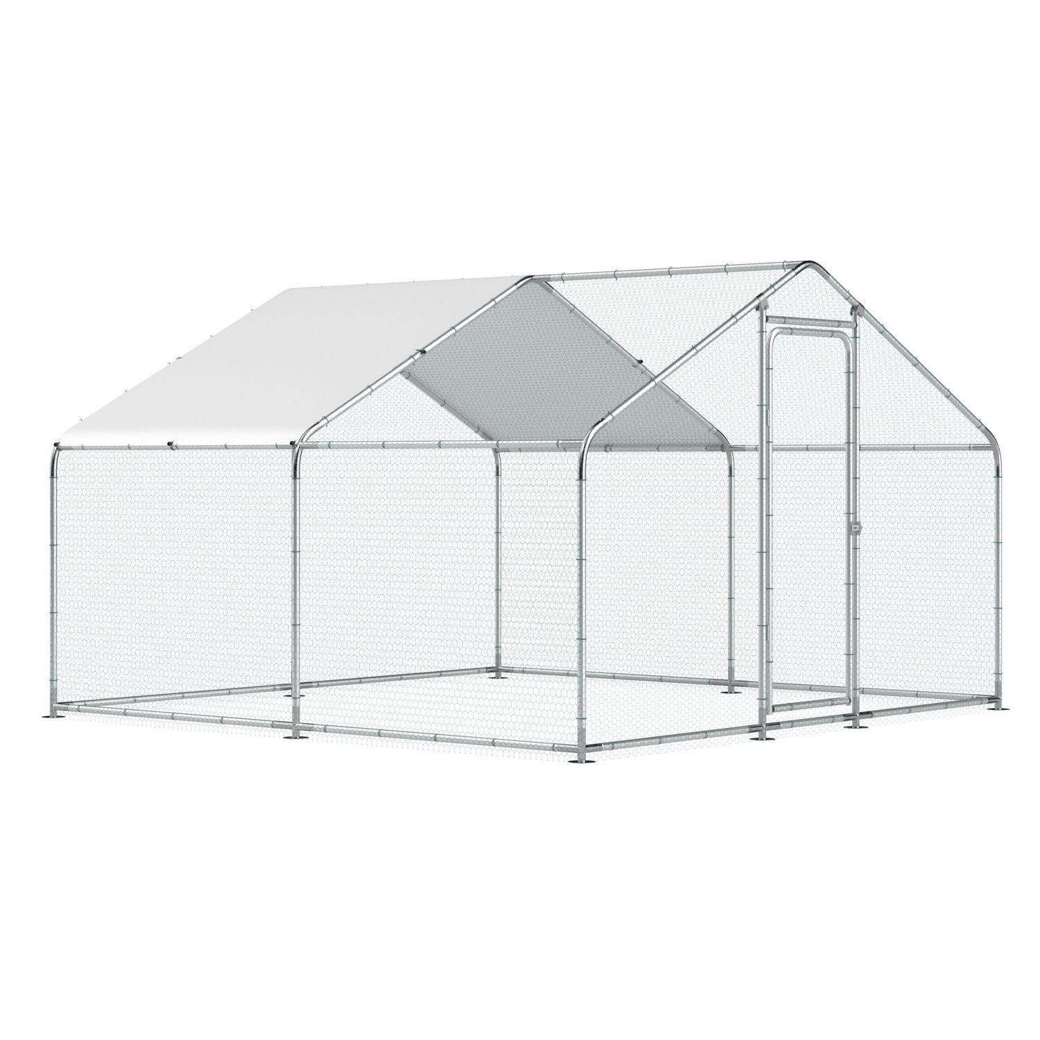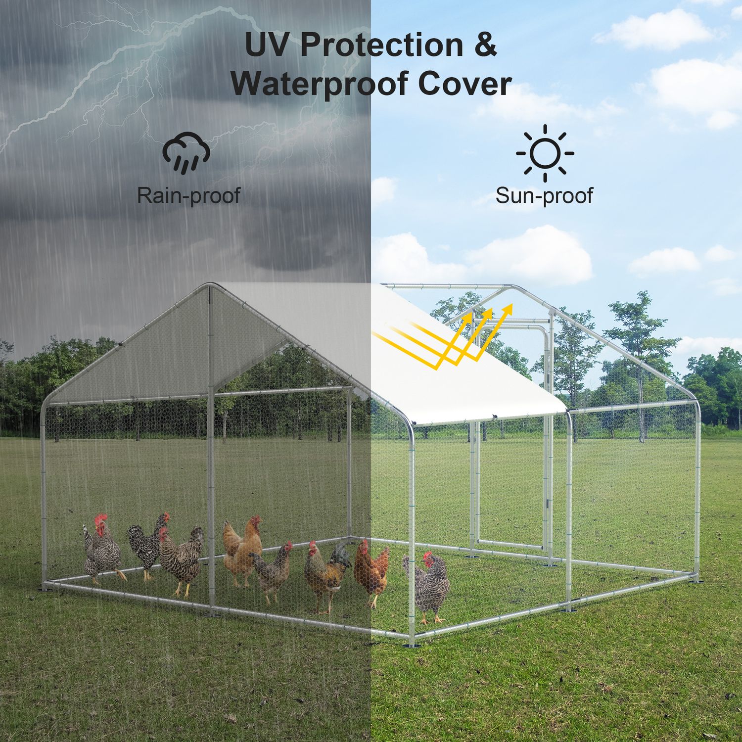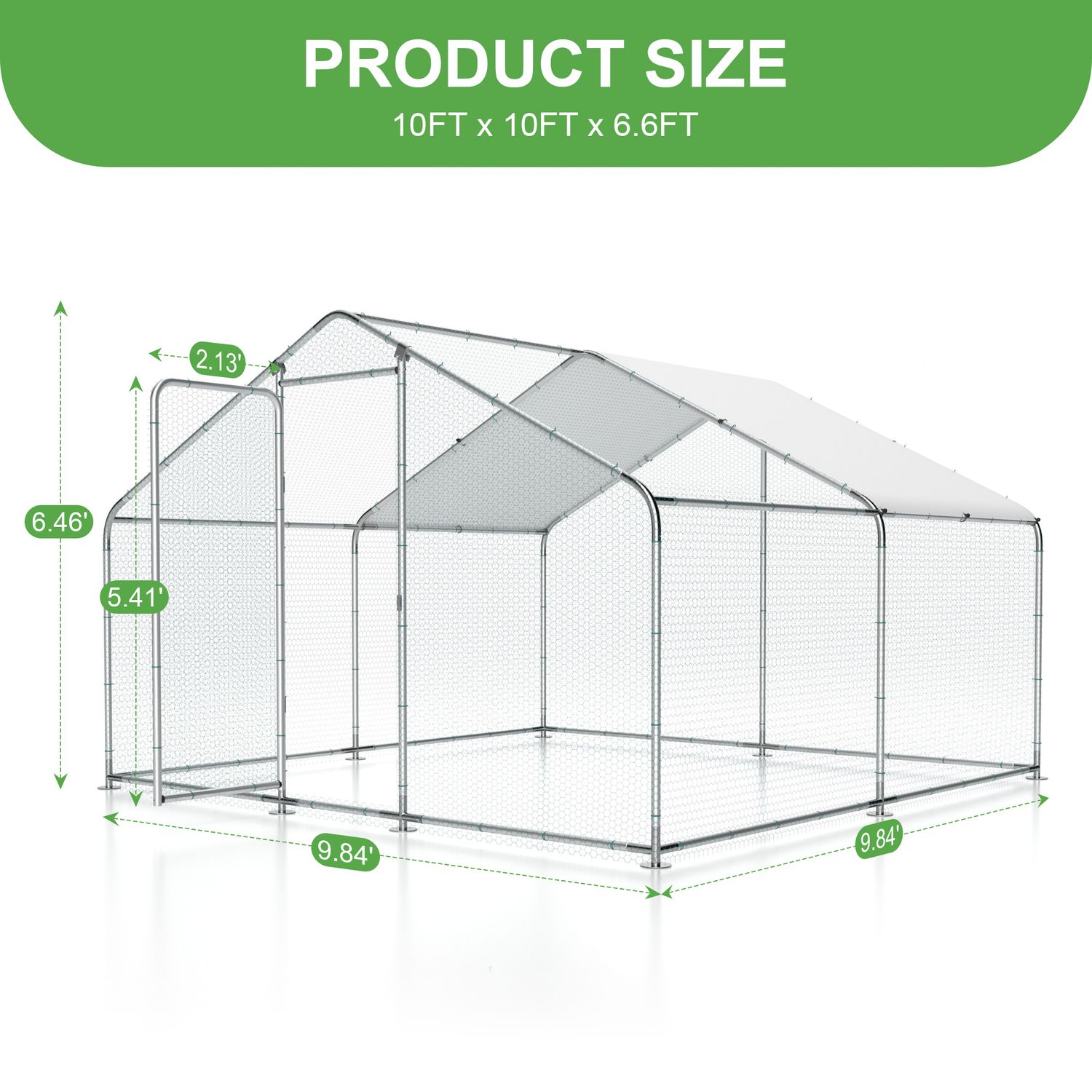 Large Metal Chicken Coop Outdoor Chicken Run Heavy Duty Walk-in Poultry Cage W/ Water & UV Proof Cover For Backyard Farm 10'×10'×6.6'