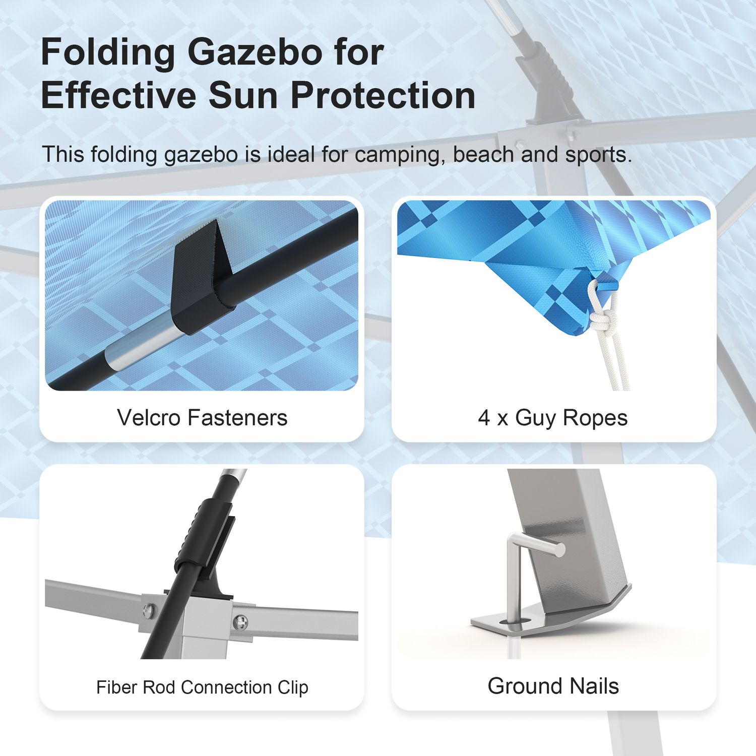 Kecreque Pop Up Canopy Tent Outdoor Easy Up Canopy Party Tent w/ Carry Bag Instant Shelter Easy Gazebo Beach Shade 8' × 8', Blue Stripe