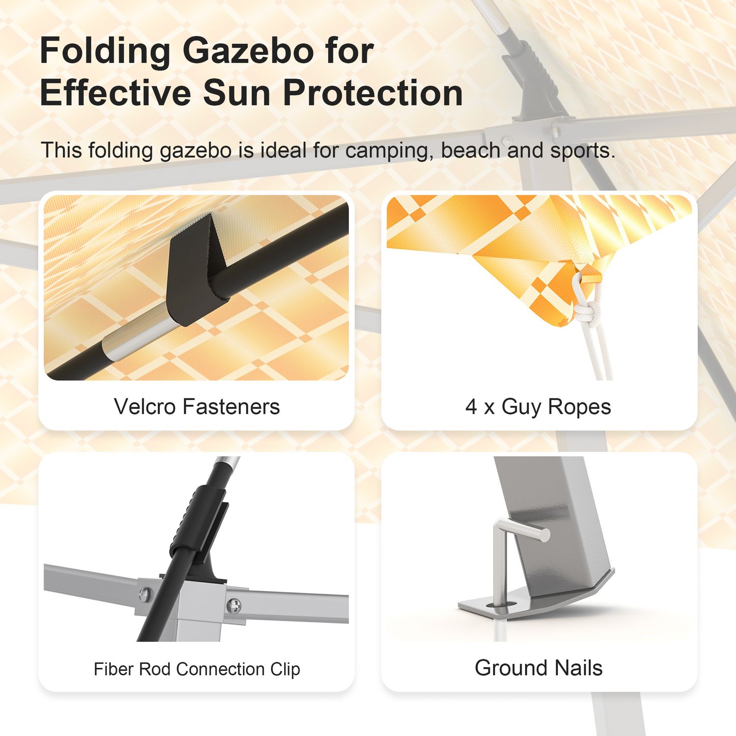 Kecreque Pop Up Canopy Tent Outdoor Easy Up Canopy Party Tent w/ Carry Bag Instant Shelter Easy Gazebo Beach Shade 8' × 8', Orange Stripe