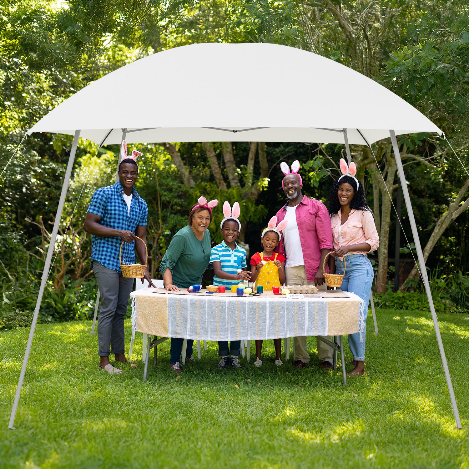 Kecreque Pop Up Canopy Tent Outdoor Easy Up Canopy Party Tent w/ Carry Bag Instant Shelter Easy Gazebo Beach Shade 8' × 8', White