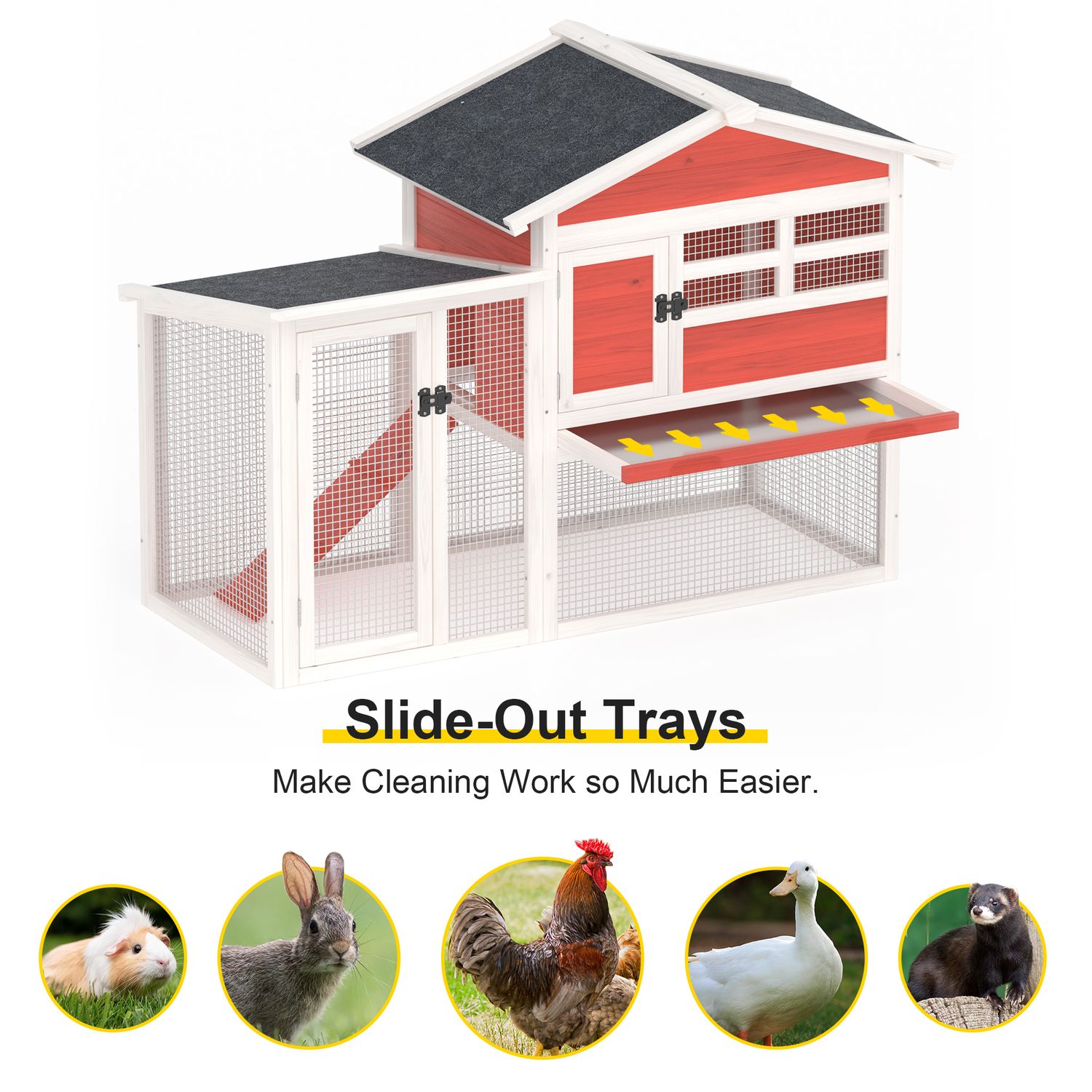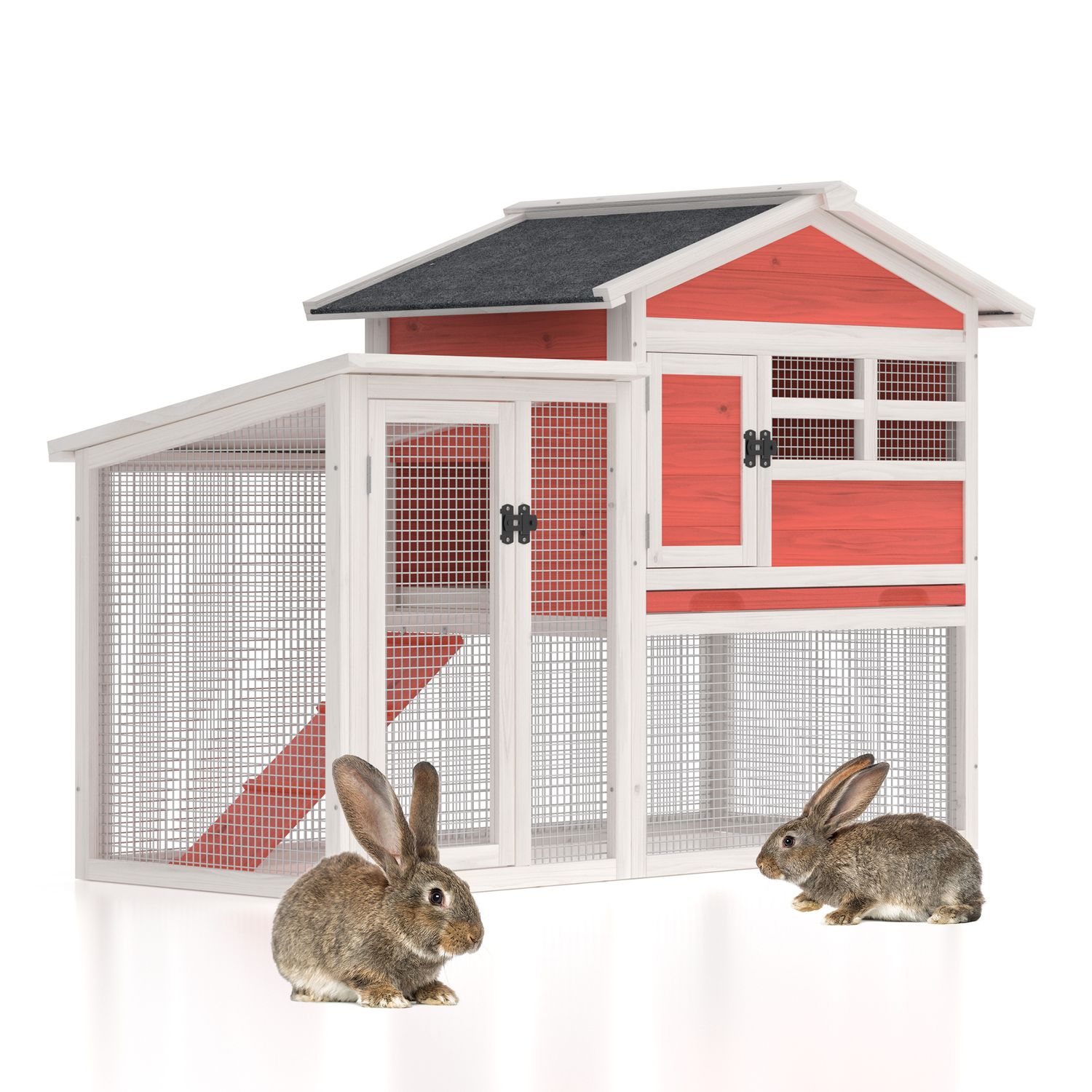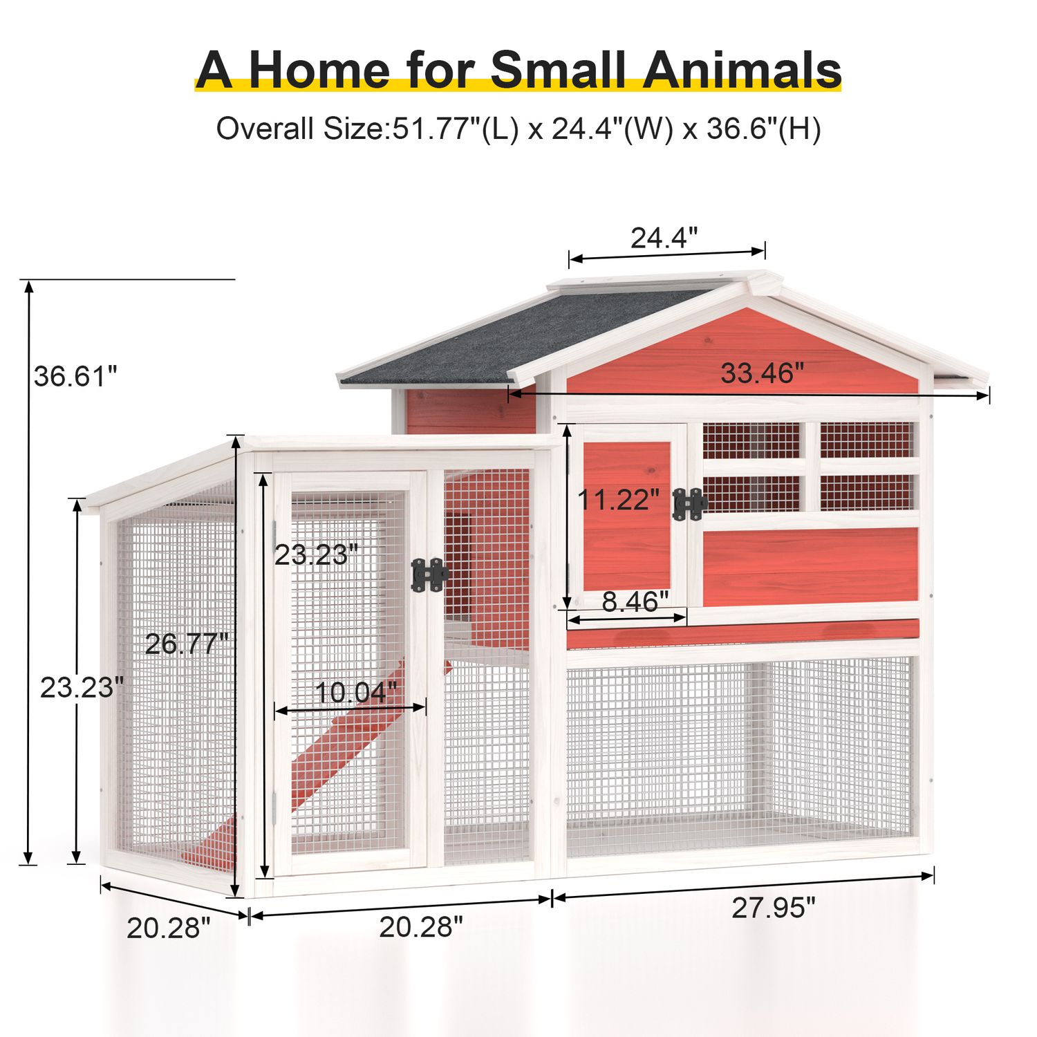 Rabbit Cage Indoor & Outdoor Rabbit Hutch Weatherproof Bunny Cage Guinea Pig Cages Chicken Coop w/ Waterproof Top & Tray, Red