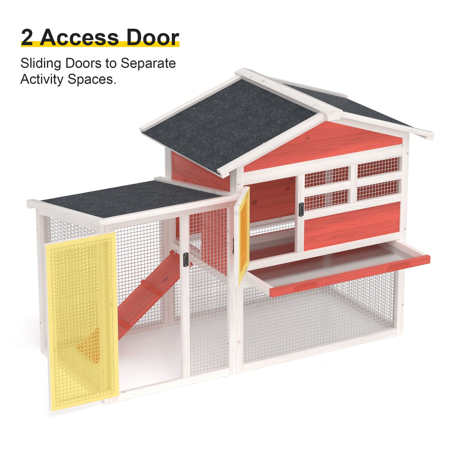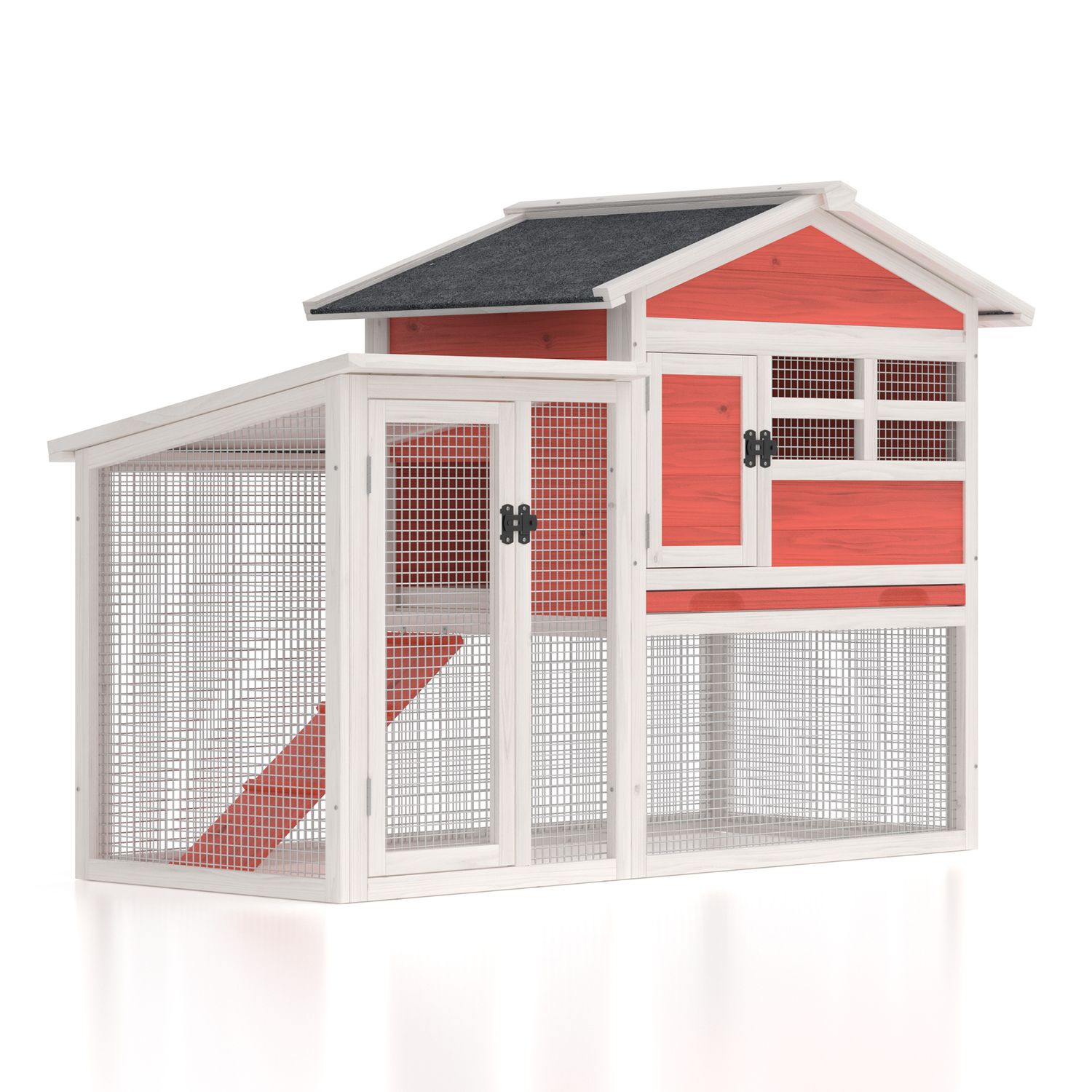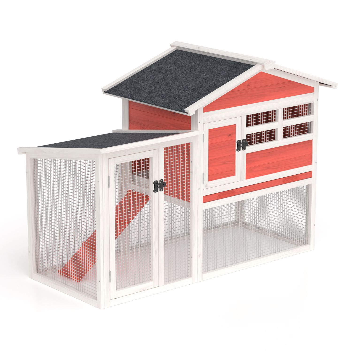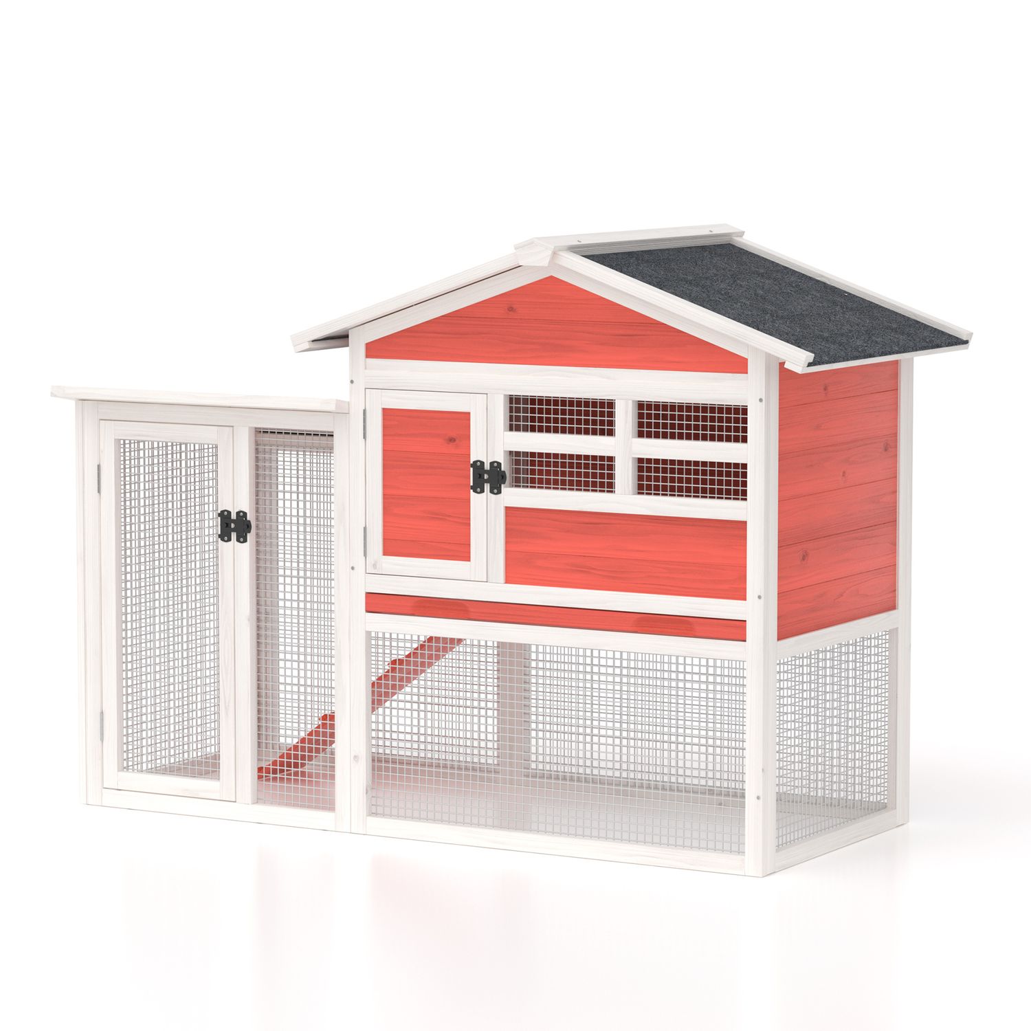 Rabbit Cage Indoor & Outdoor Rabbit Hutch Weatherproof Bunny Cage Guinea Pig Cages Chicken Coop w/ Waterproof Top & Tray, Red