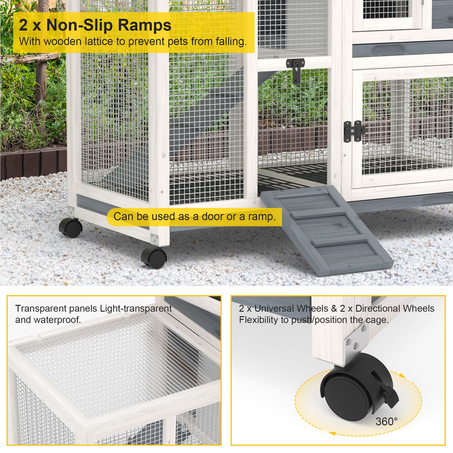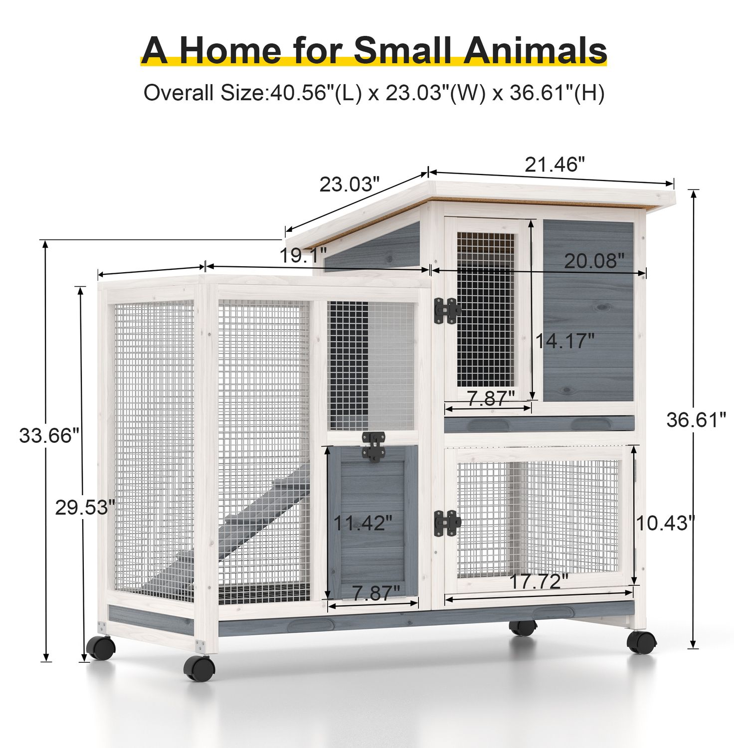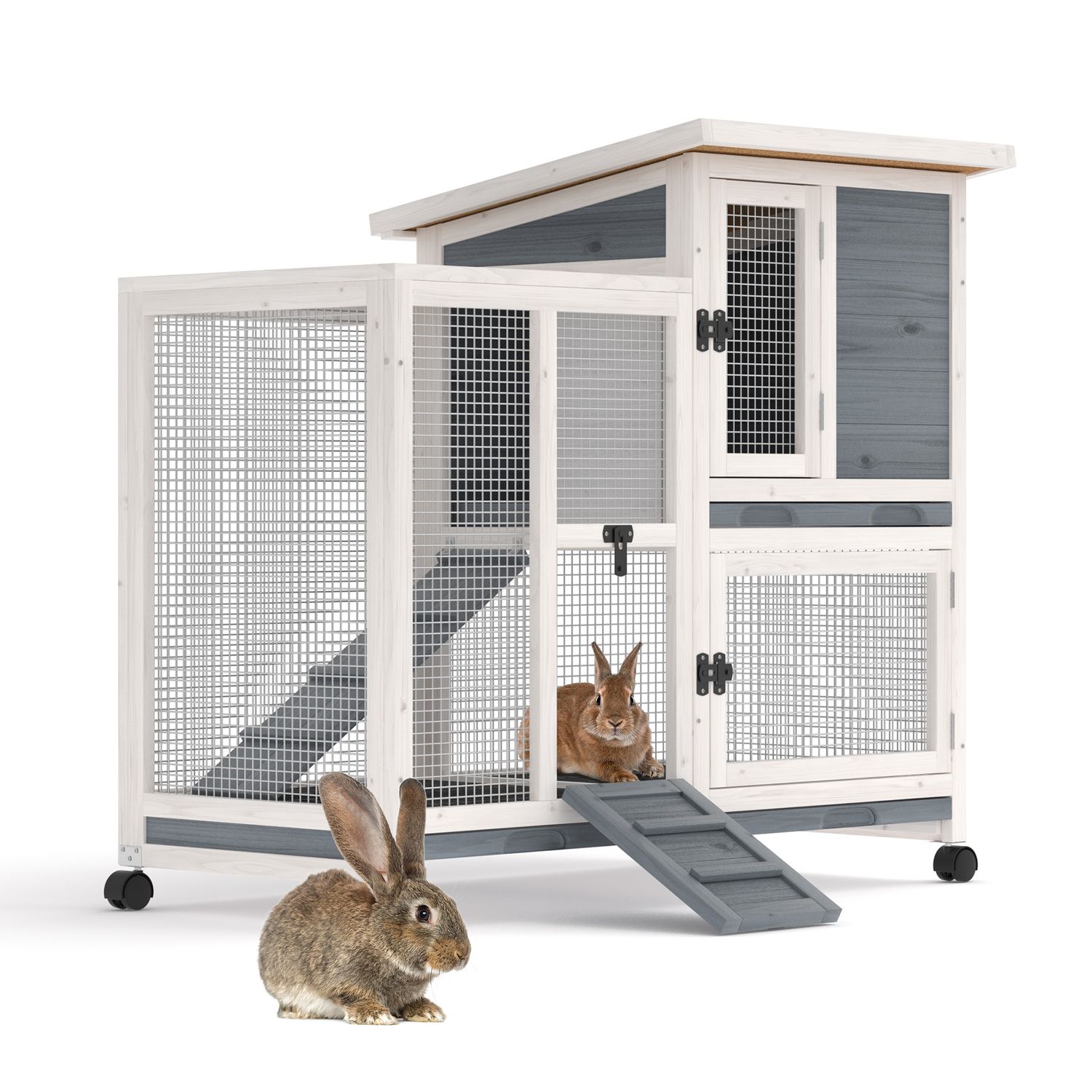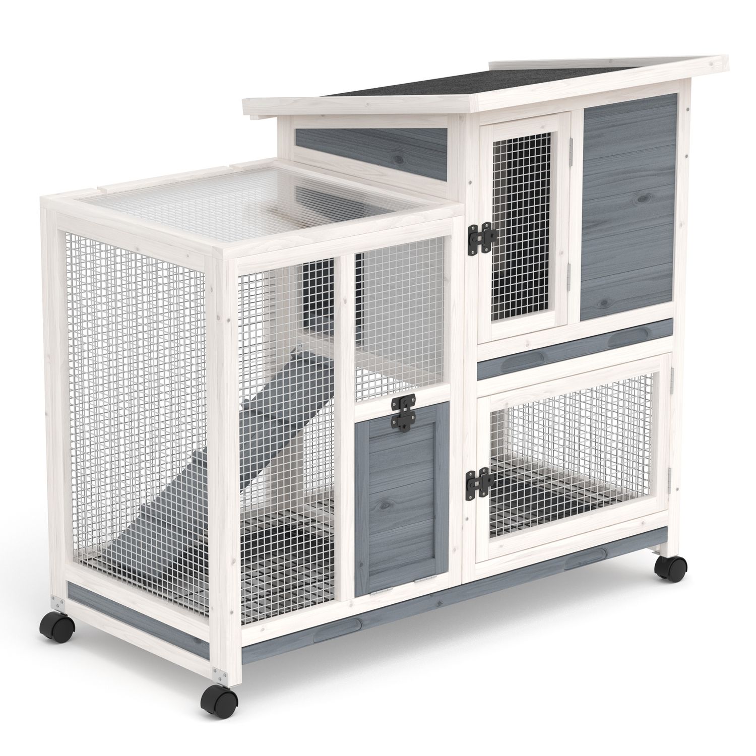 Rabbit Cage Indoor & Outdoor Rabbit Hutch Weatherproof Bunny Cage Guinea Pig Cages Chicken Coop w/ Wheel & Tray, Blue