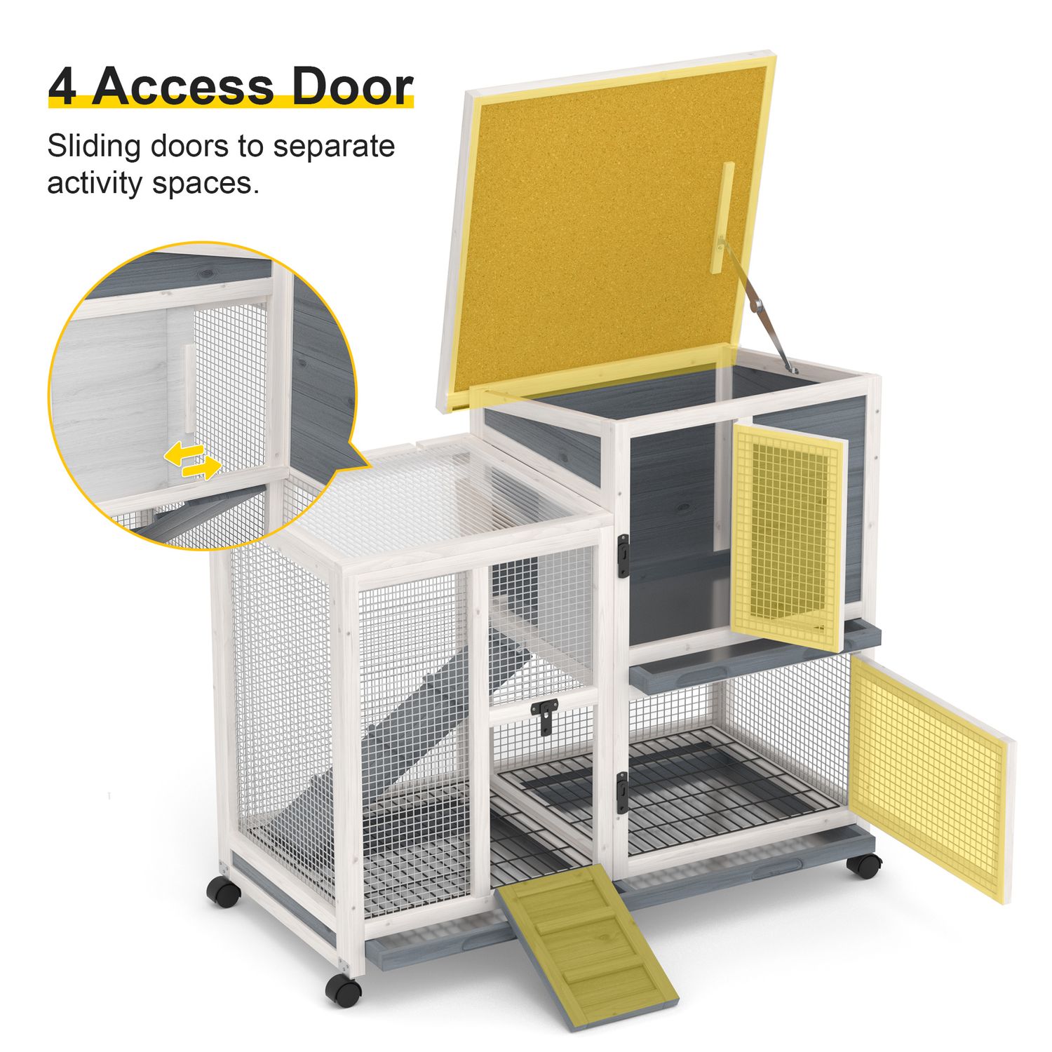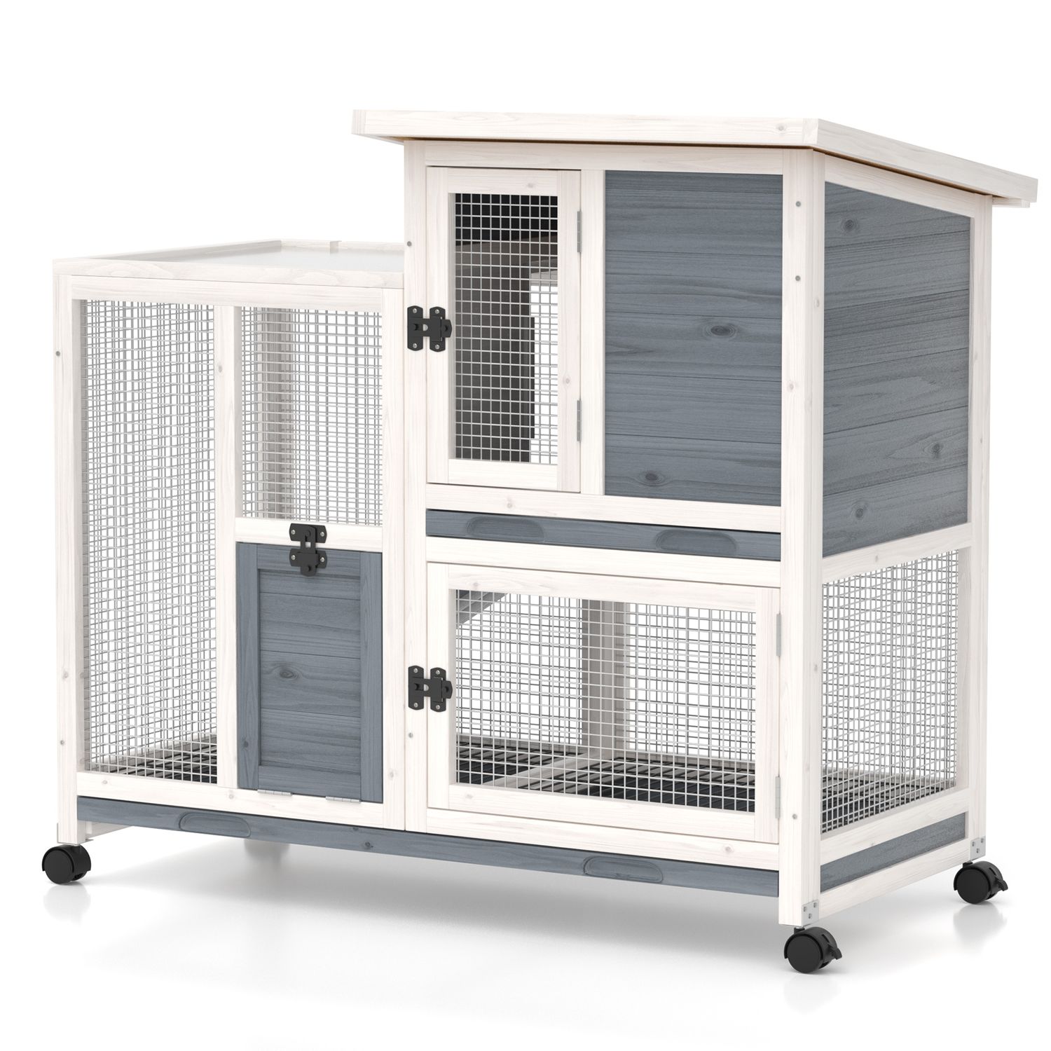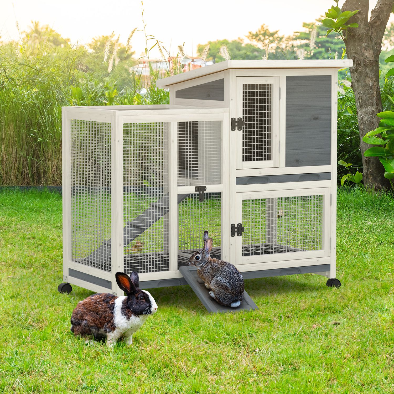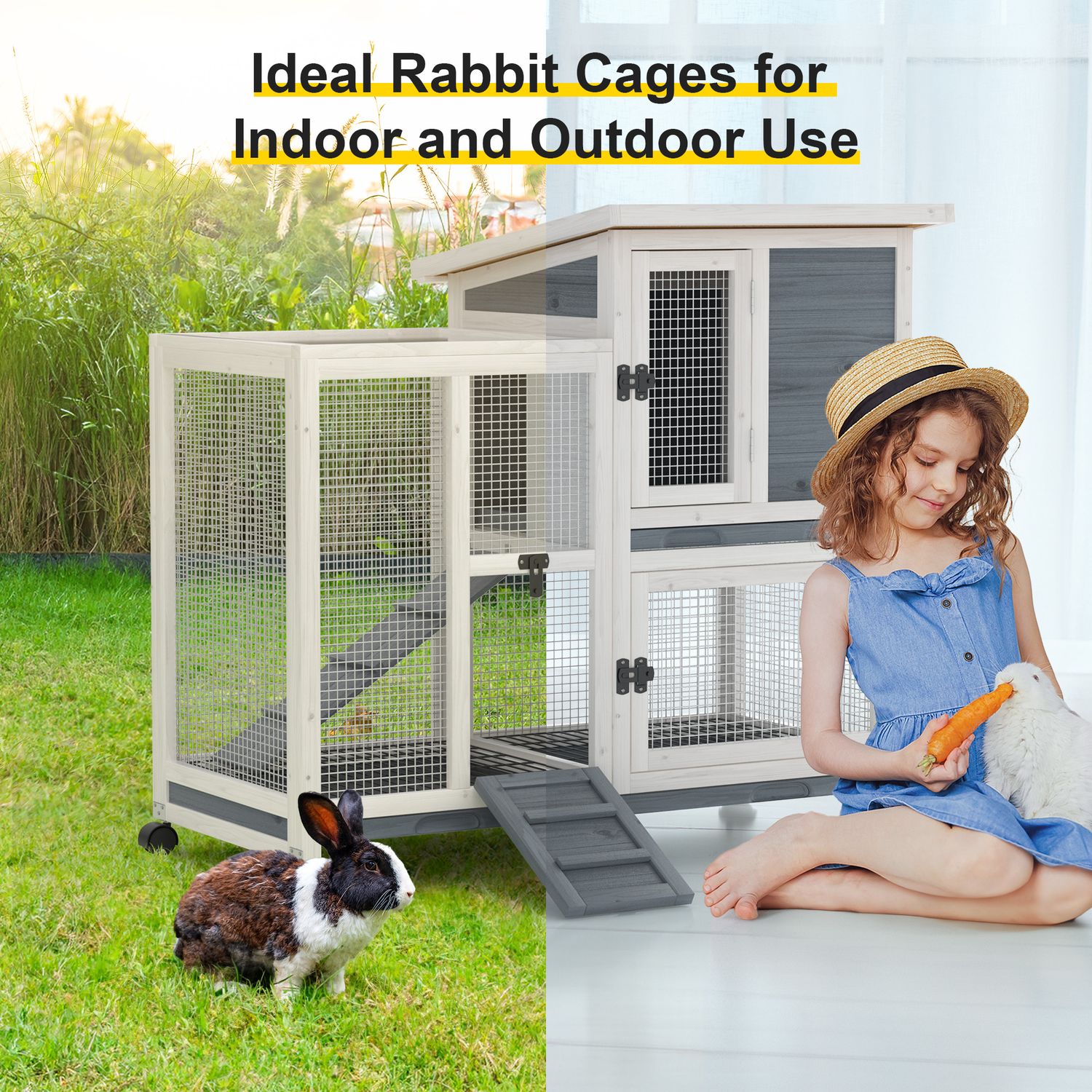Rabbit Cage Indoor & Outdoor Rabbit Hutch Weatherproof Bunny Cage Guinea Pig Cages Chicken Coop w/ Wheel & Tray, Blue