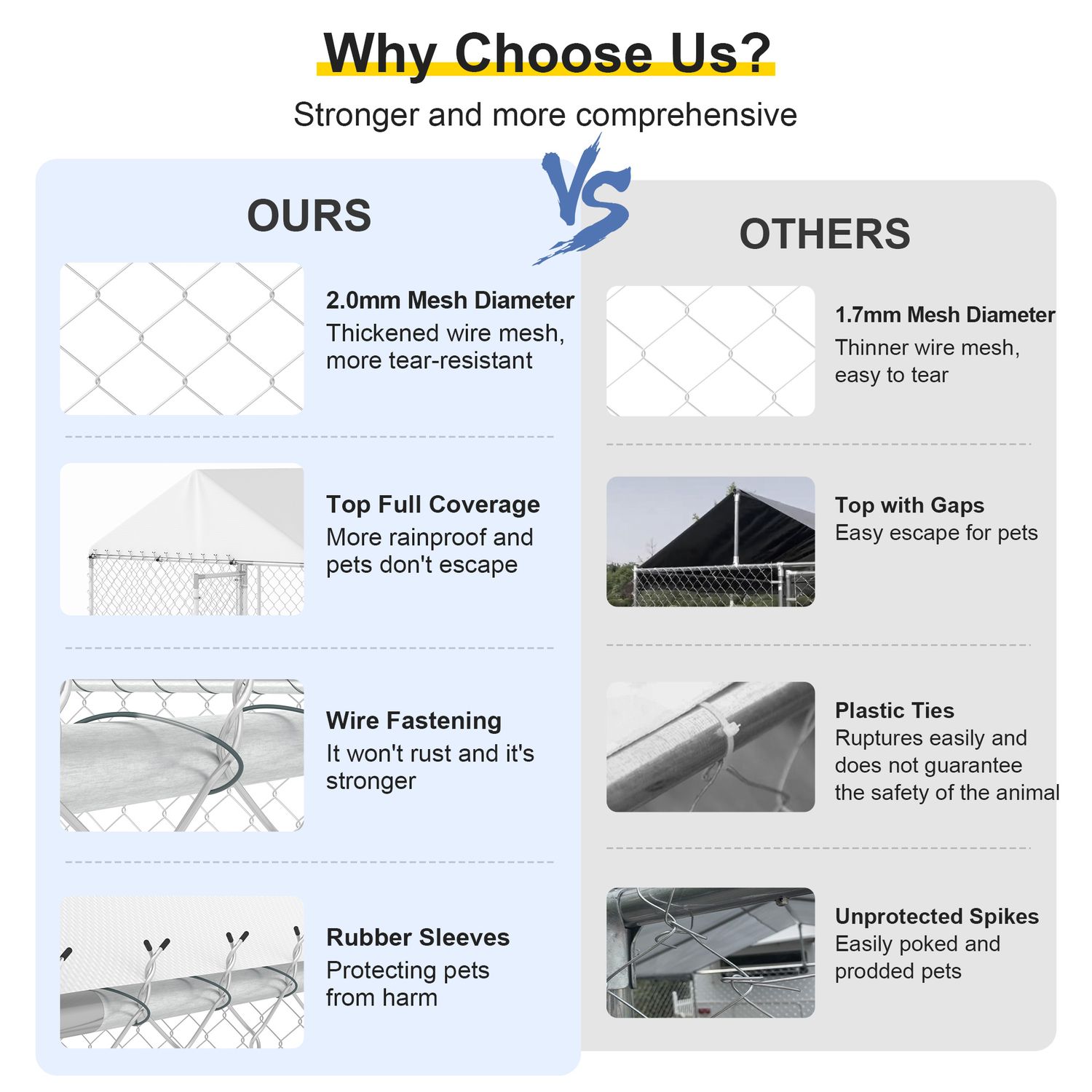 Large Dog Crate Heavy Duty Dog Kennel Outdoor Dog Playpen Dog Cage w/ Waterproof Cover 6.5 X 6.5 X 5.3ft Dog House Outdoor Dog Enclosure