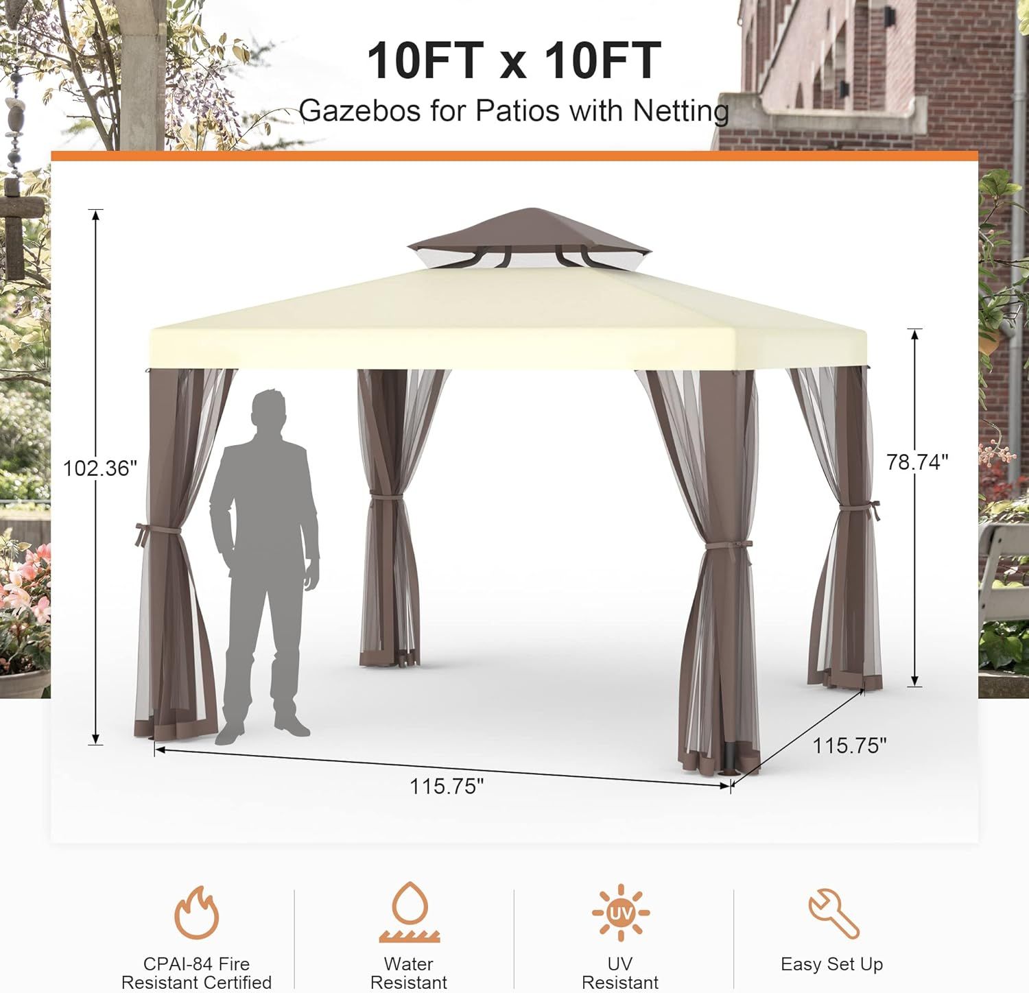 Patio Gaebo Tent Outdoor Canopy Shelter 10'x10' wMosquito Netting with 100 Square Feet of Shade for Garden, Backyard Deck and Lawns