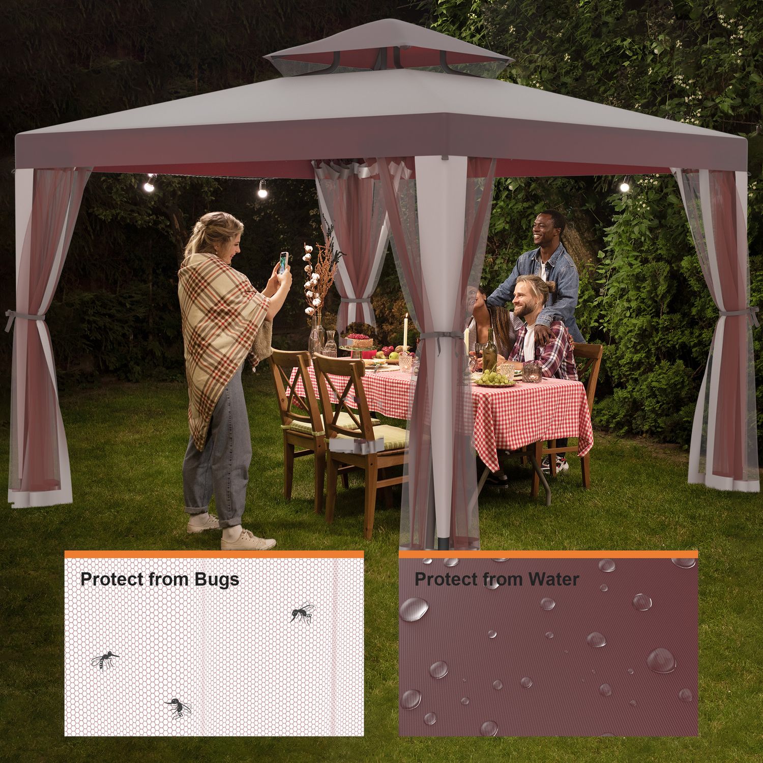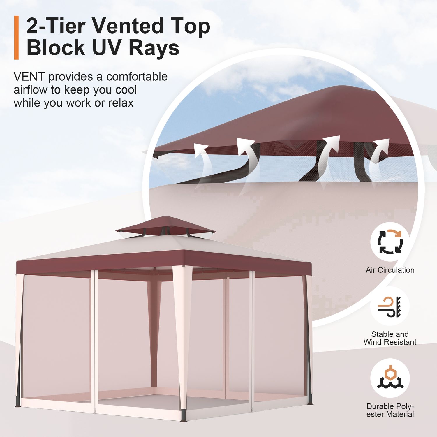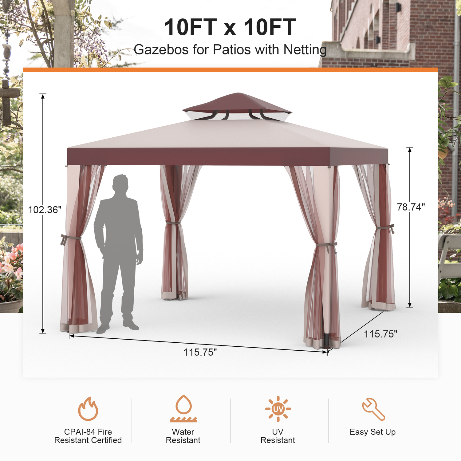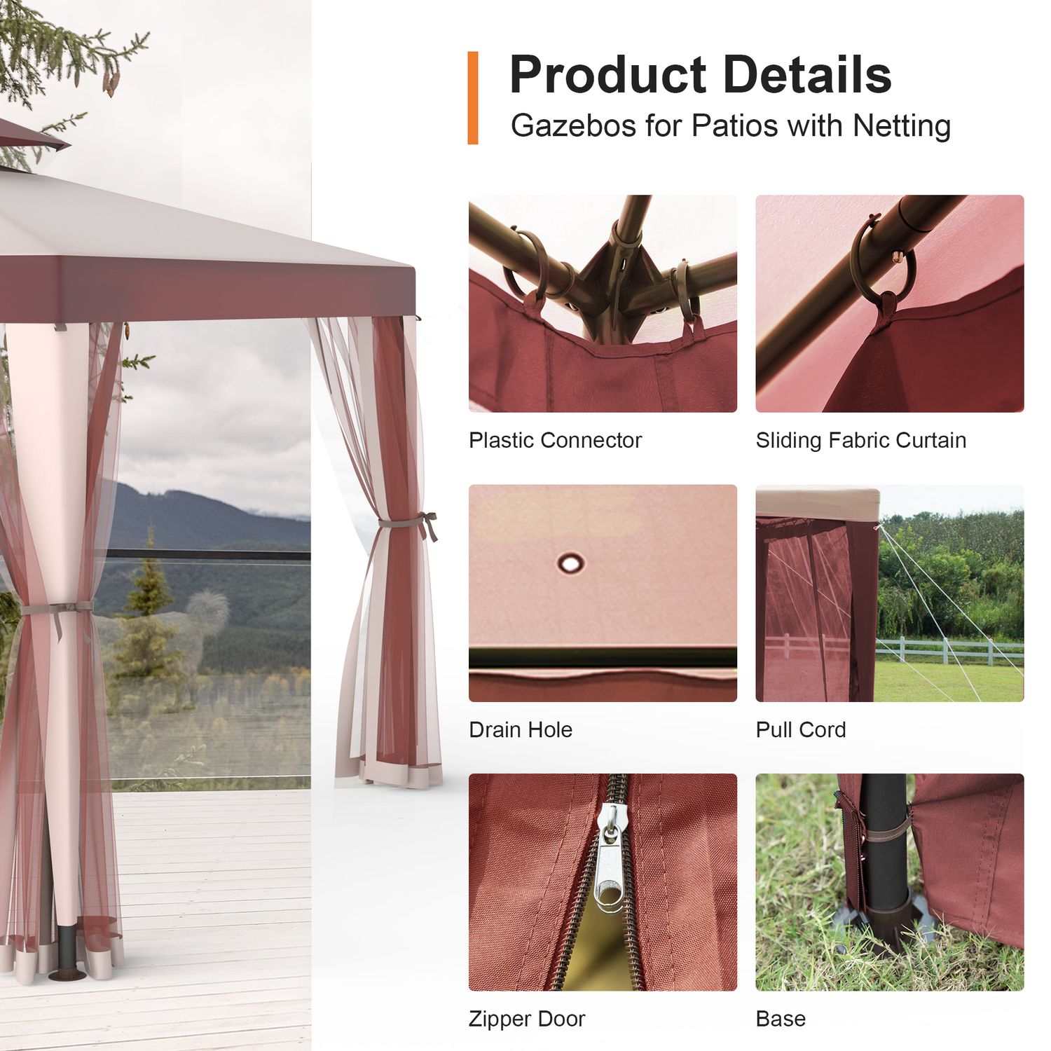 Patio Gazebo Tent Outdoor Canopy Shelter 10'x10' with Removable Netting,100 Square Feet of Shade for Garden, Backyard Deck and Lawns (Red)