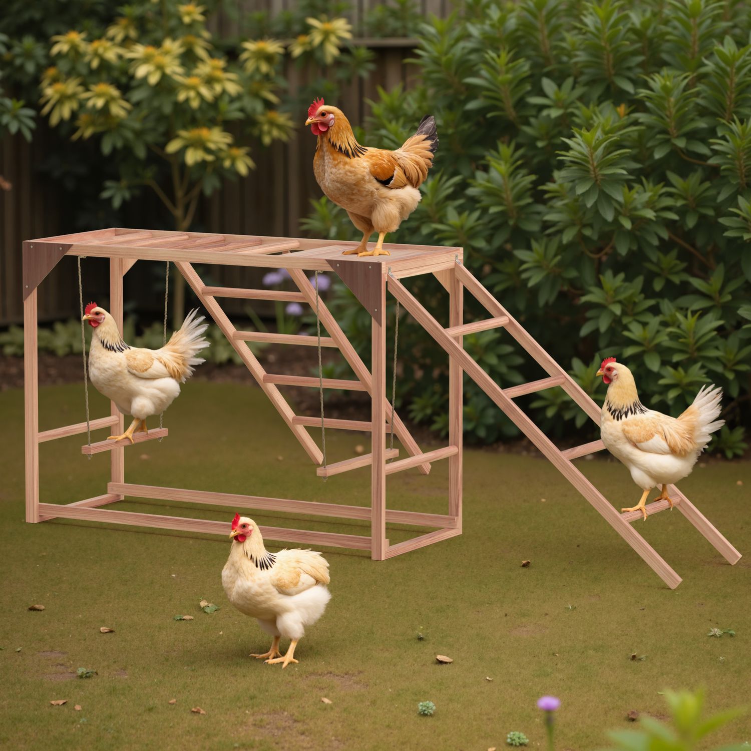 Phonjoro Chicken Perch w/Ladder Swing & Ramp for Coop, Chicken Roosting Bars for Chickens in Coop, Chicken Coop Accessories Toy, Wooden Chicken Activity Play for Pets Healthy for Backyard Farm