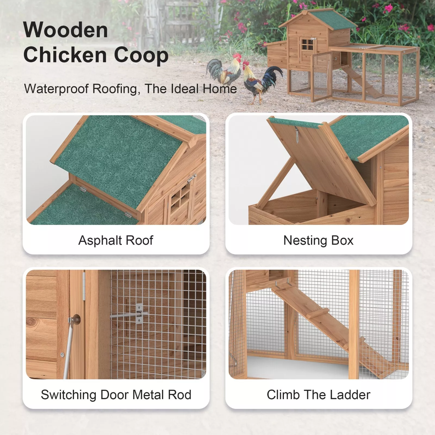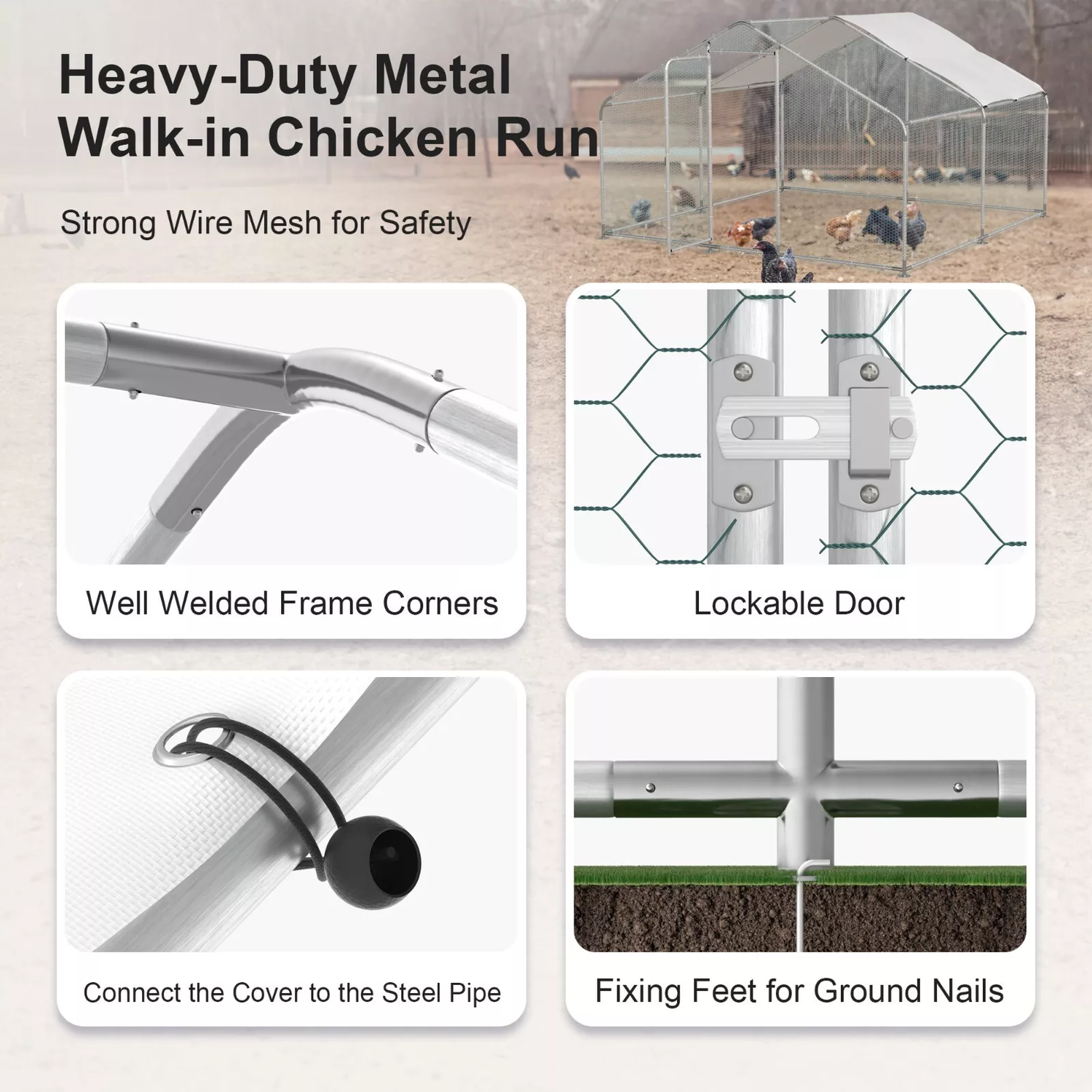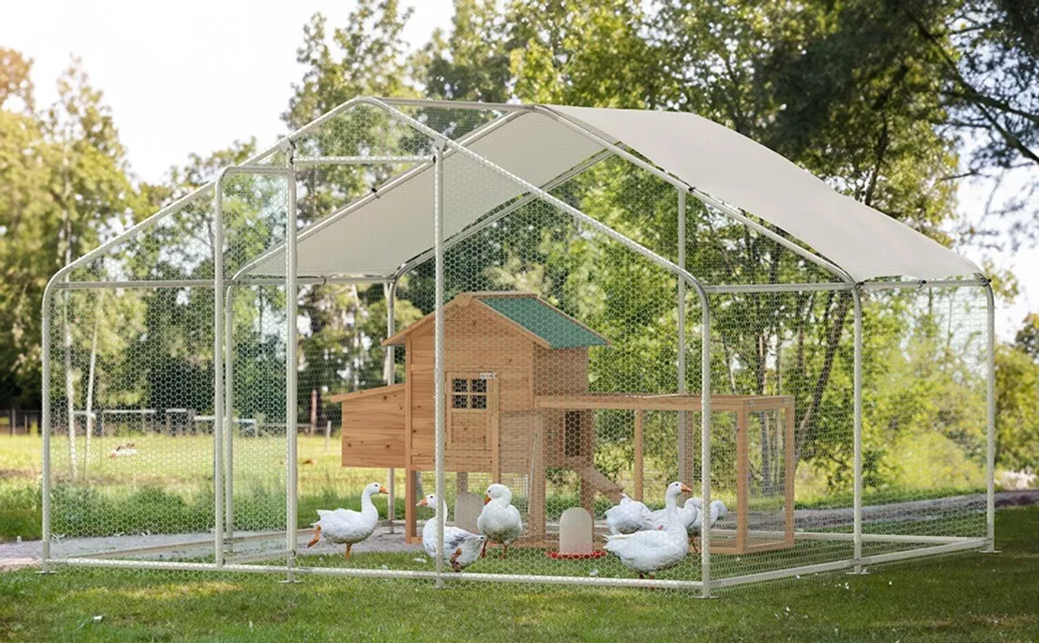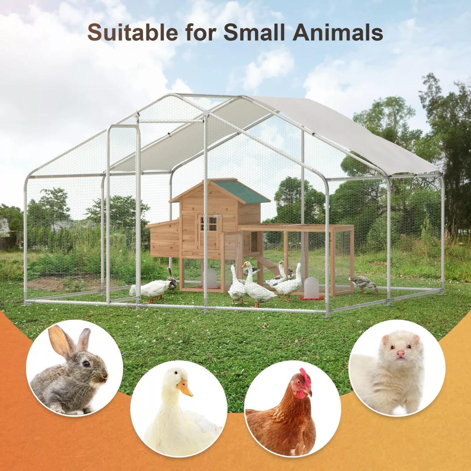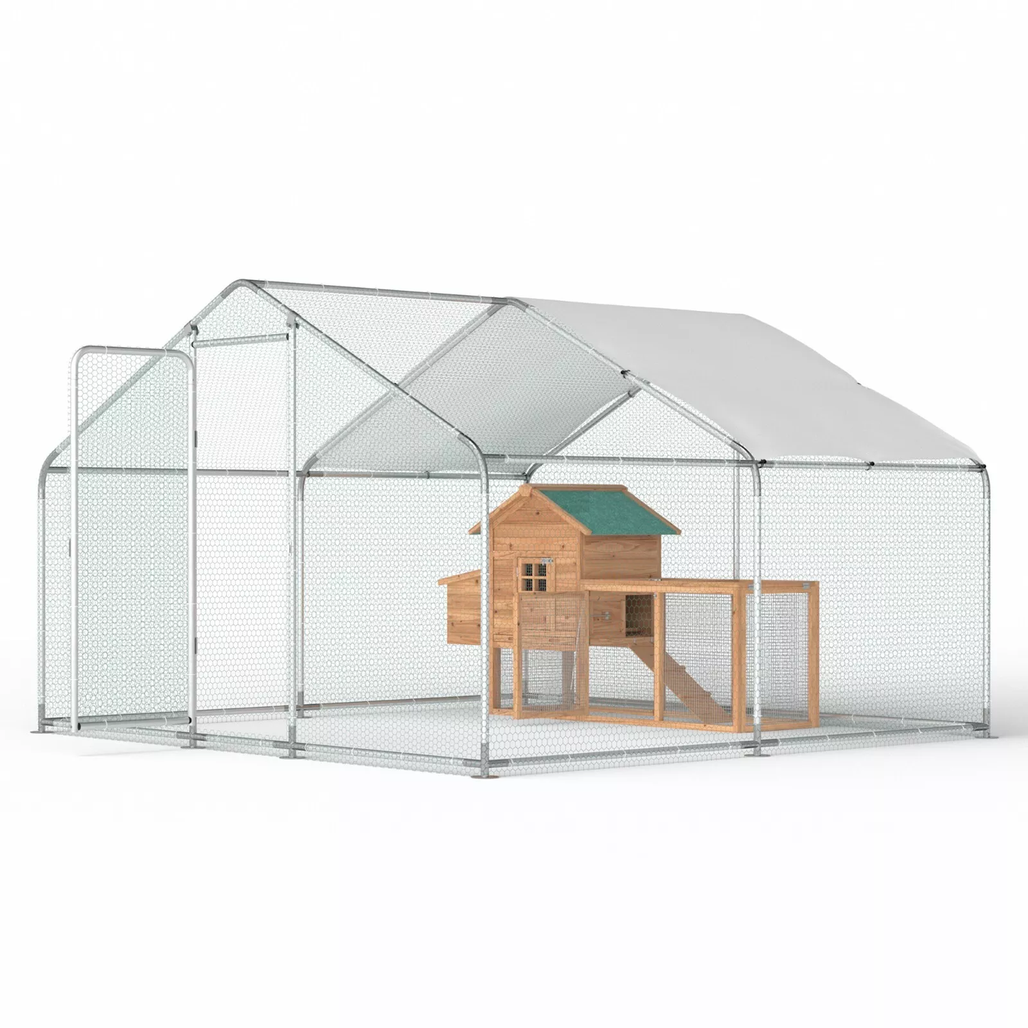 Phonjoroo 10x10x6.6 ft Walk-In Metal Chicken Run & 80" Wooden Chicken Coop Outdoor Yard