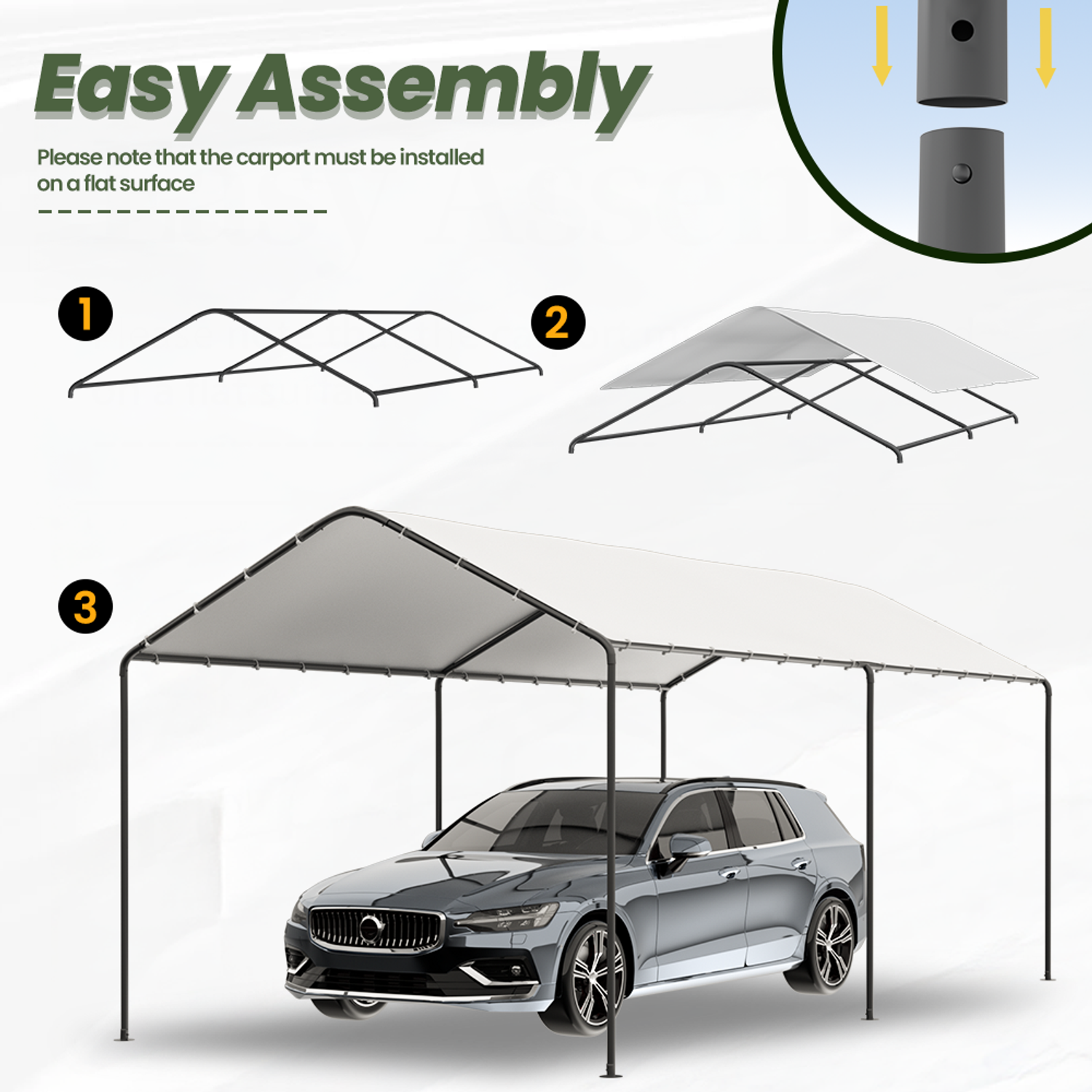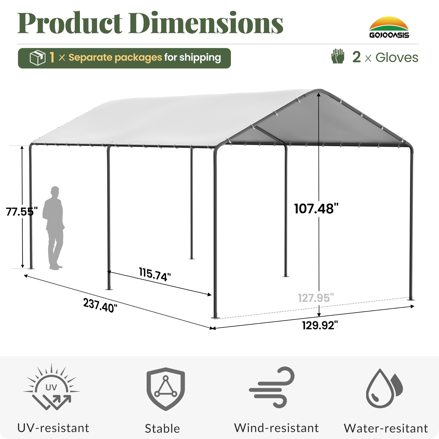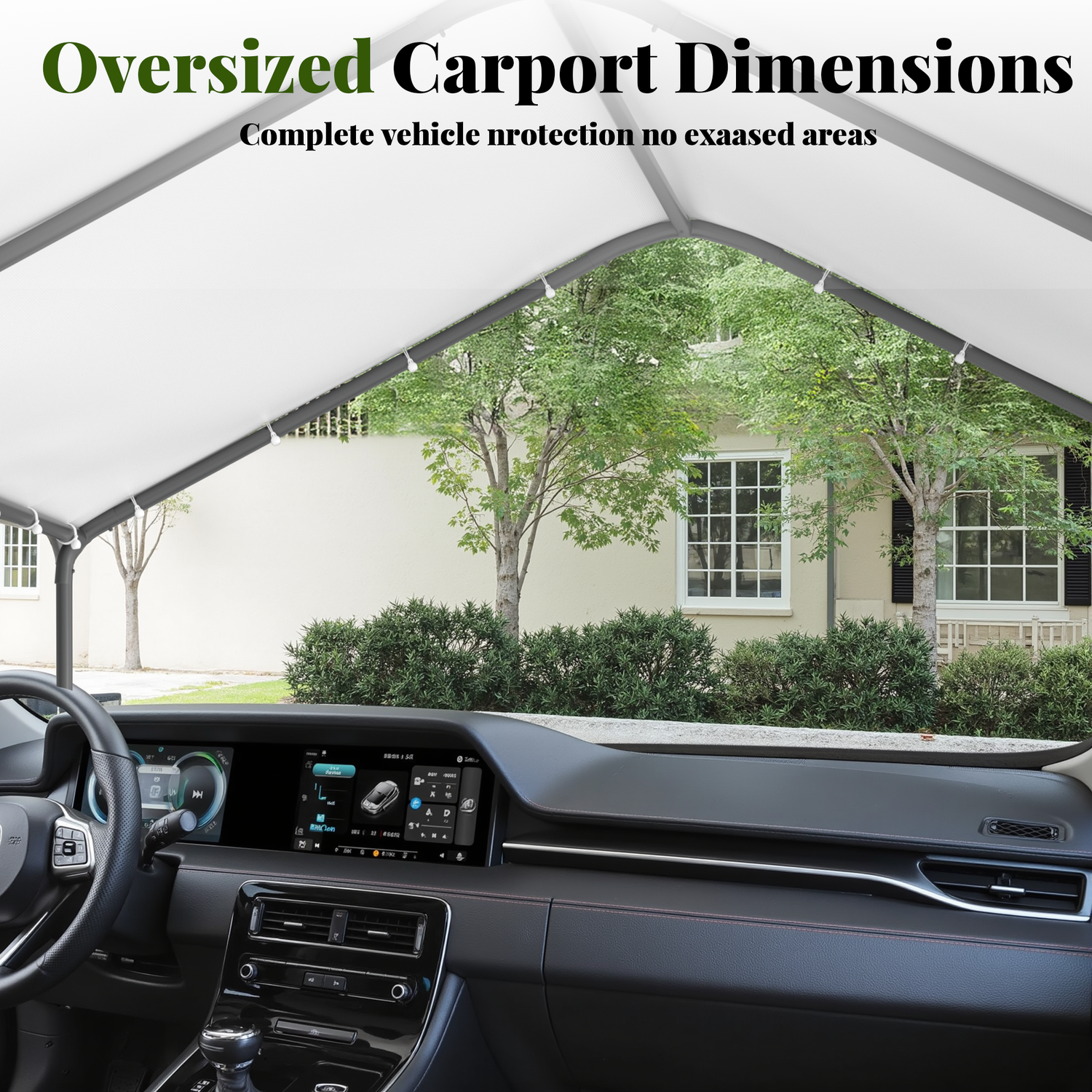 Phonjoroo 10x20 Carport Heavy Duty Portable Garage Shelter Metal Car Canopy Tent with UV-Resistant & Weatherproof Top Cover for RV & Vehicles