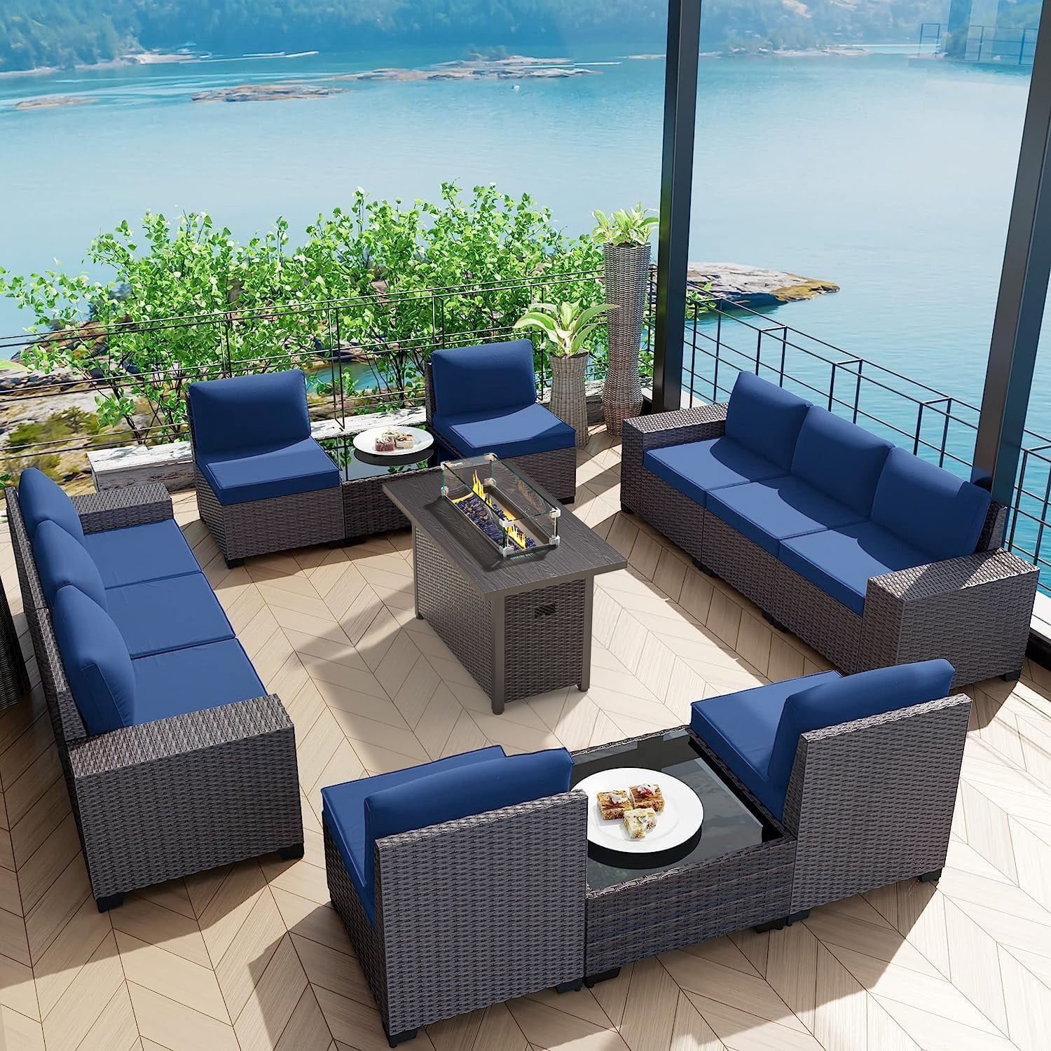 Phonjoroo 13 Pieces Outdoor Patio Furniture Set with 42” Fire Pit Table
