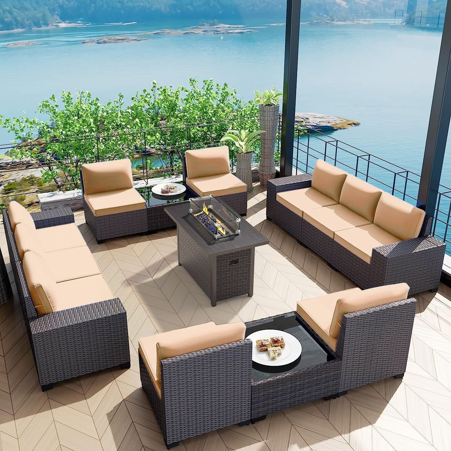 Phonjoroo 13 Pieces Outdoor Patio Furniture Set with 42” Fire Pit Table