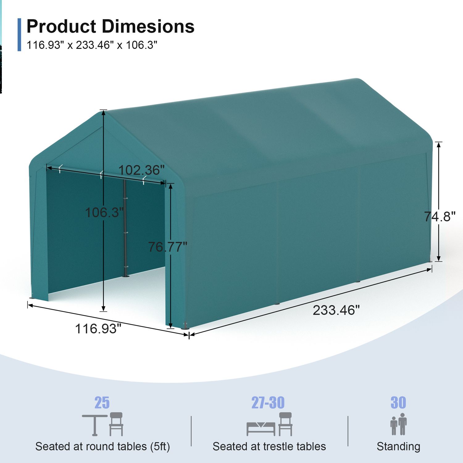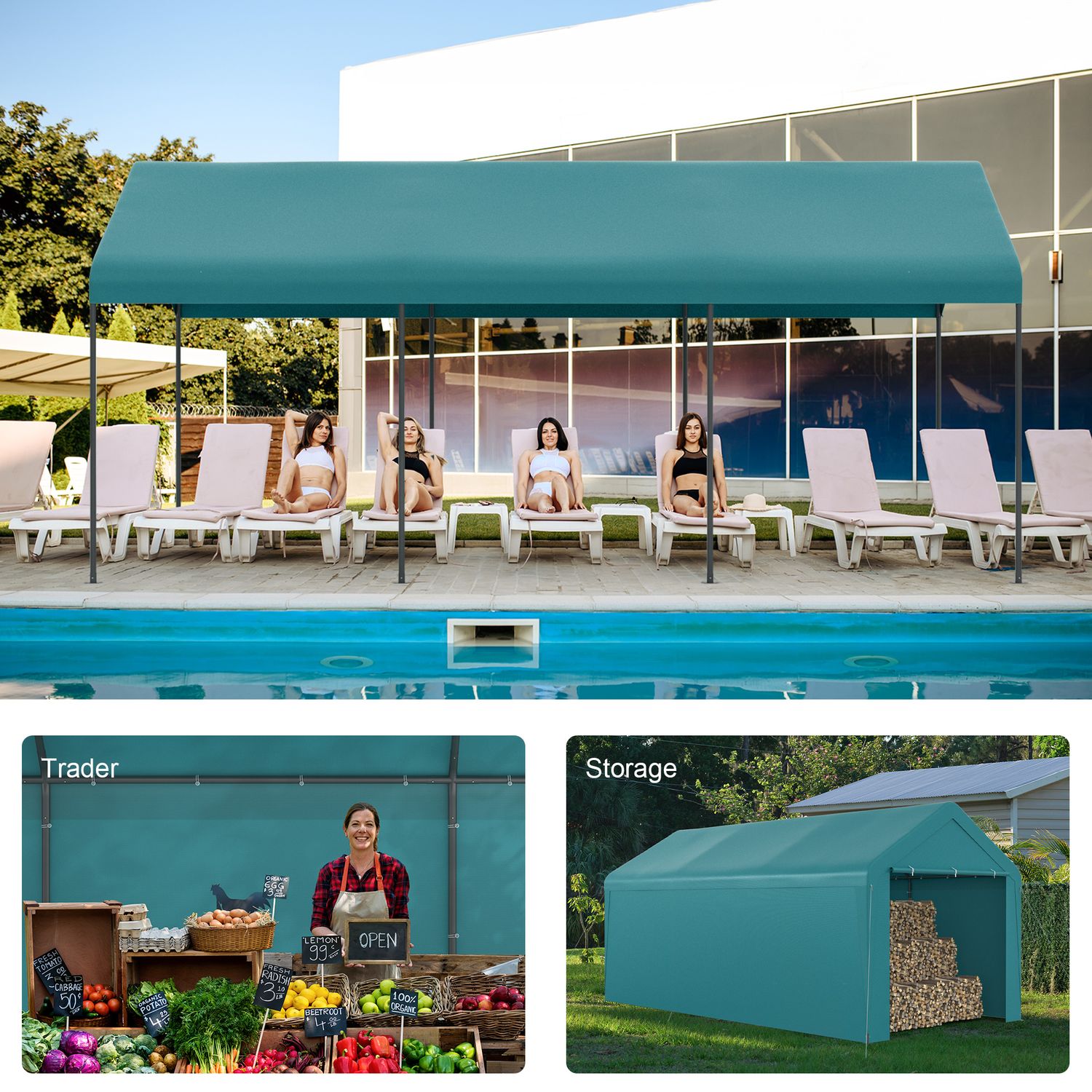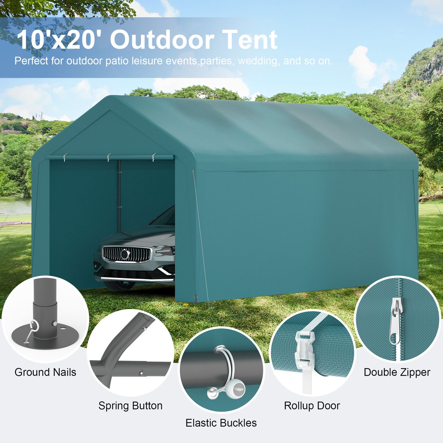 Phonjoroo Carport 10'x20' Heavy Duty Patio Canopy Portable Garage with Removable Sidewalls & Doors for Truck Boat Port, Party, Storage