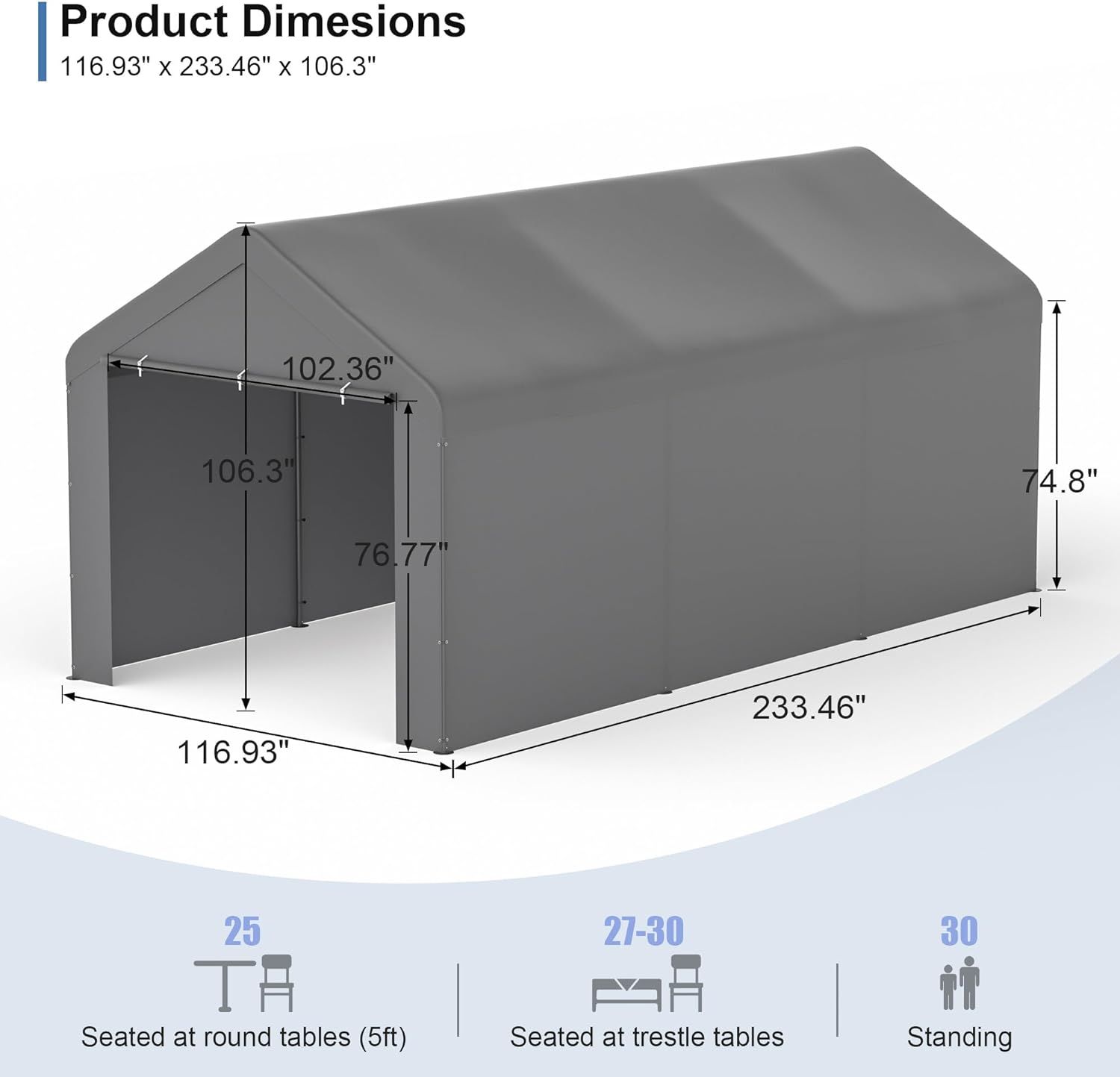 Phonjoroo Carport 10x20 Car Ports Heavy Duty Carports Portable Garage Car Canopy Tent Outdoor Car Shelter