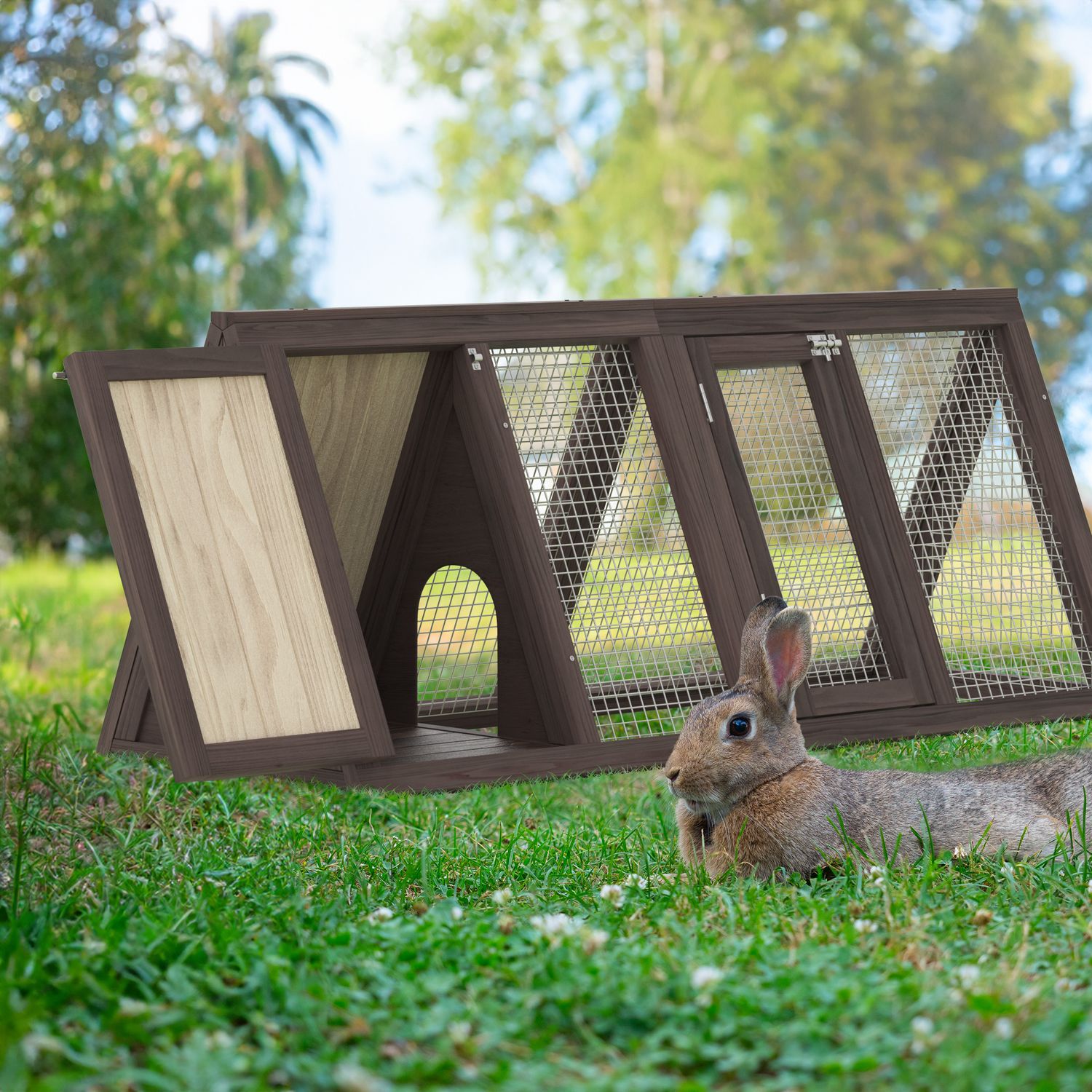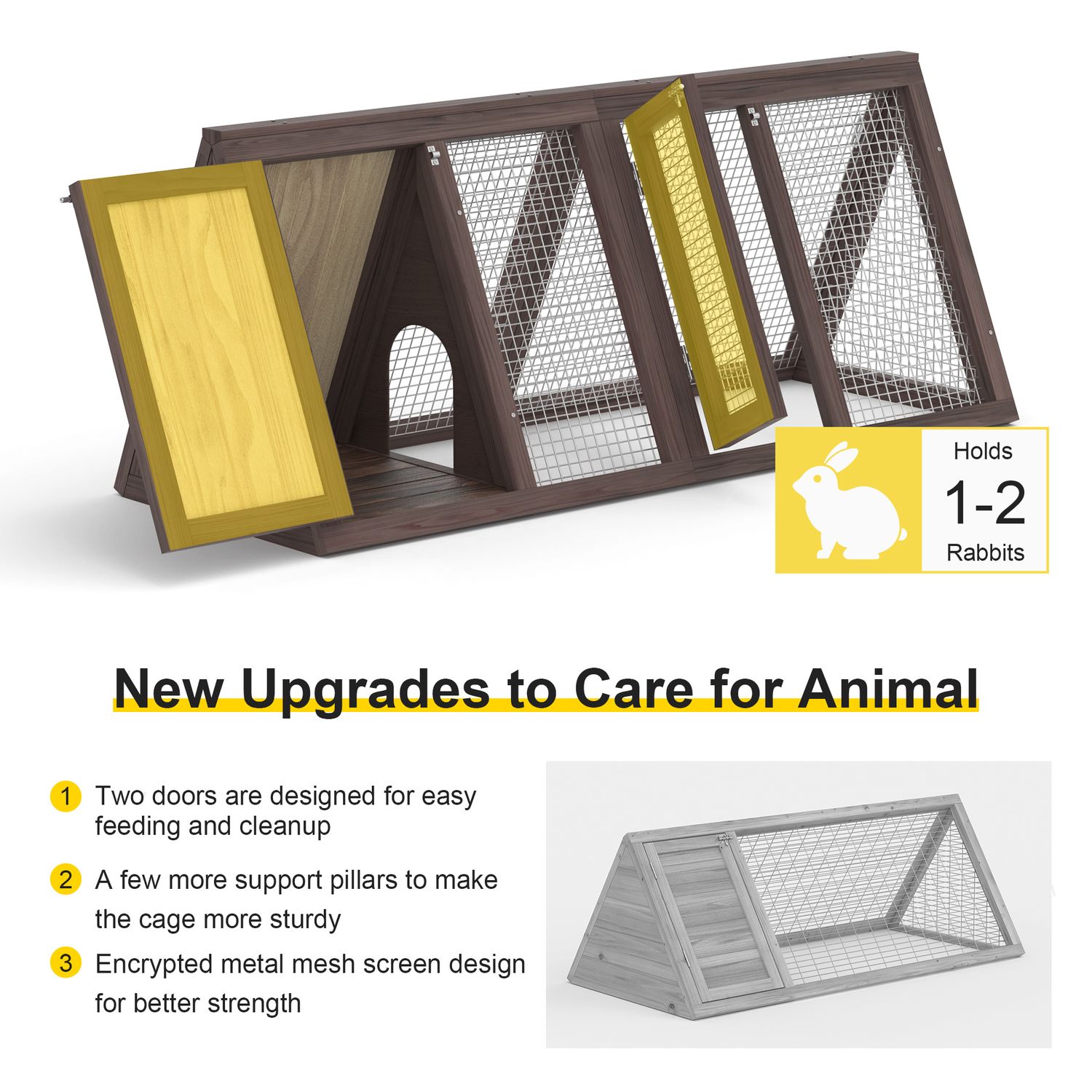 Phonjoroo Chicken Coop for 2 Chickens Small Rabbit Hutch Quail Coop Wooden Bunny Cages Outdoor Chicken House w/Ventilating Wire, Brown