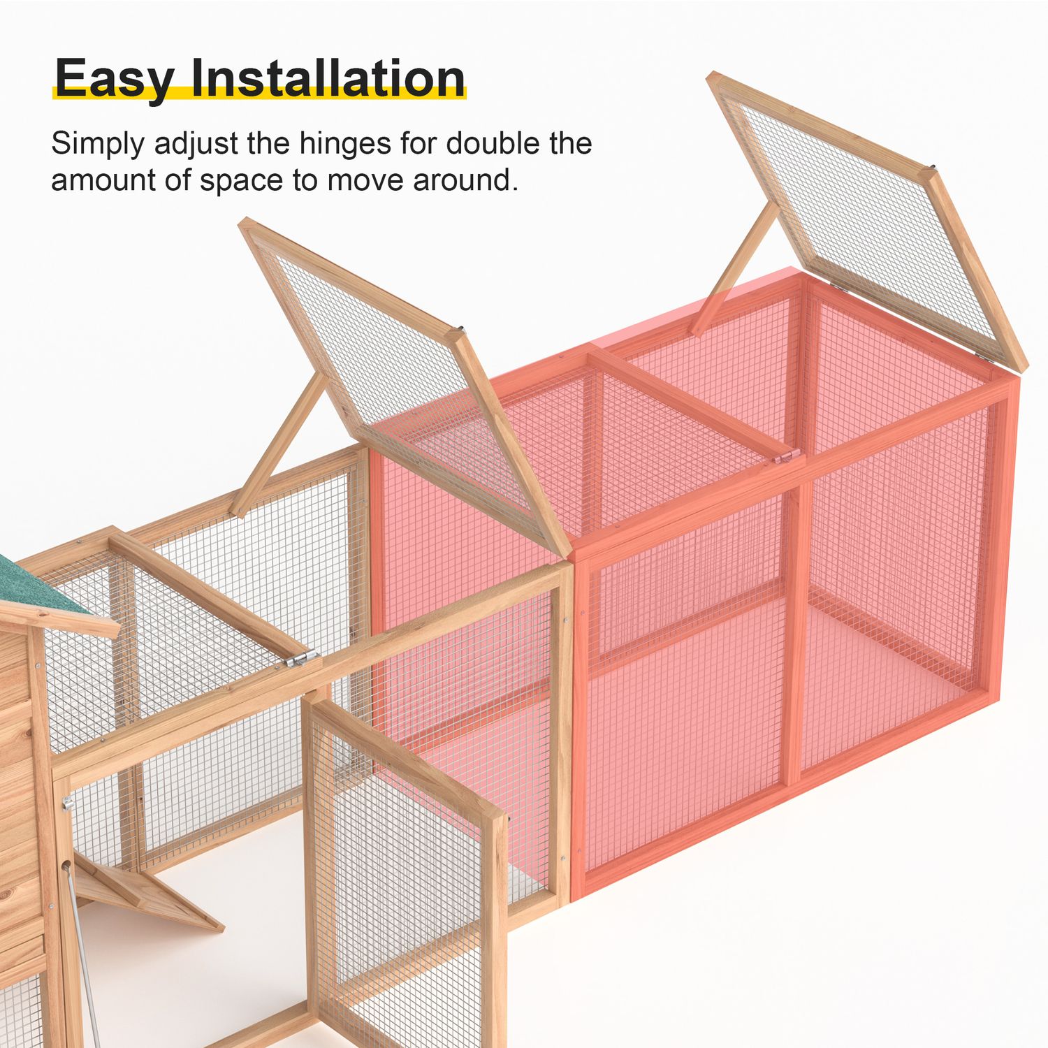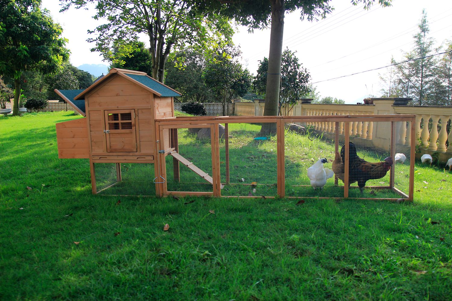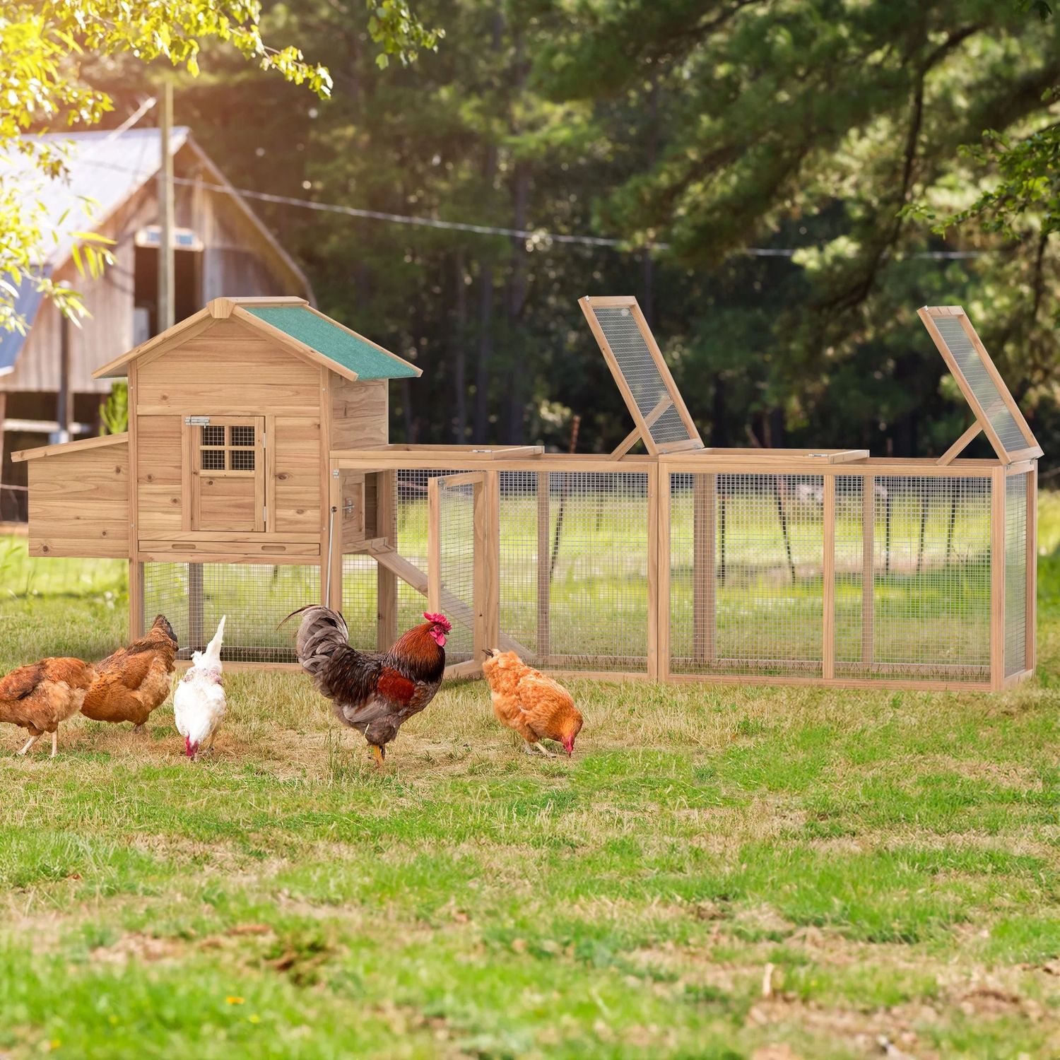 Phonjoroo Chicken Coop for 4-6 Chickens Outdoor Wooden Rabbit Hutch Poultry House with Chicken Run Cage, Egg Box & Waterproof Roof