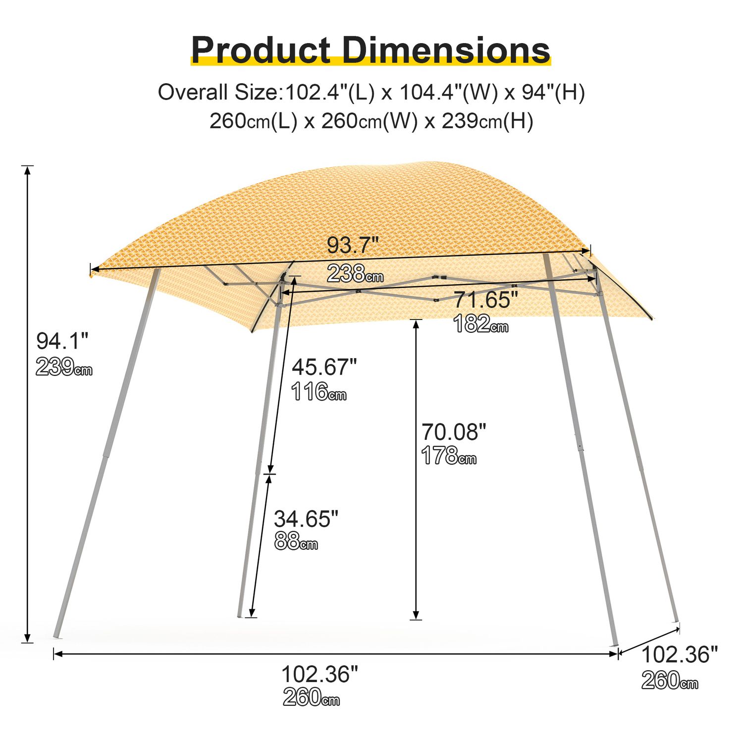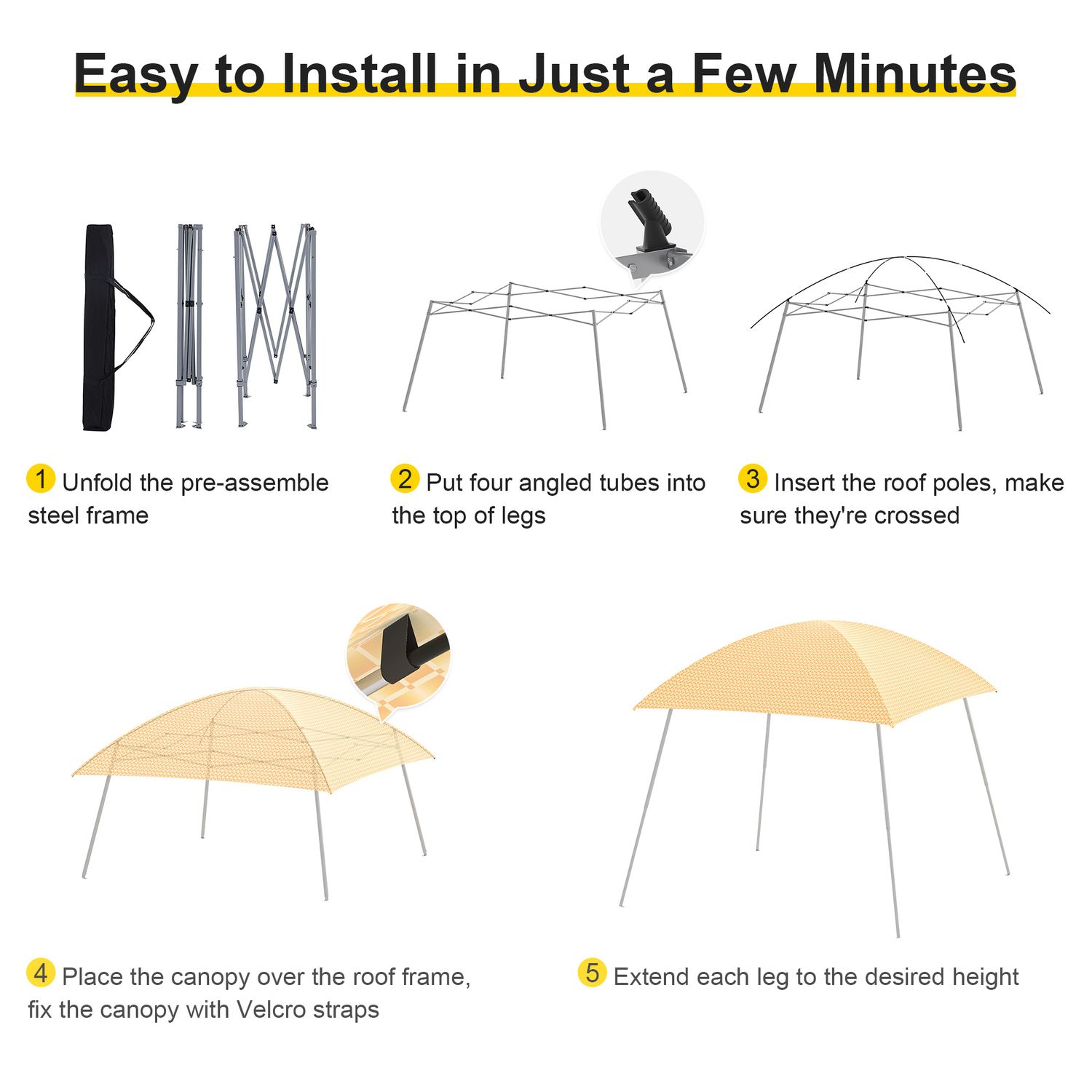 Phonjoroo Ez Pop Up Canopy Party Tent with Carry Bag Instant Shelter Slant Leg Easy Gazebo 8'×8'