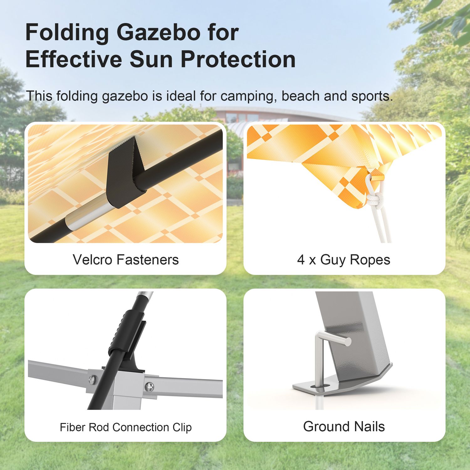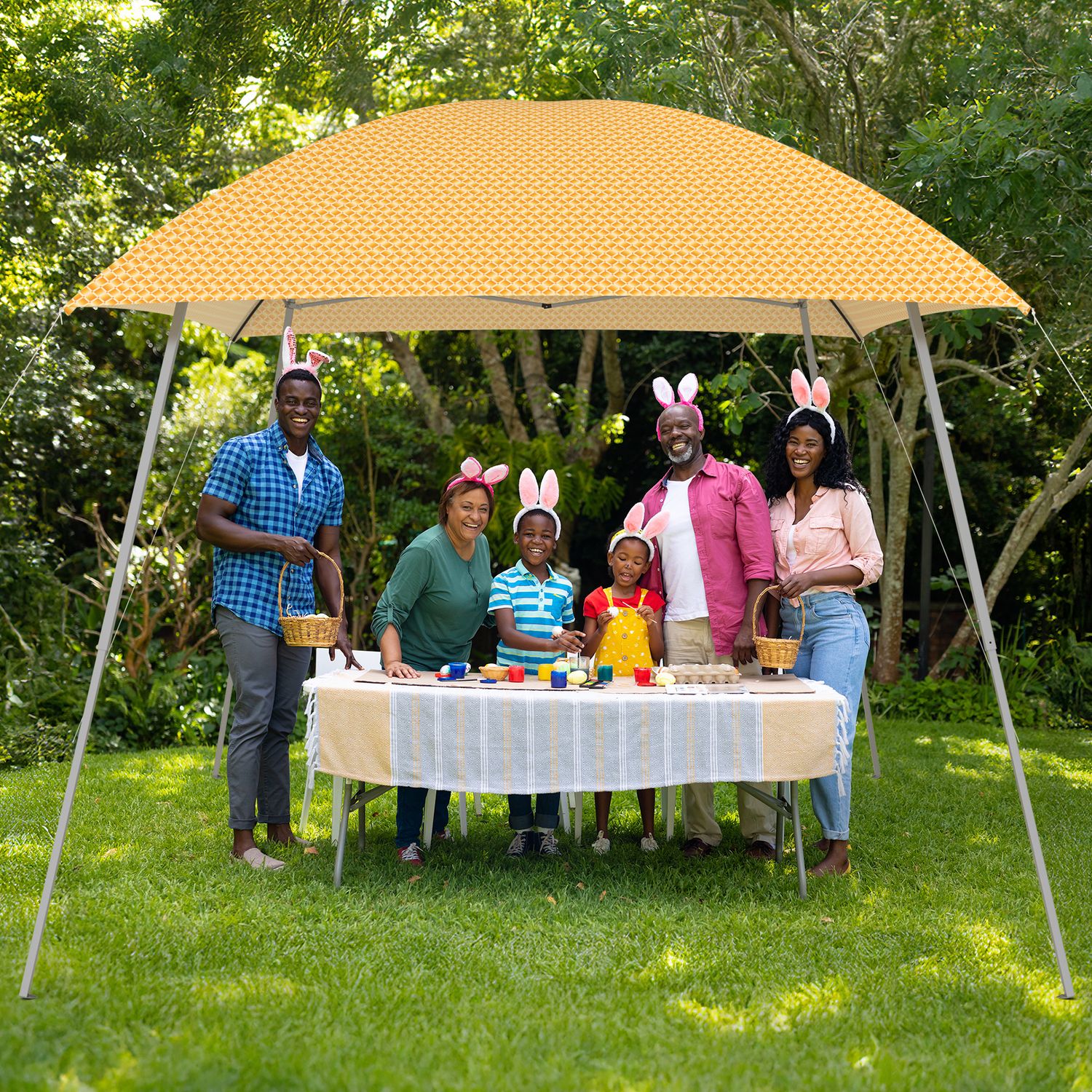 Phonjoroo Ez Pop Up Canopy Party Tent with Carry Bag Instant Shelter Slant Leg Easy Gazebo 8'×8', Orange Stripe