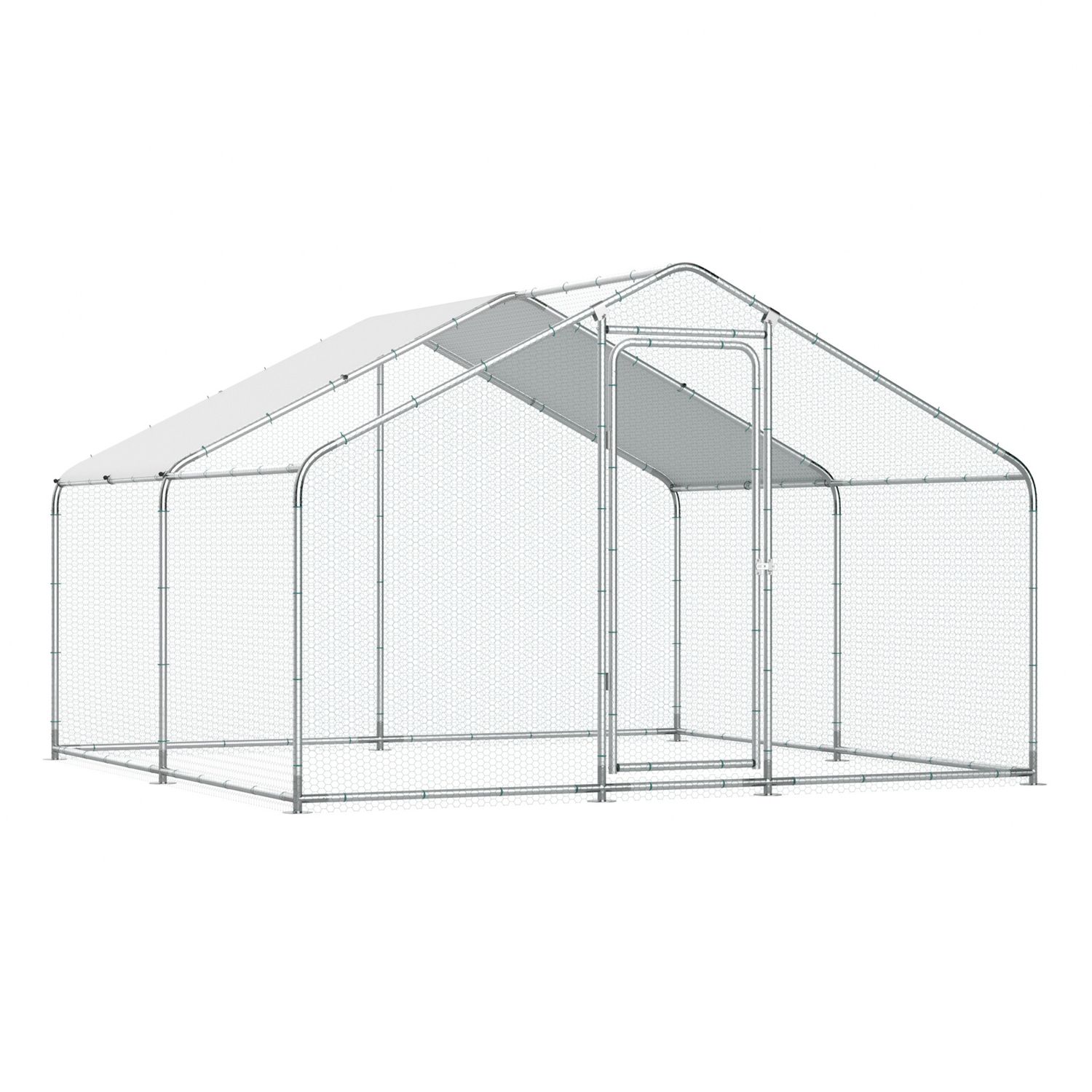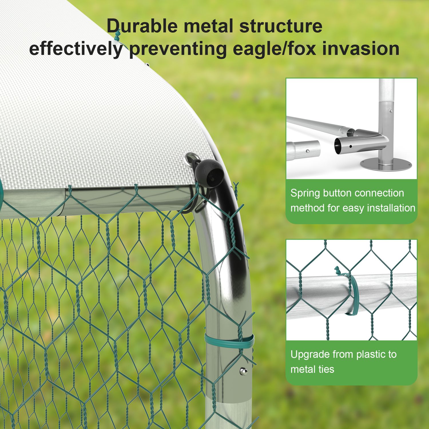 Phonjoroo Large Chicken Coop Run Walk-in Metal Poultry Cage Outdoor Backyard Hen House with Roof Cover (10'L x 10'W x 6.6'H)