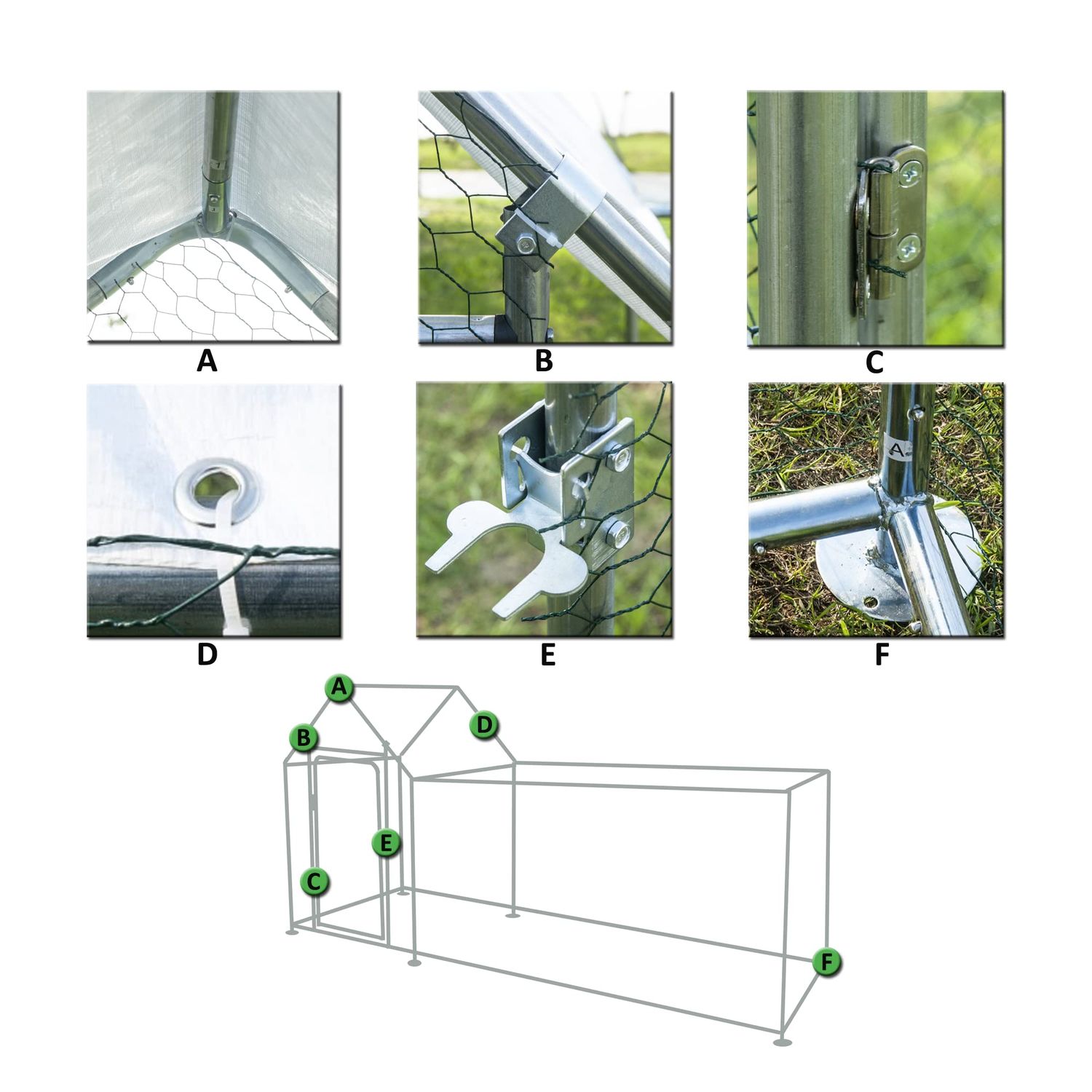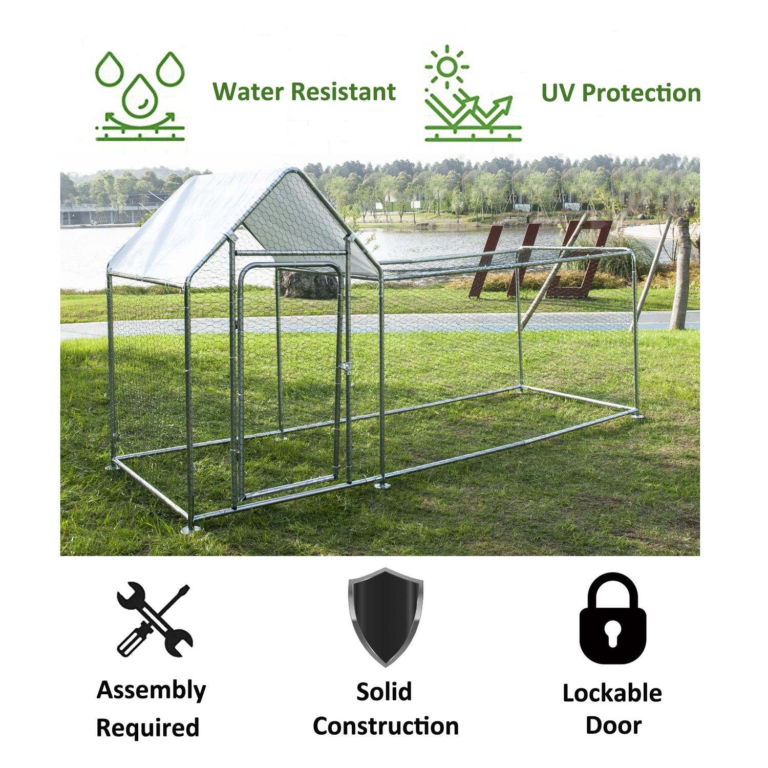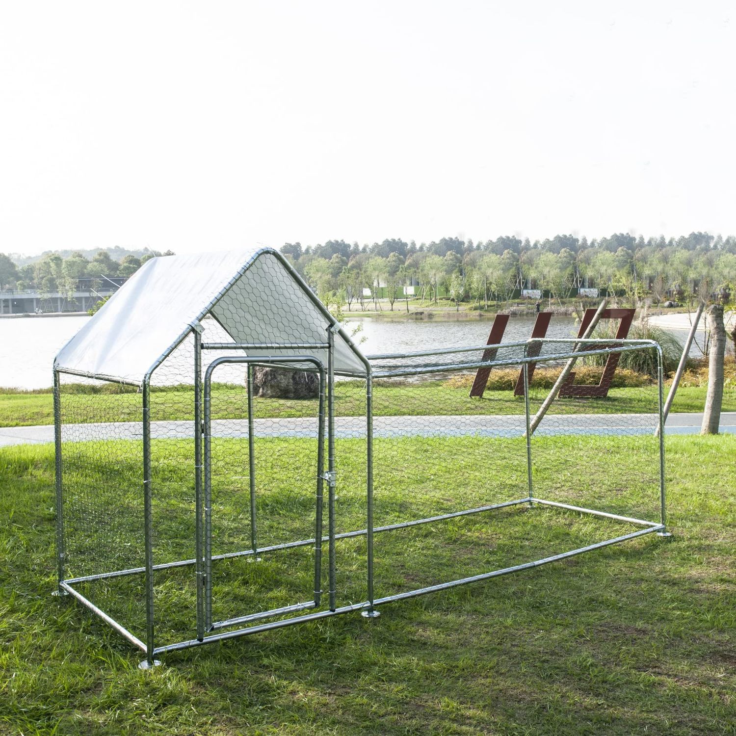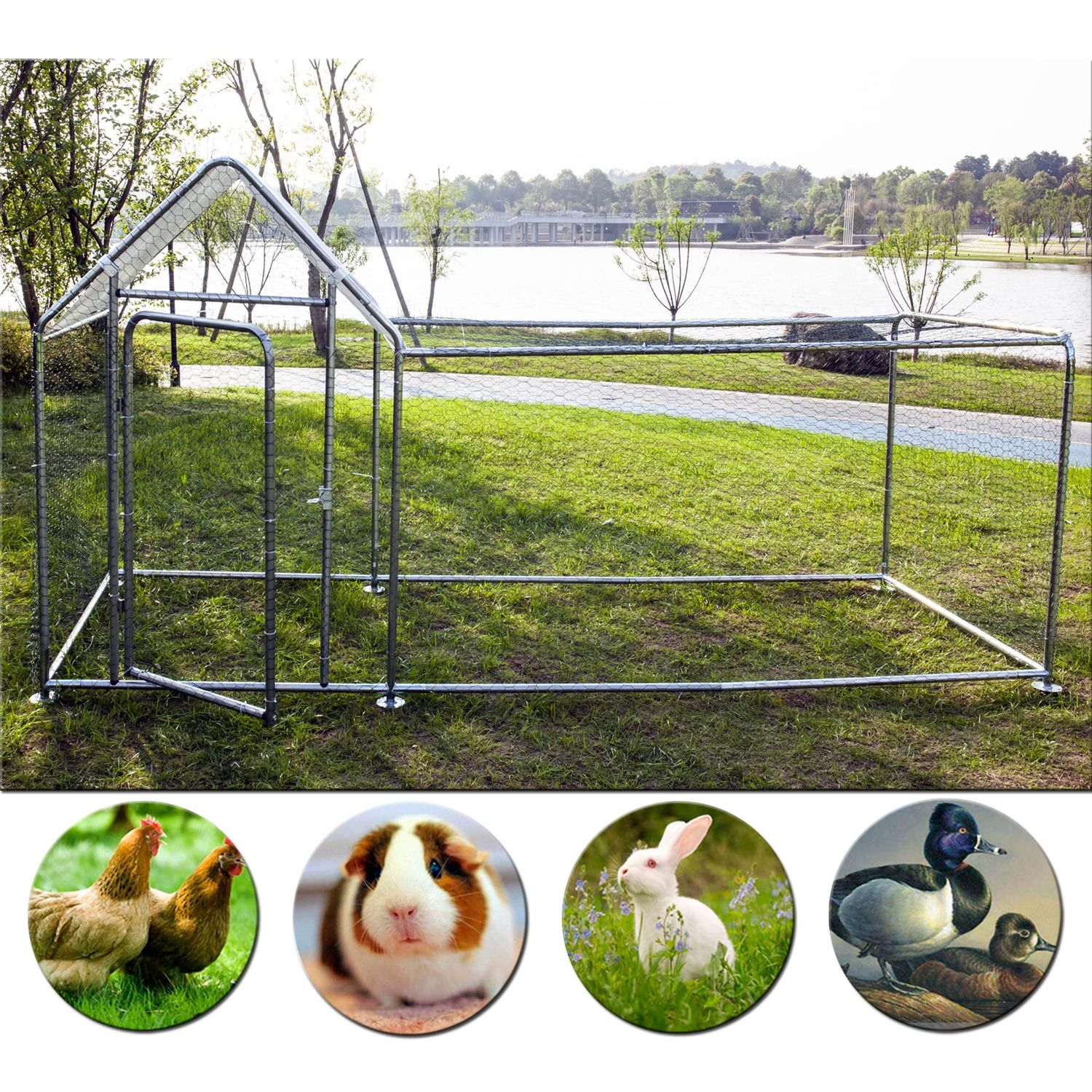Phonjoroo Outdoor Metal Chicken Coop Hen House Poultry Pet Hutch w/ Cover Garden Backyard Cage for Farm Use (118''), Silver