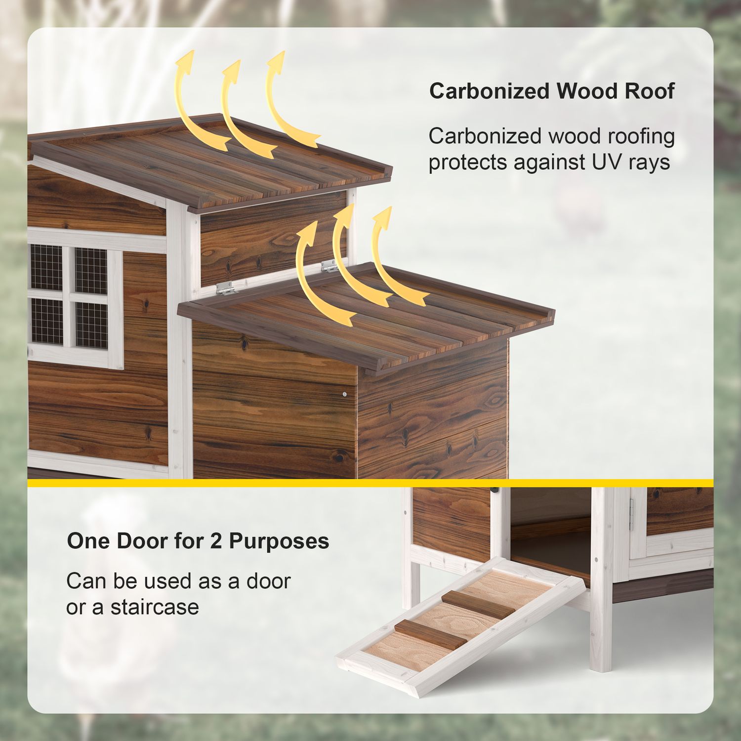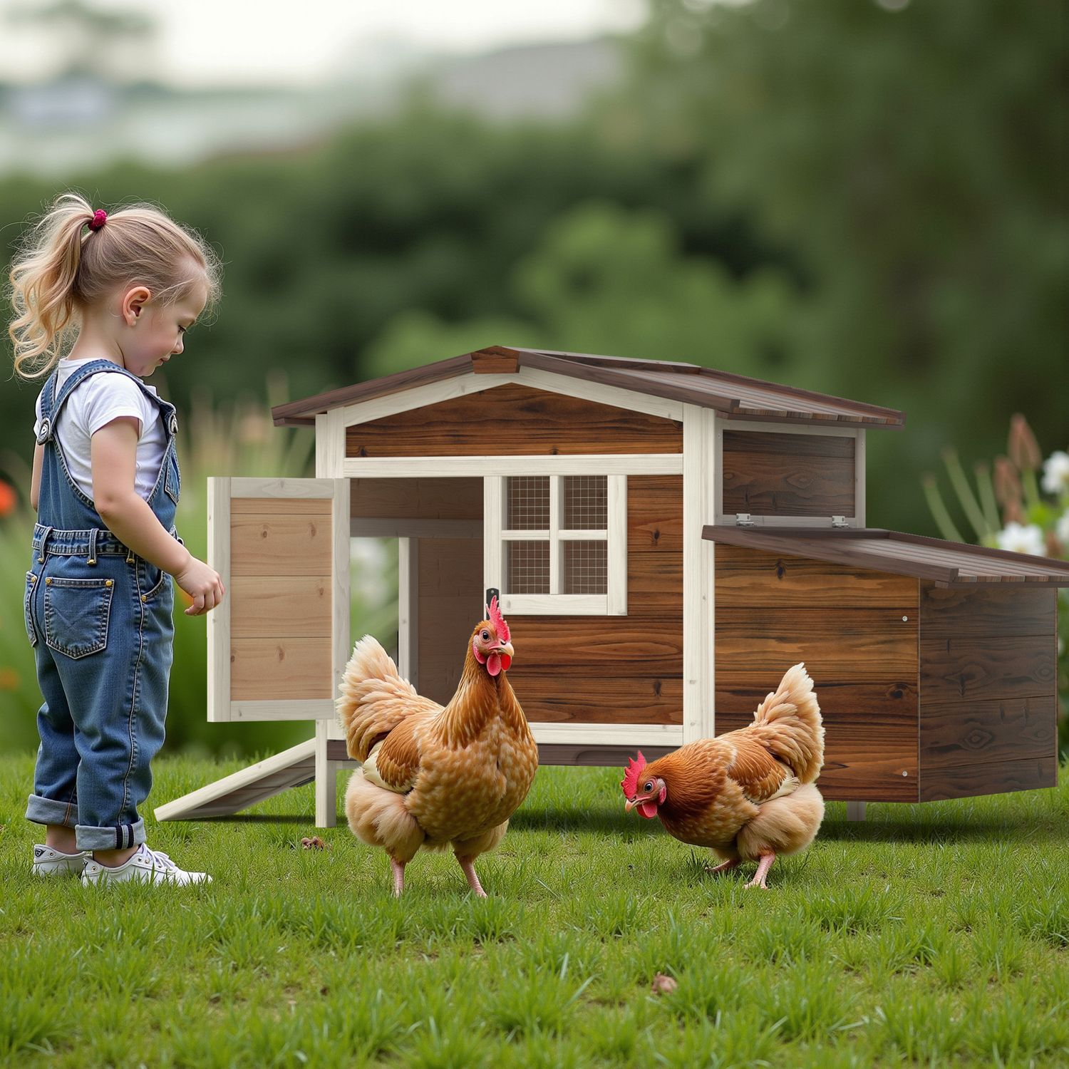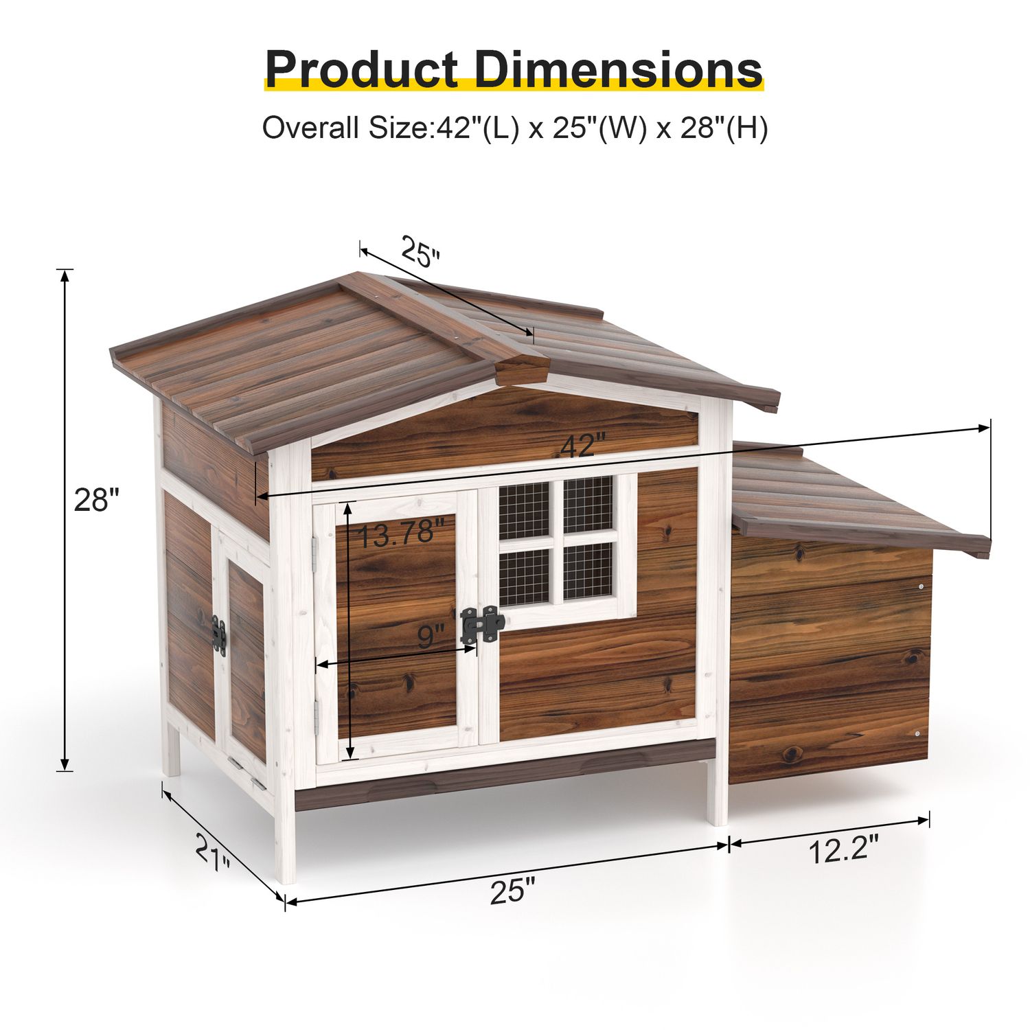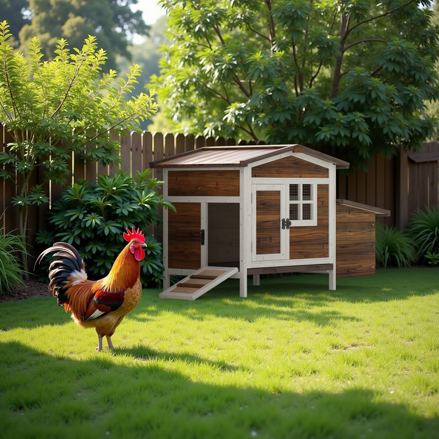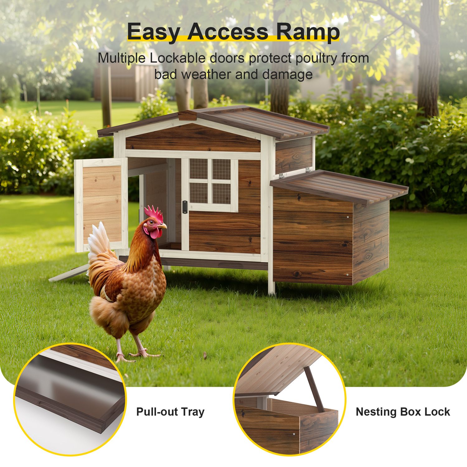 Phonjoroo Outdoor Wooden Chicken Coop Hen House Poultry Cage with Tray, Ramp & Nesting Box for Indoor and Outdoor Use, Brown