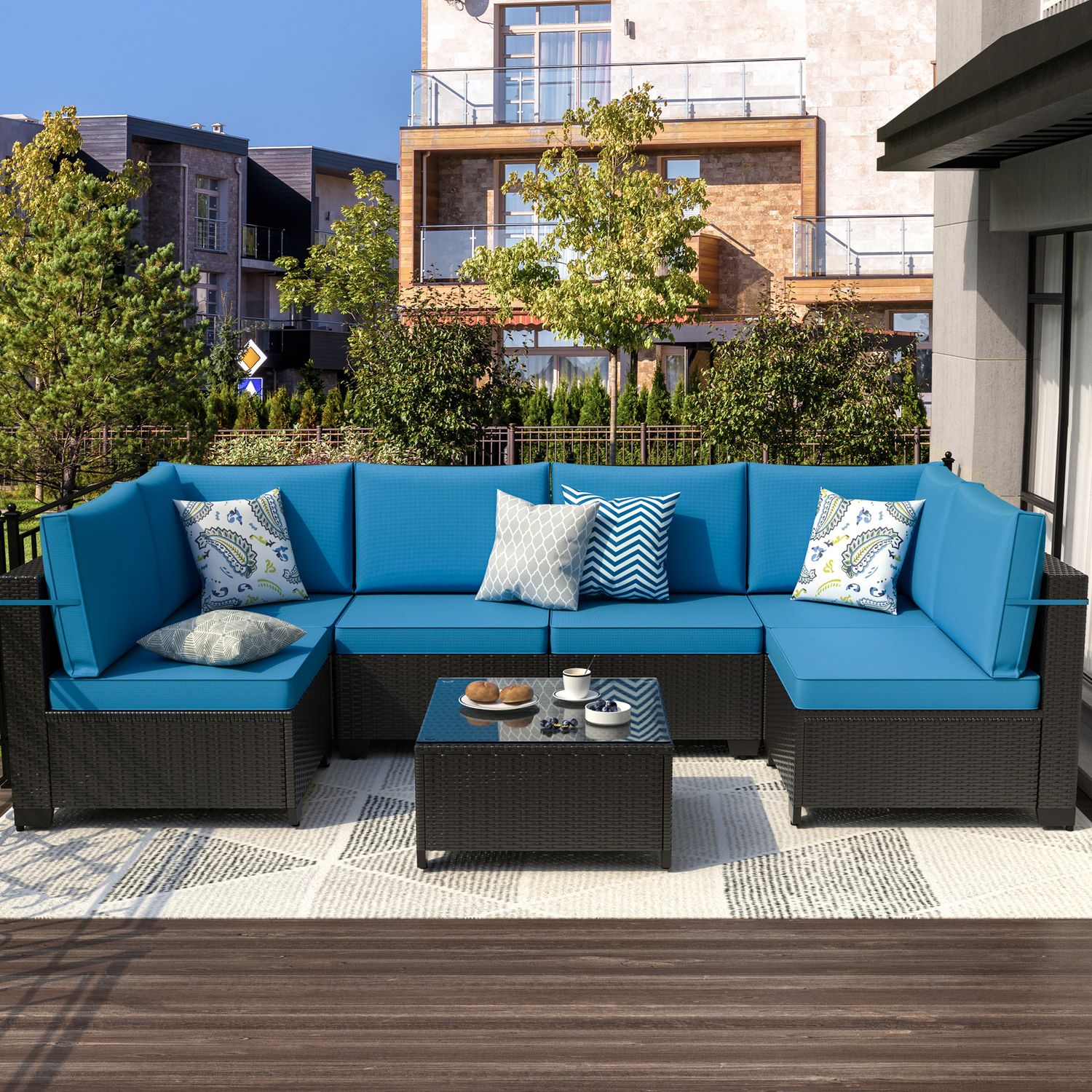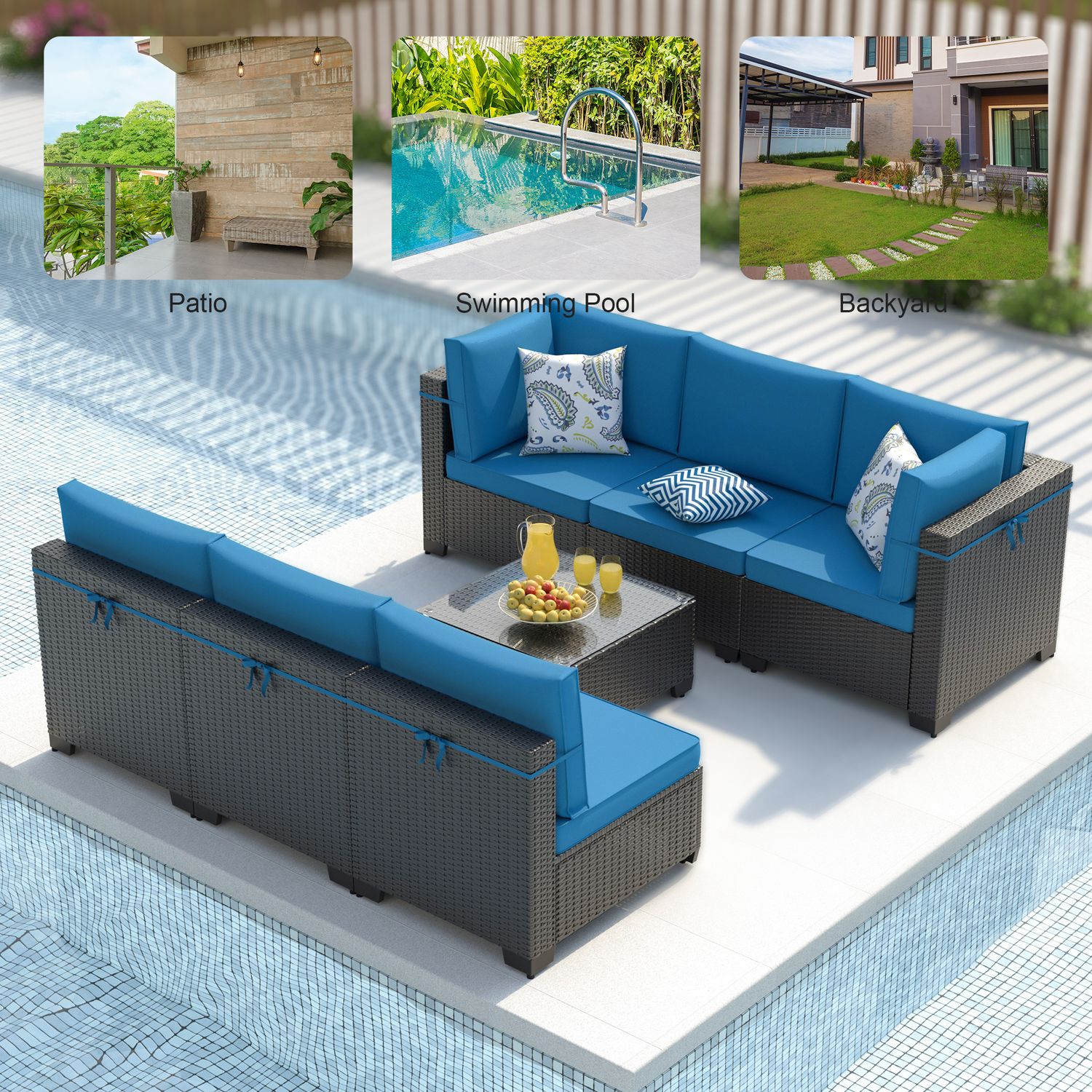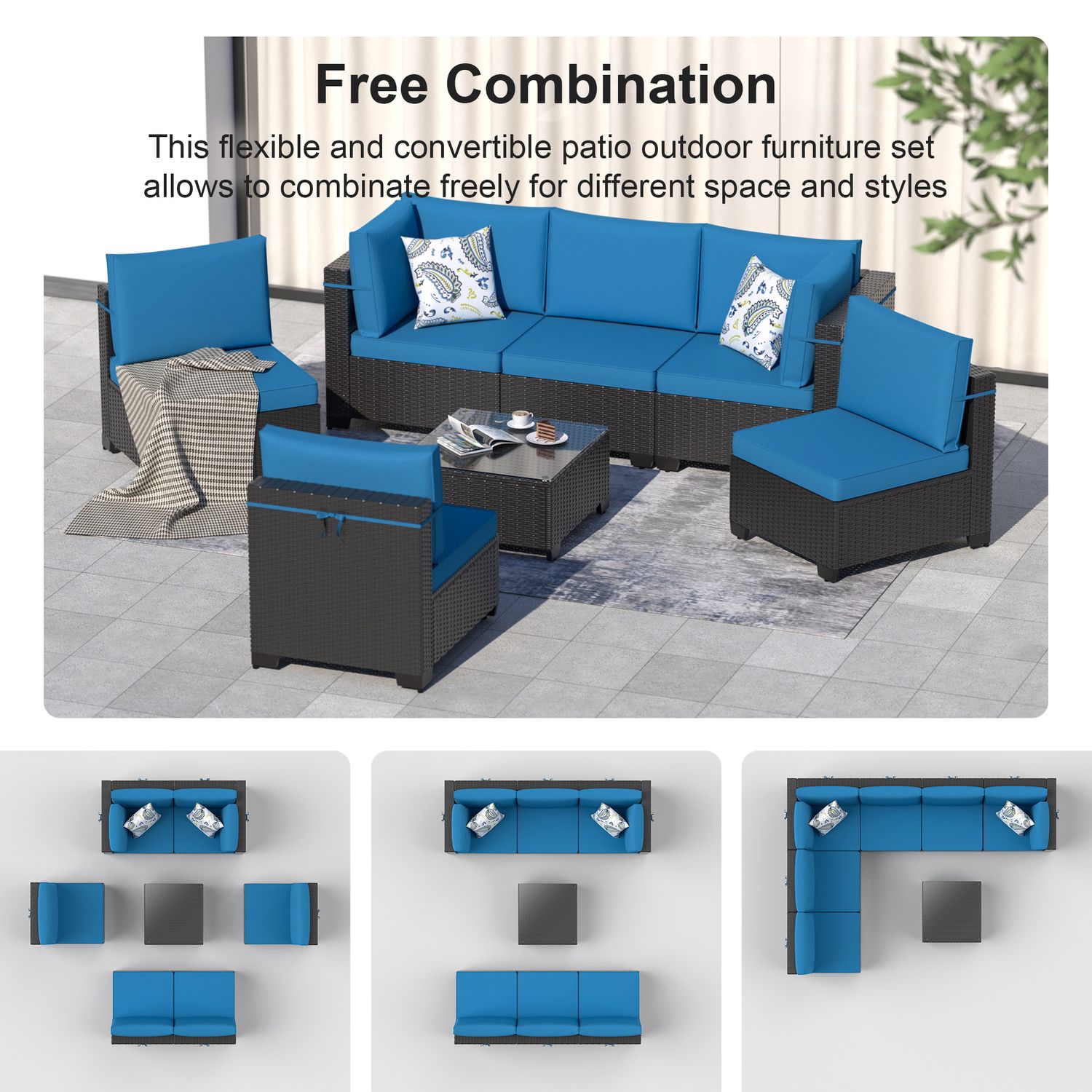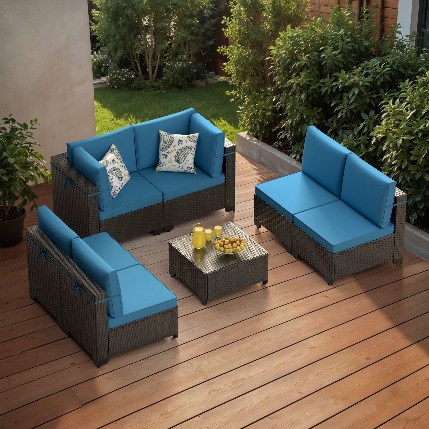 Phonjoroo Patio Furniture Set 7 Pieces Modular Outdoor Sectional Wicker Conversation Sets Patio Couch All Weather Sectional Patio Seating Sofas