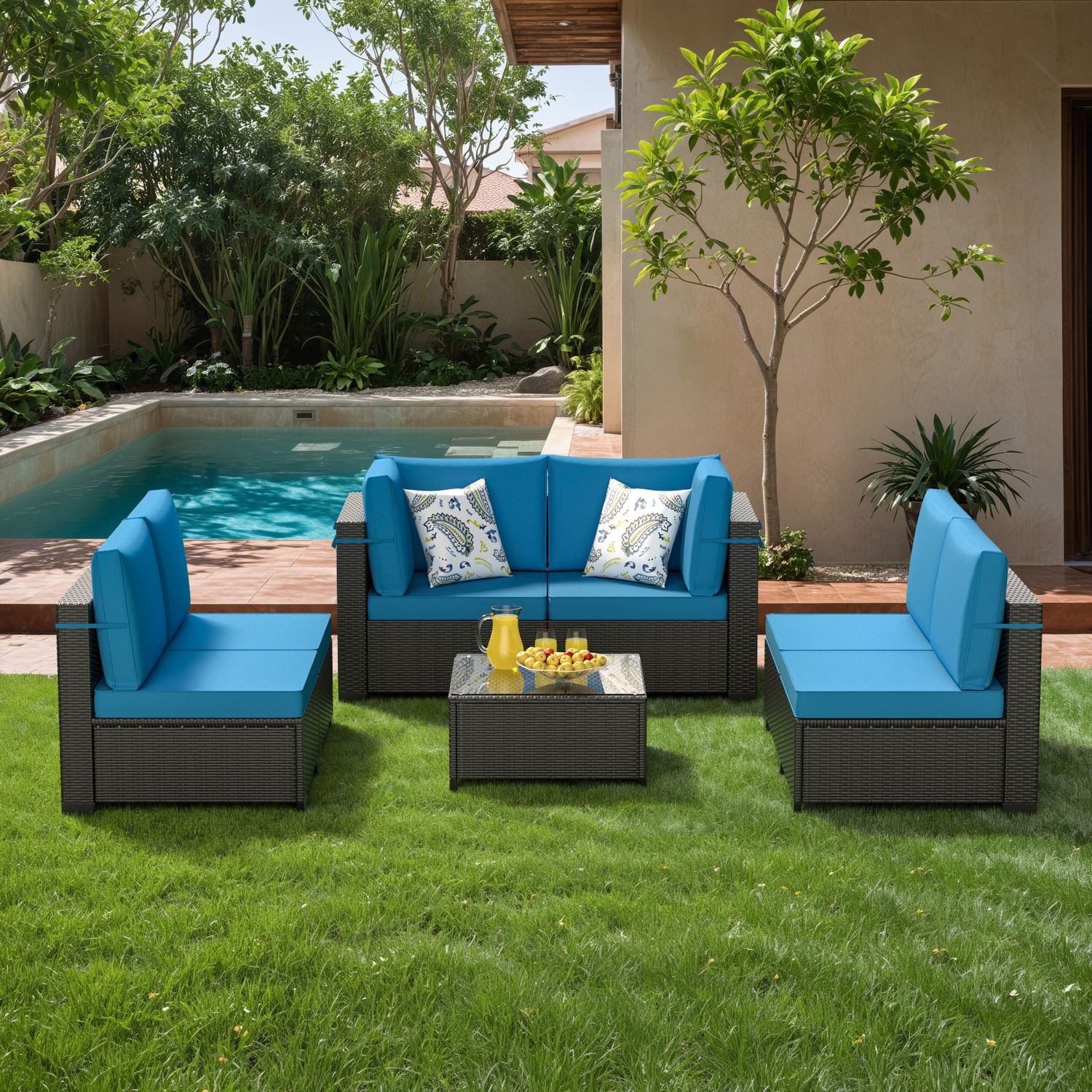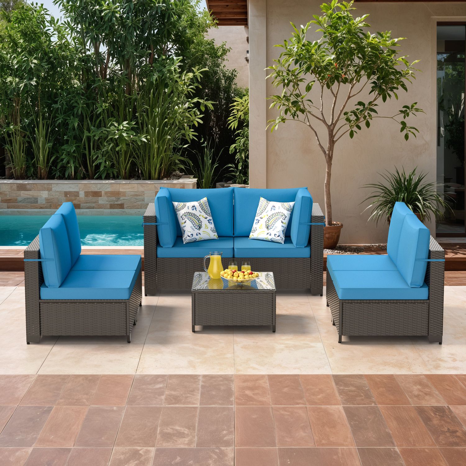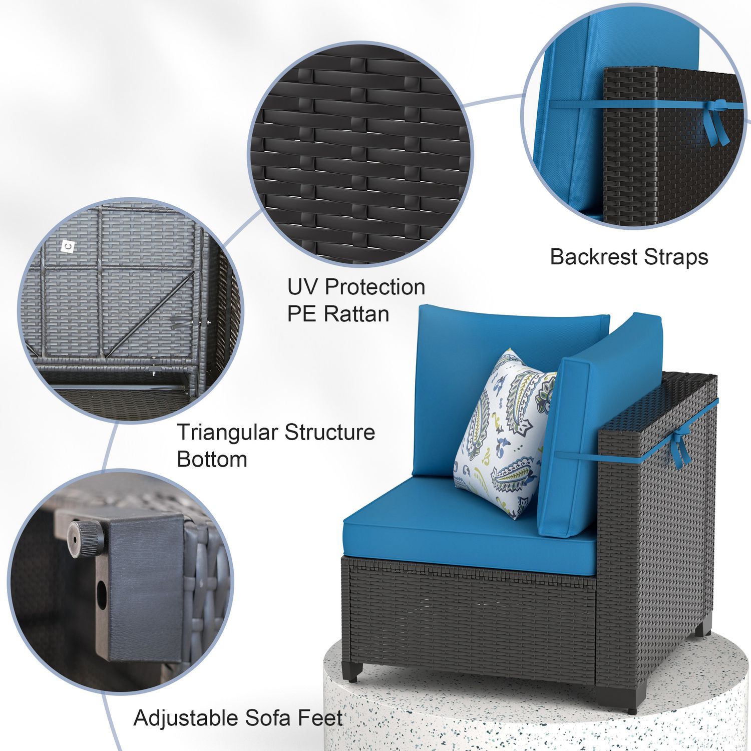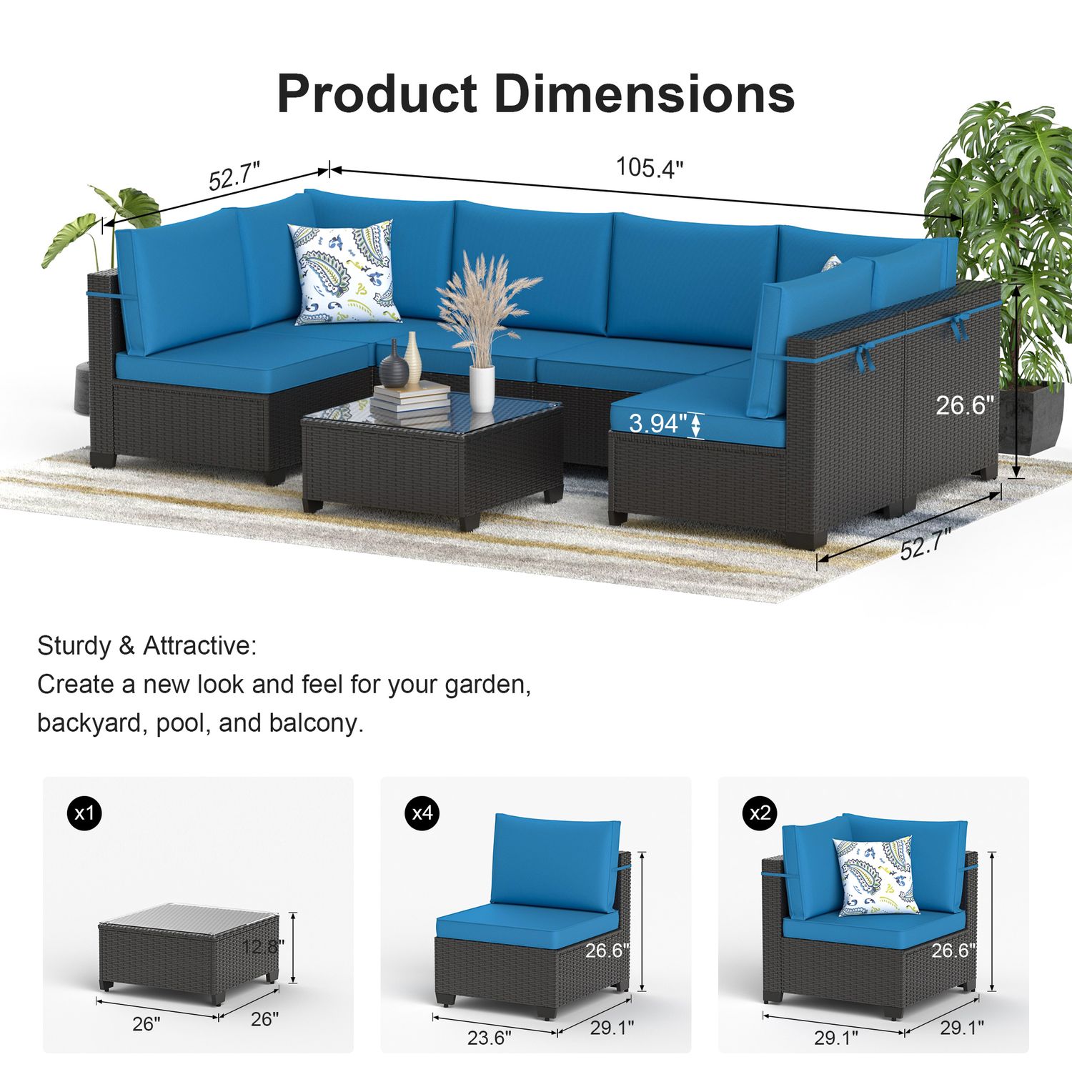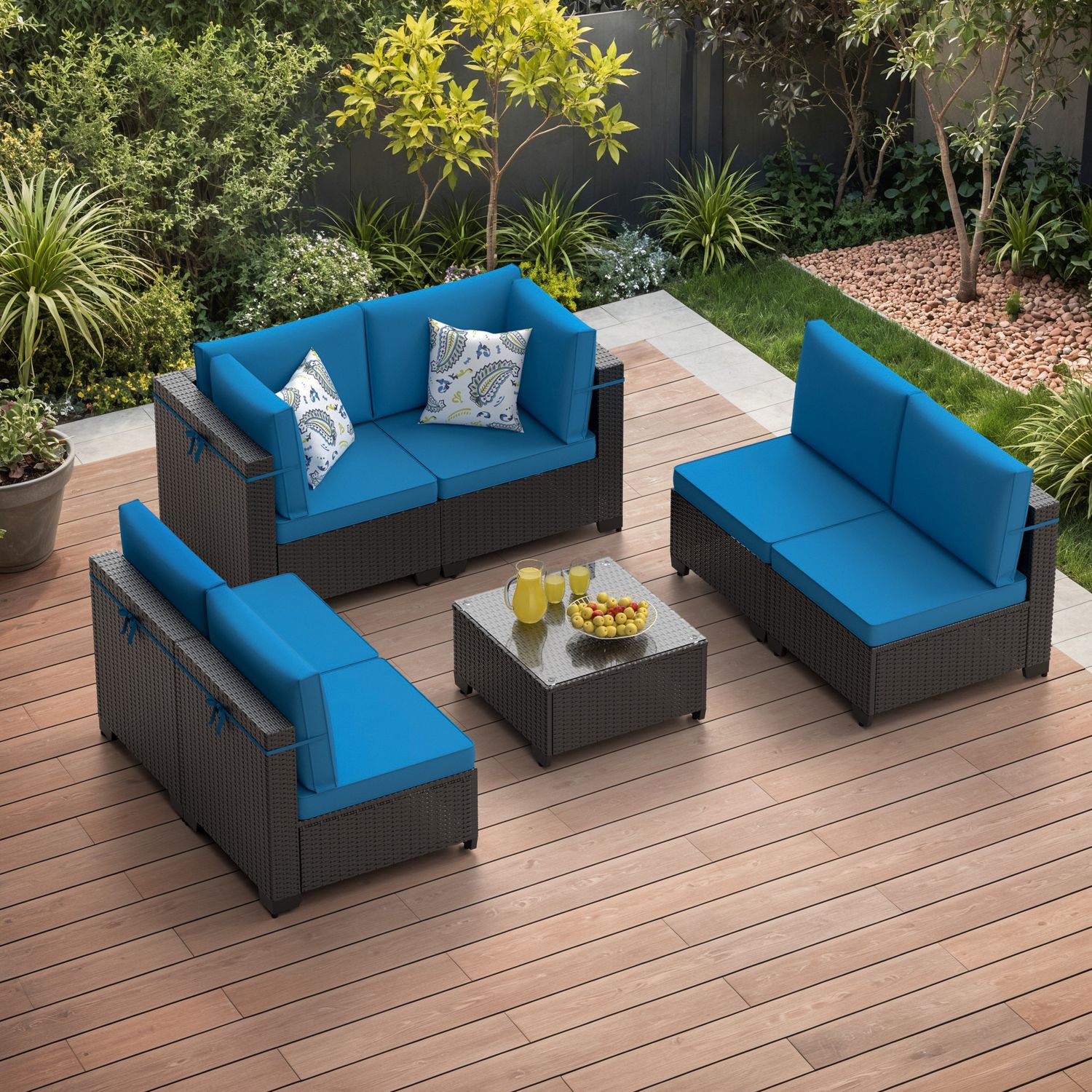 Phonjoroo Patio Furniture Set 7 Pieces Modular Outdoor Sectional Wicker Conversation Sets Patio Couch All Weather Sectional Patio Seating Sofas