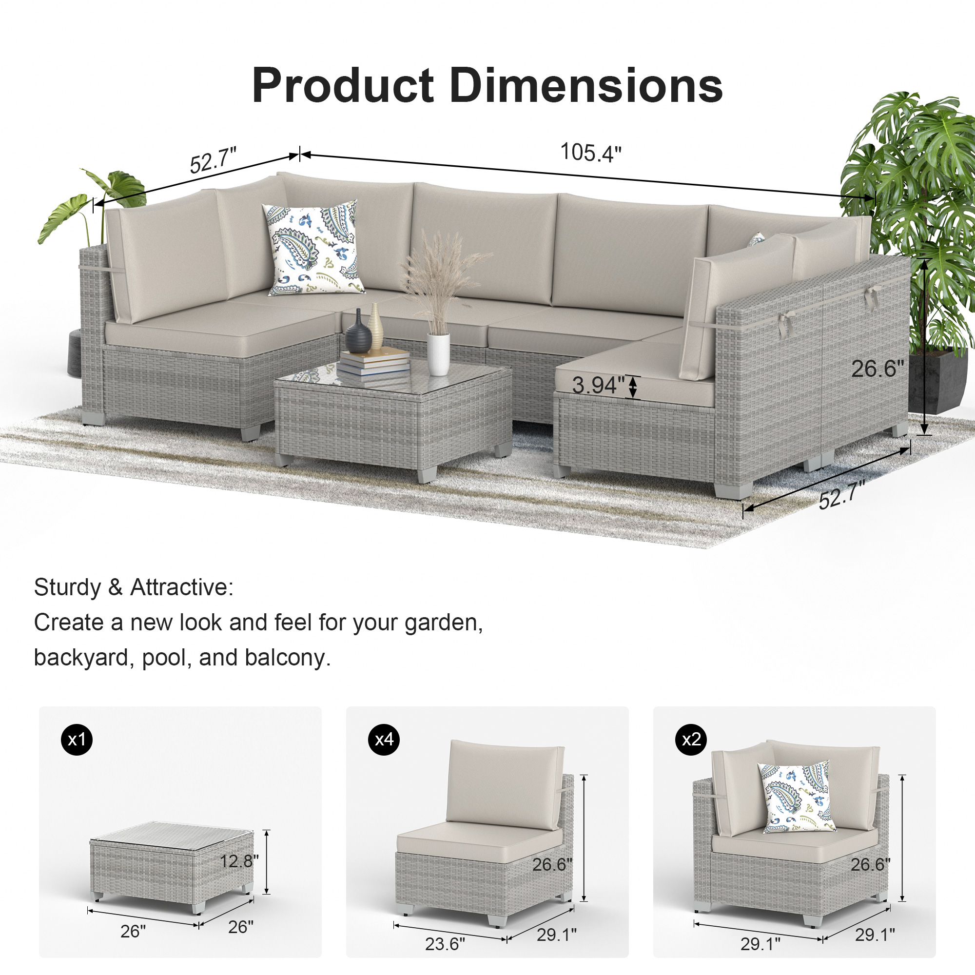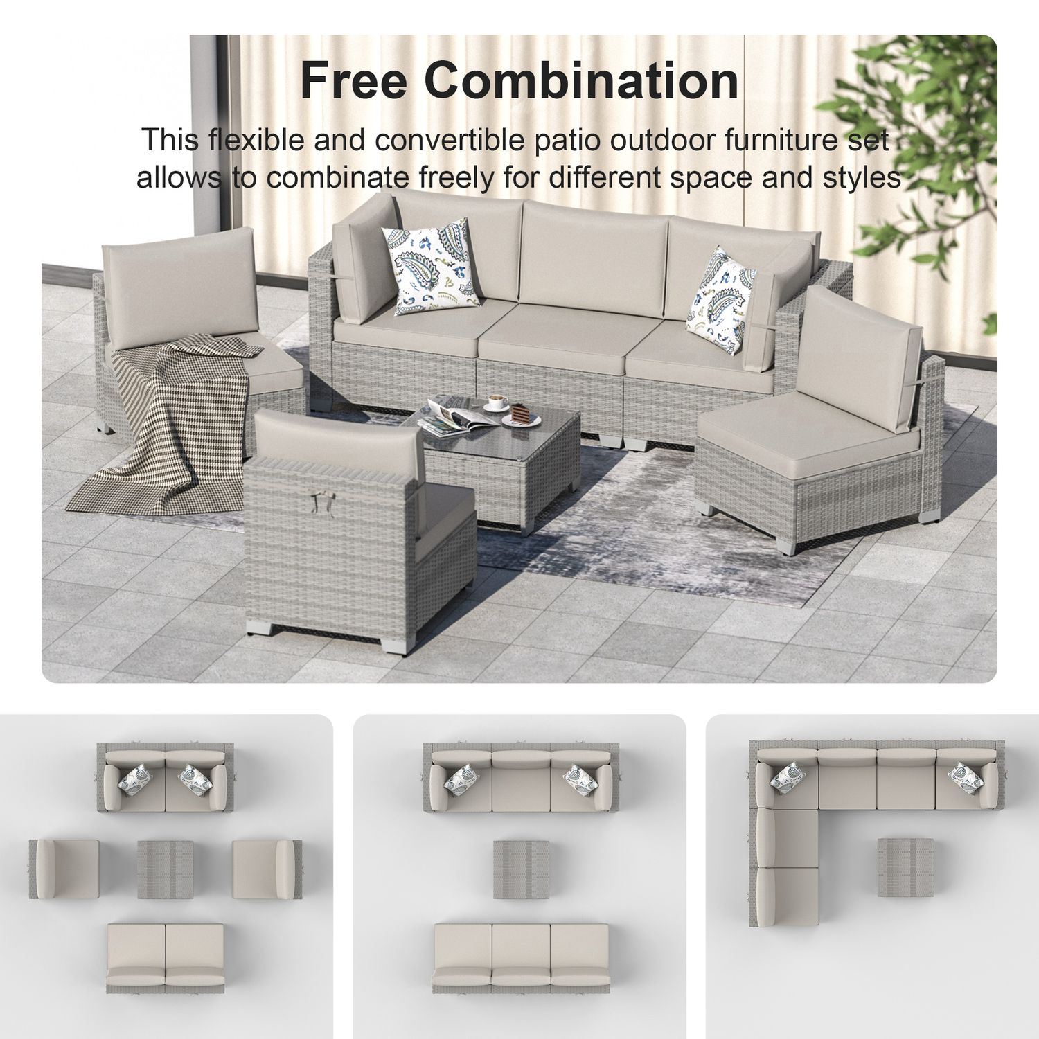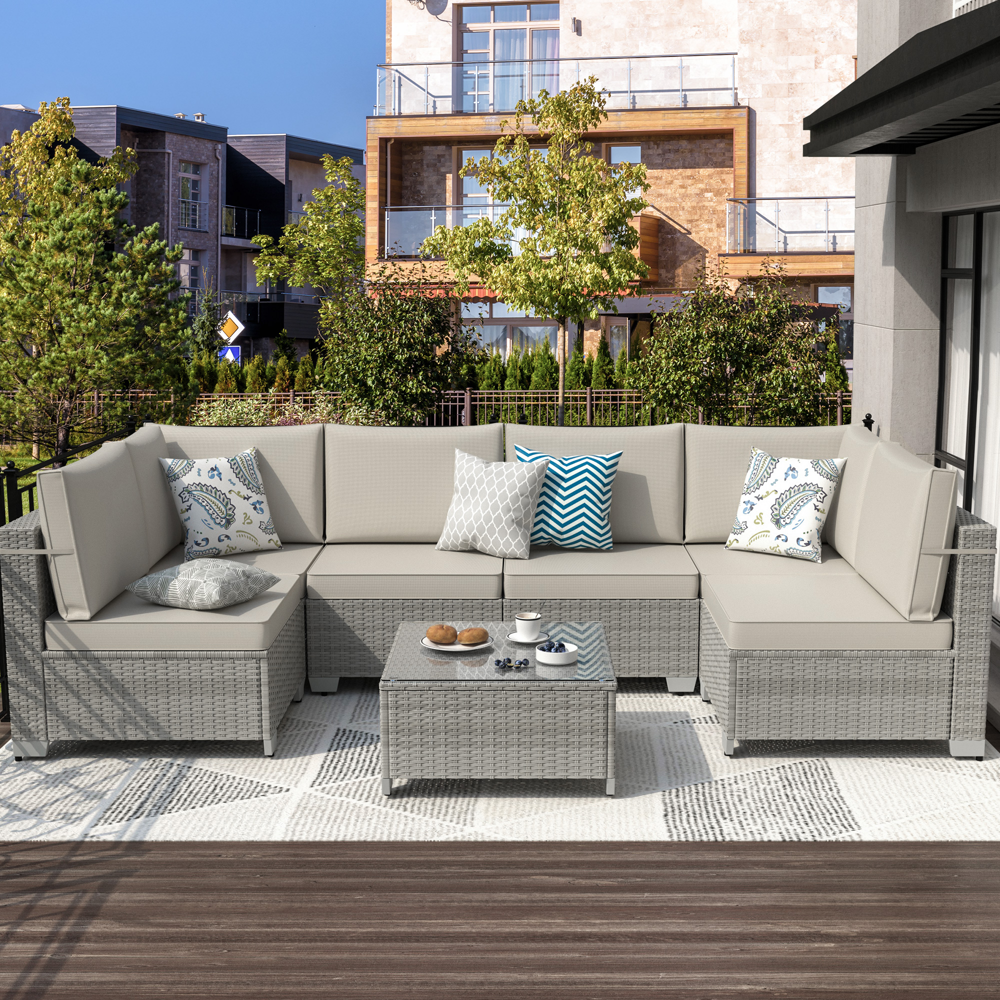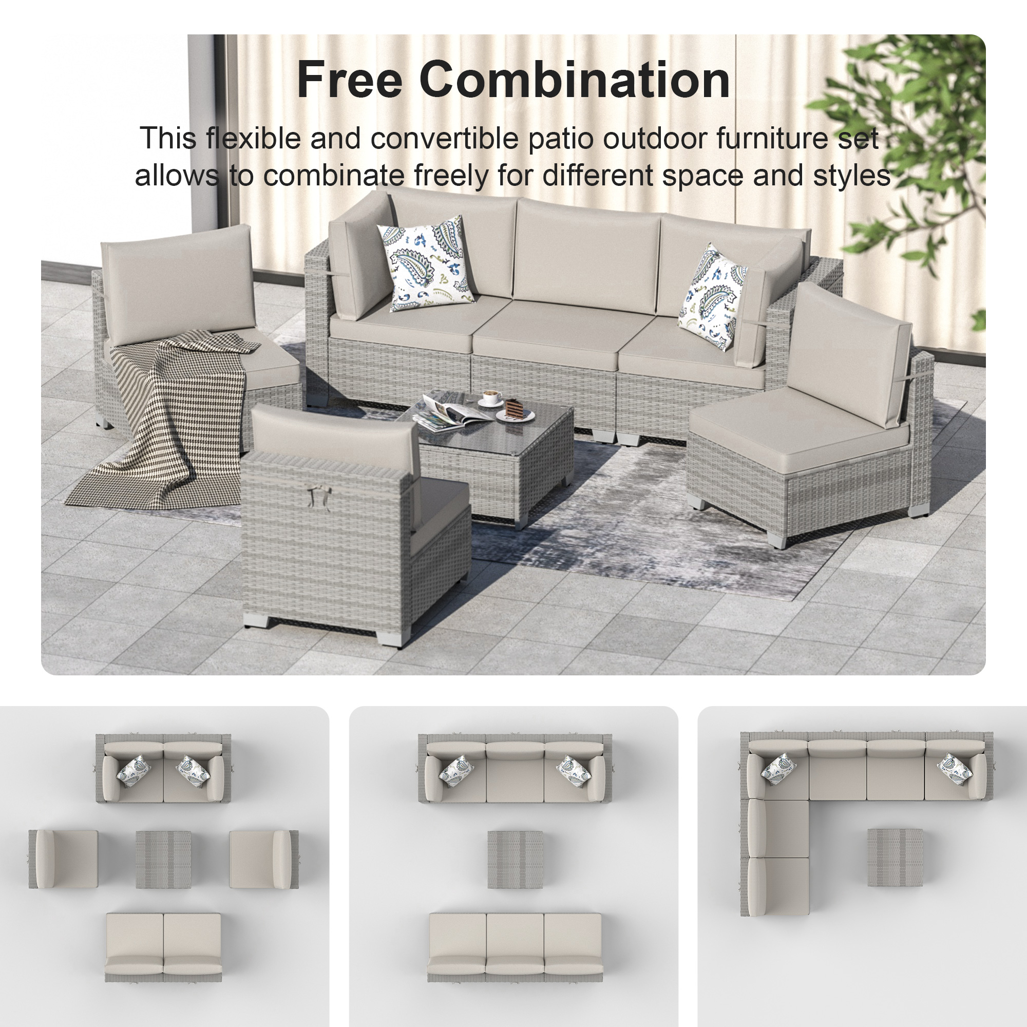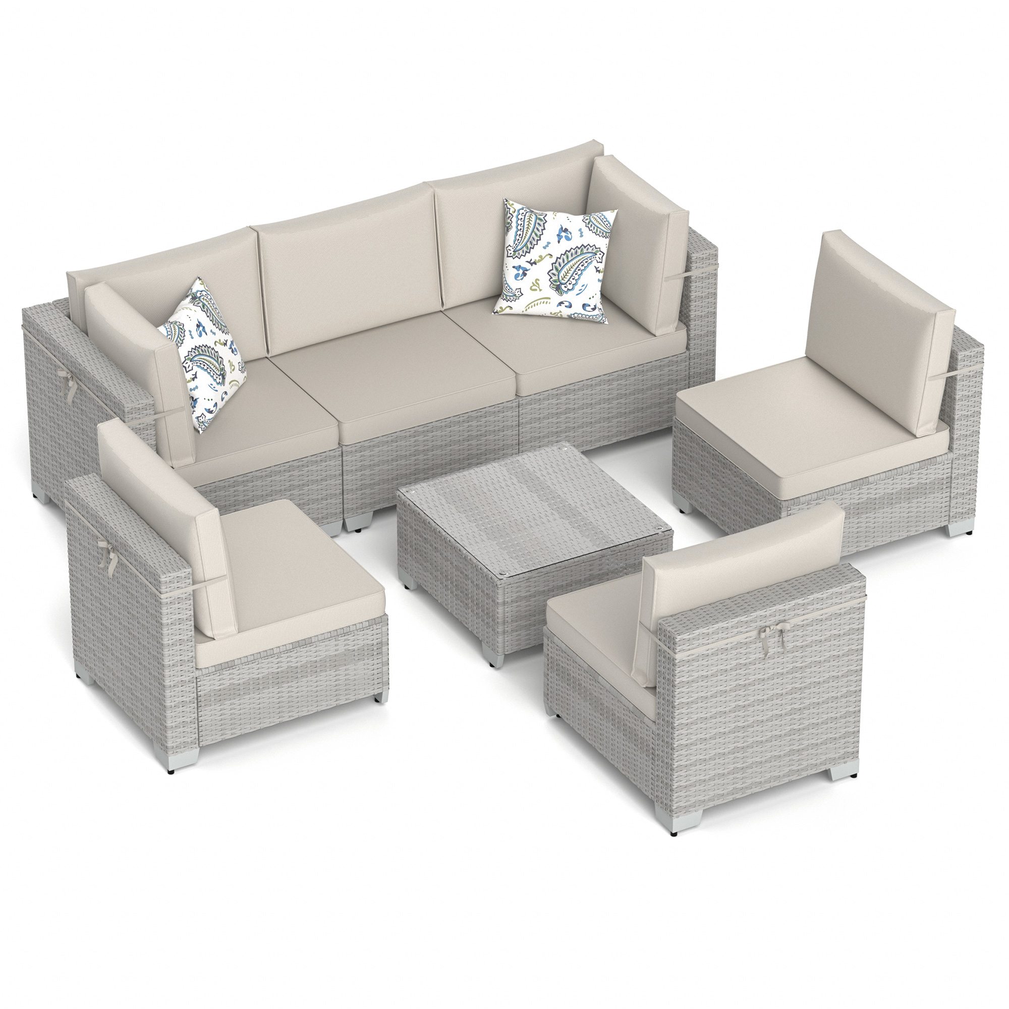 Phonjoroo Patio Furniture Set 7 Pieces Modular Outdoor Sectional Wicker Conversation Sets Patio Couch All Weather Sectional Patio Seating Sofas