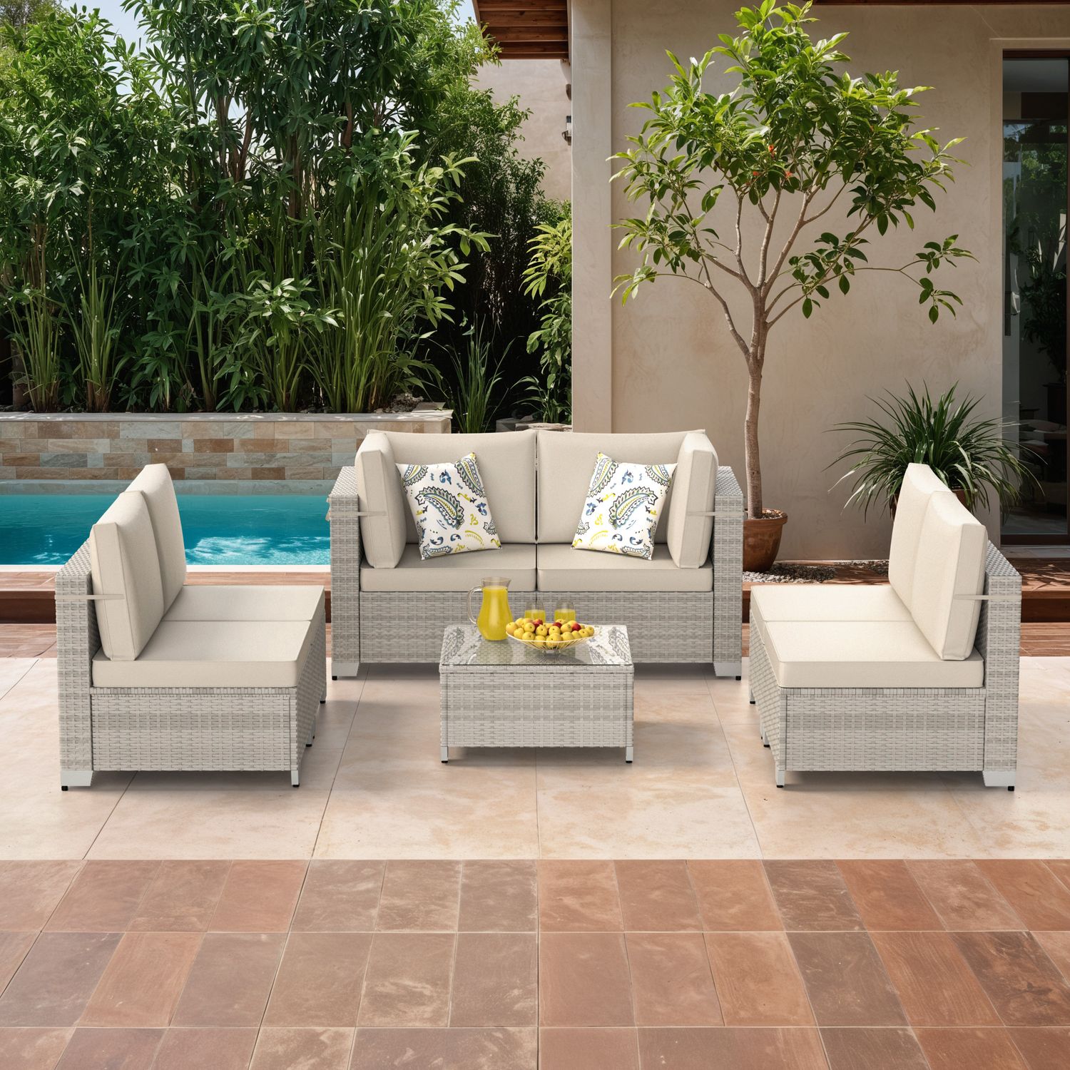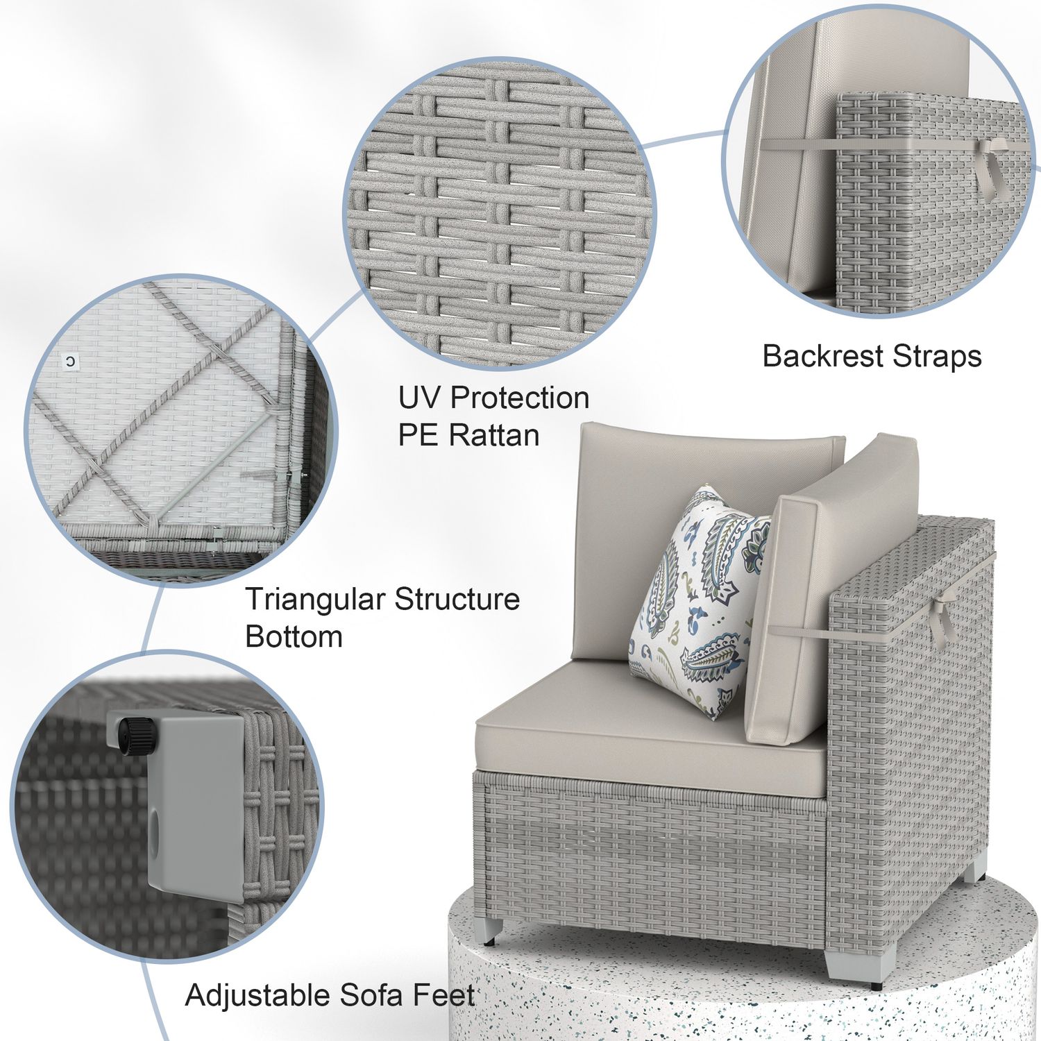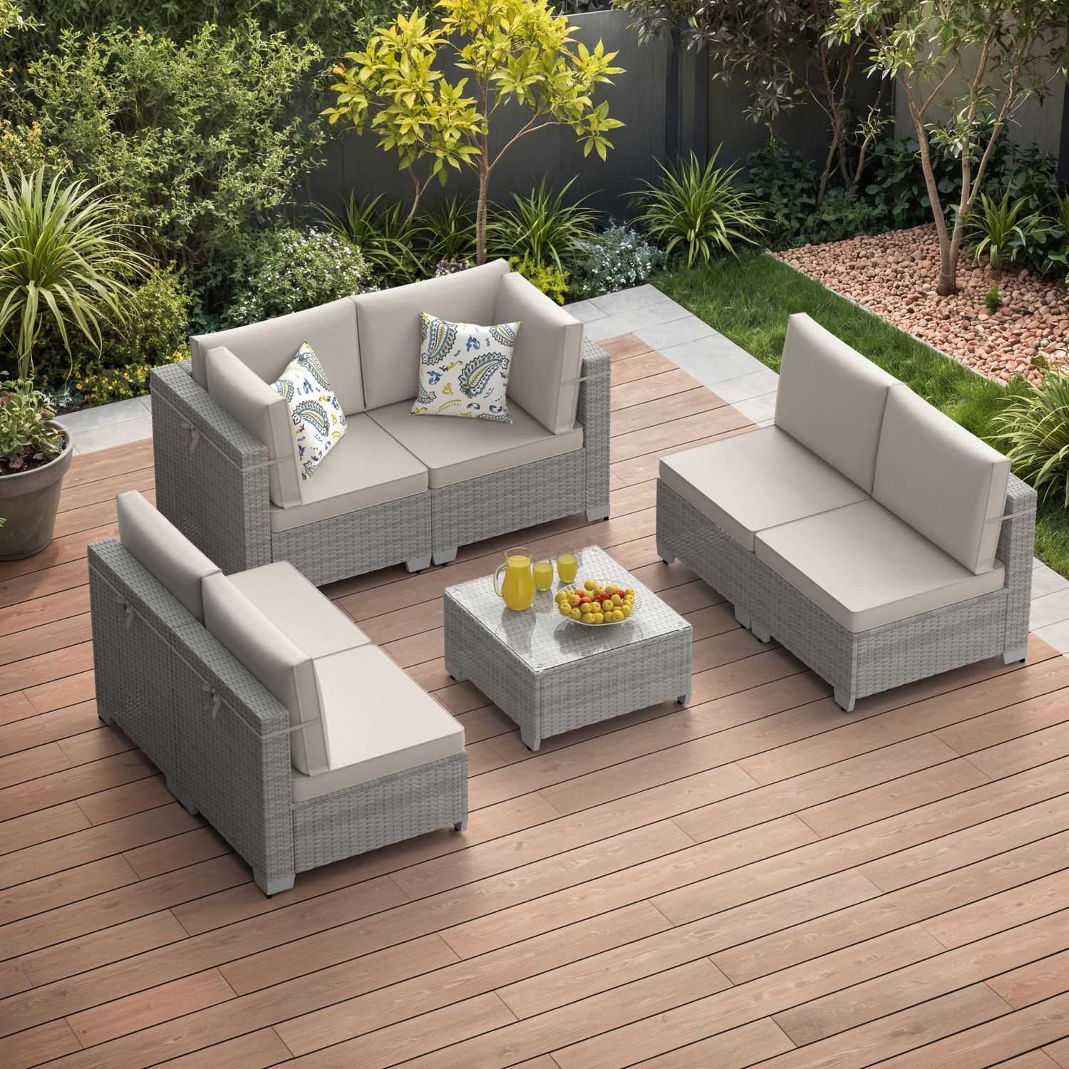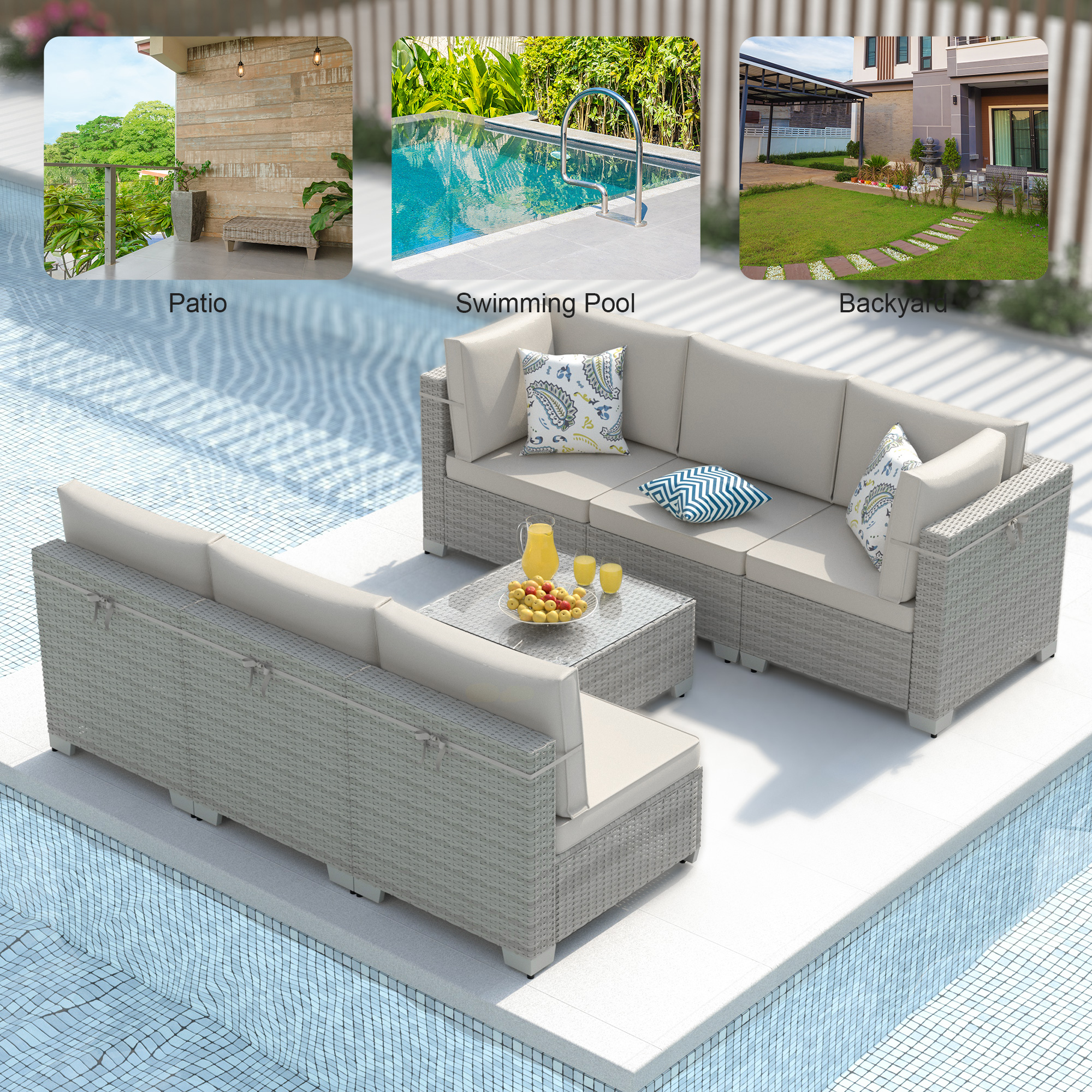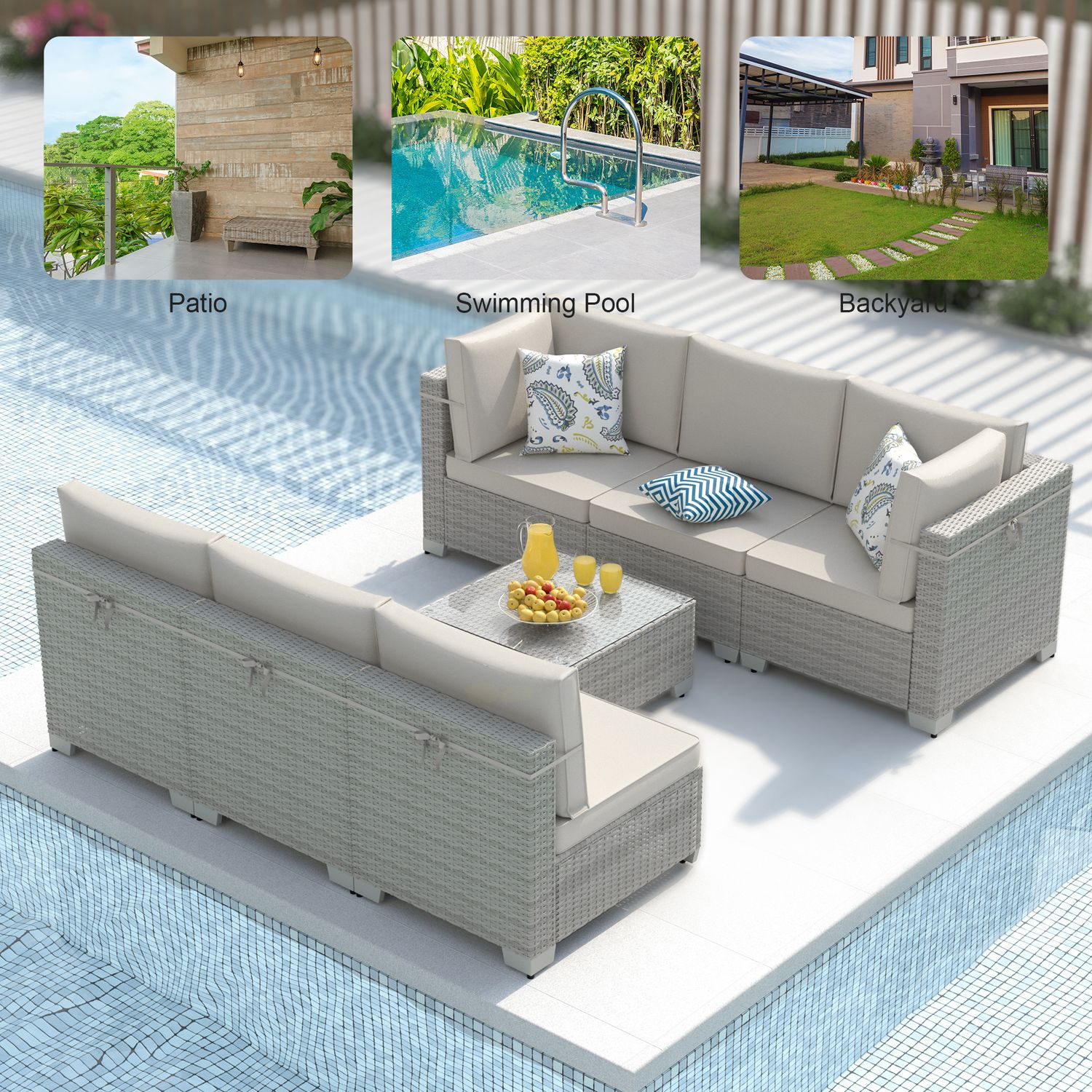Phonjoroo Patio Furniture Set 7 Pieces Modular Outdoor Sectional Wicker Conversation Sets Patio Couch All Weather Sectional Patio Seating Sofas
