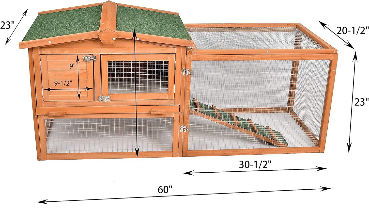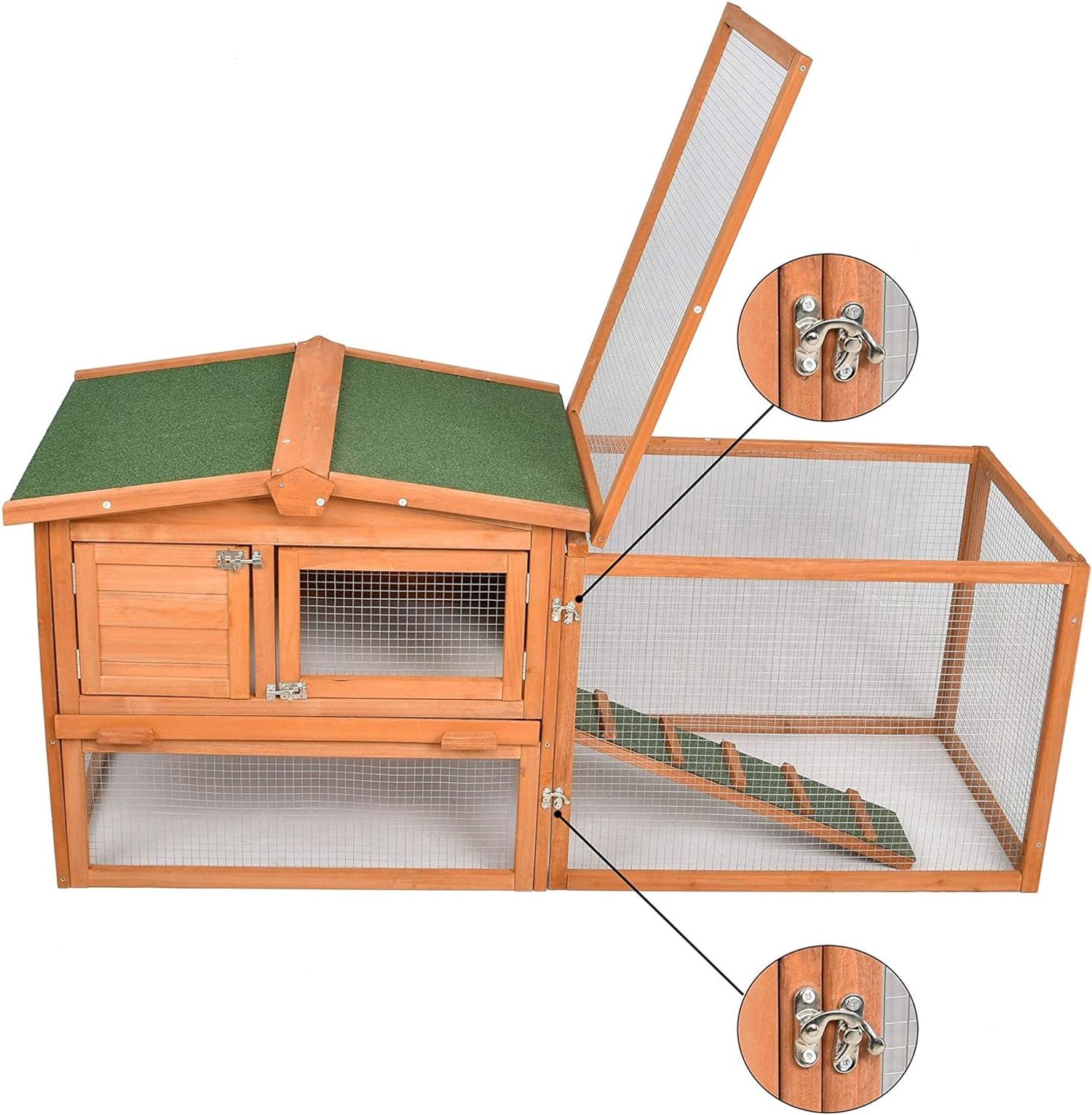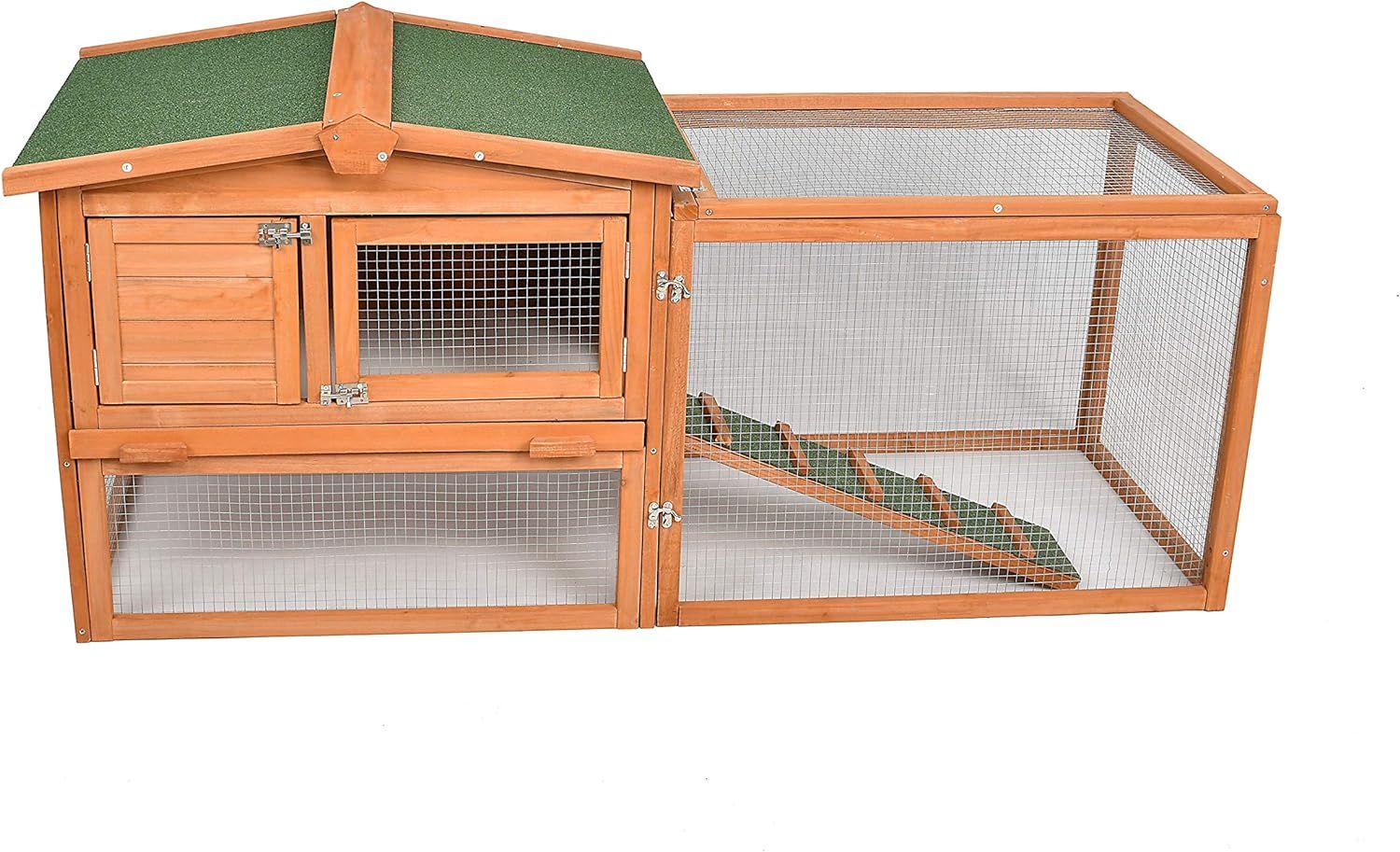 Phonjoroo Rabbit Hutch Chicken Coop for 2 Chickens Outdoor Wooden Pet House Bunny Cage Coop for Small Animals
