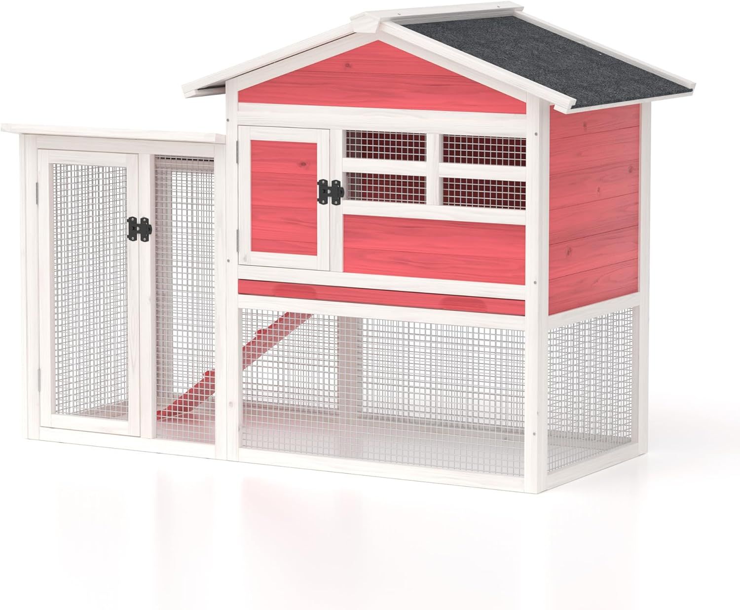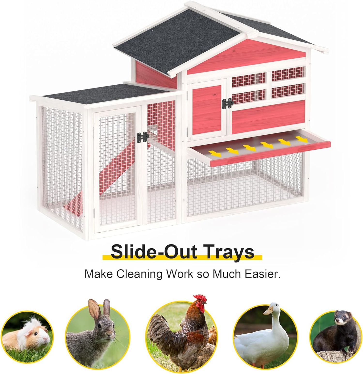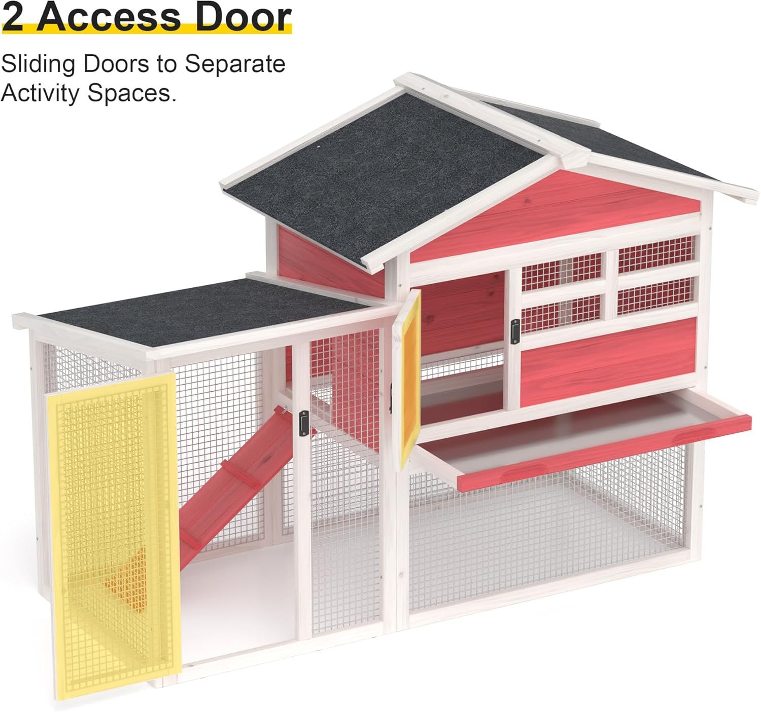 Phonjoroo Rabbit Hutch Indoor Bunny Cage Outdoor Chicken Coop Bunny House Wooden Guinea Pig Cages with Waterproof Top, Pull Out Tray & Ramp