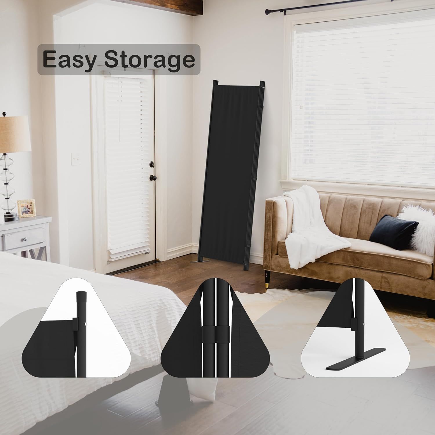 Phonjoroo Room Divider Folding Privacy Screens 4 Panel Partitions 88" Dividers Portable Separating for Home Office Bedroom Dorm Decor