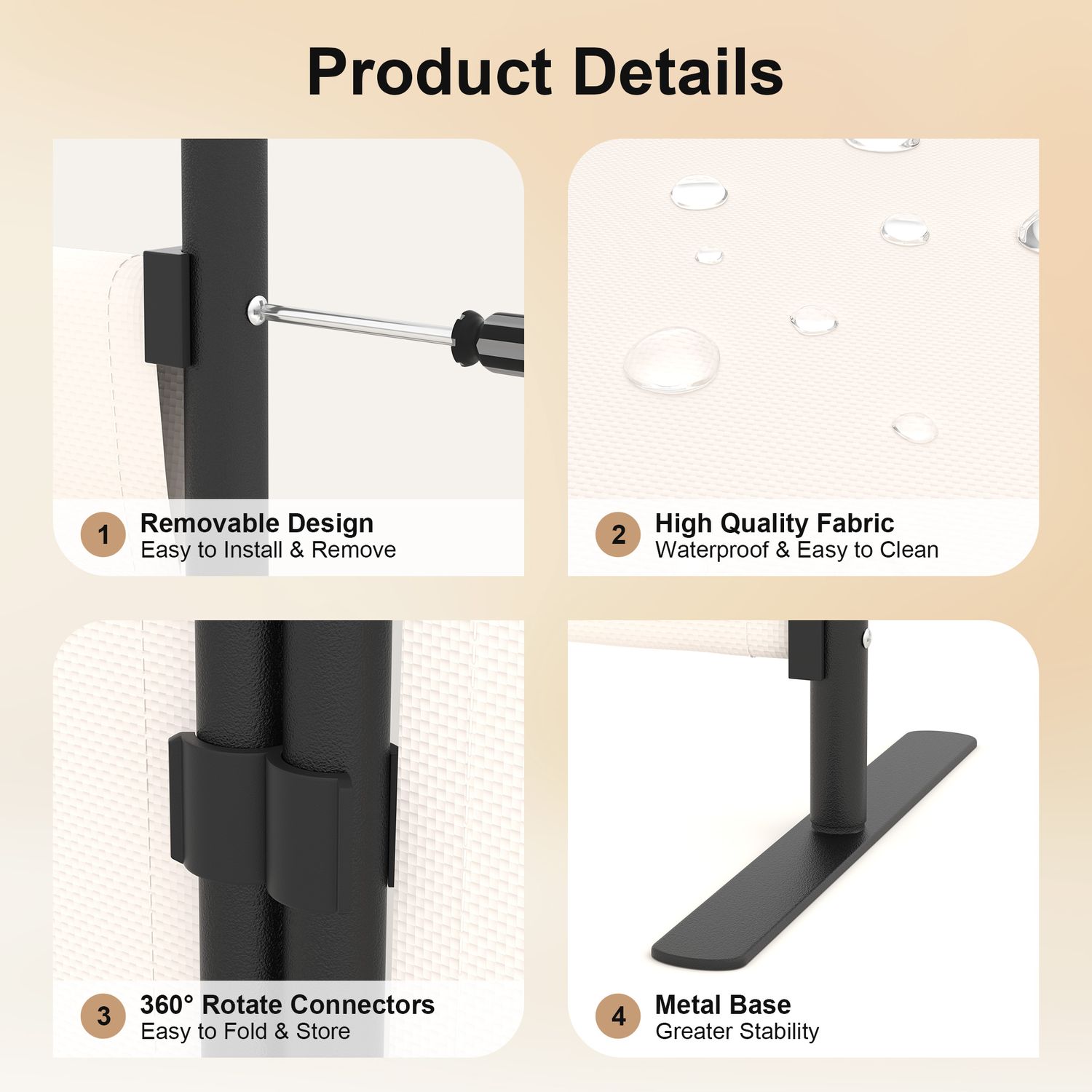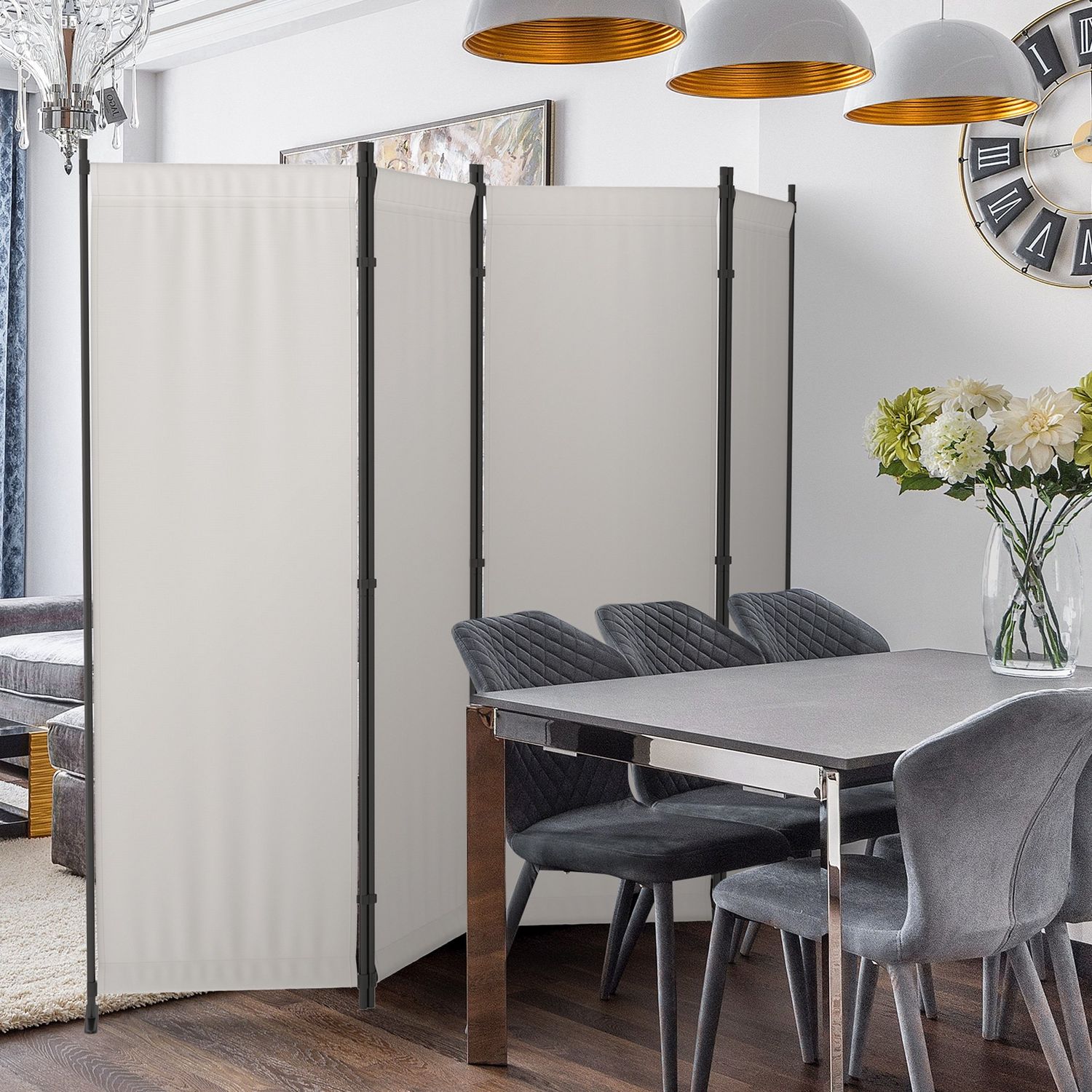 Phonjoroo Room Divider Folding Privacy Screens 4 Panel Partitions 88" Dividers Portable Separating for Home Office Bedroom Dorm Decor