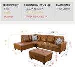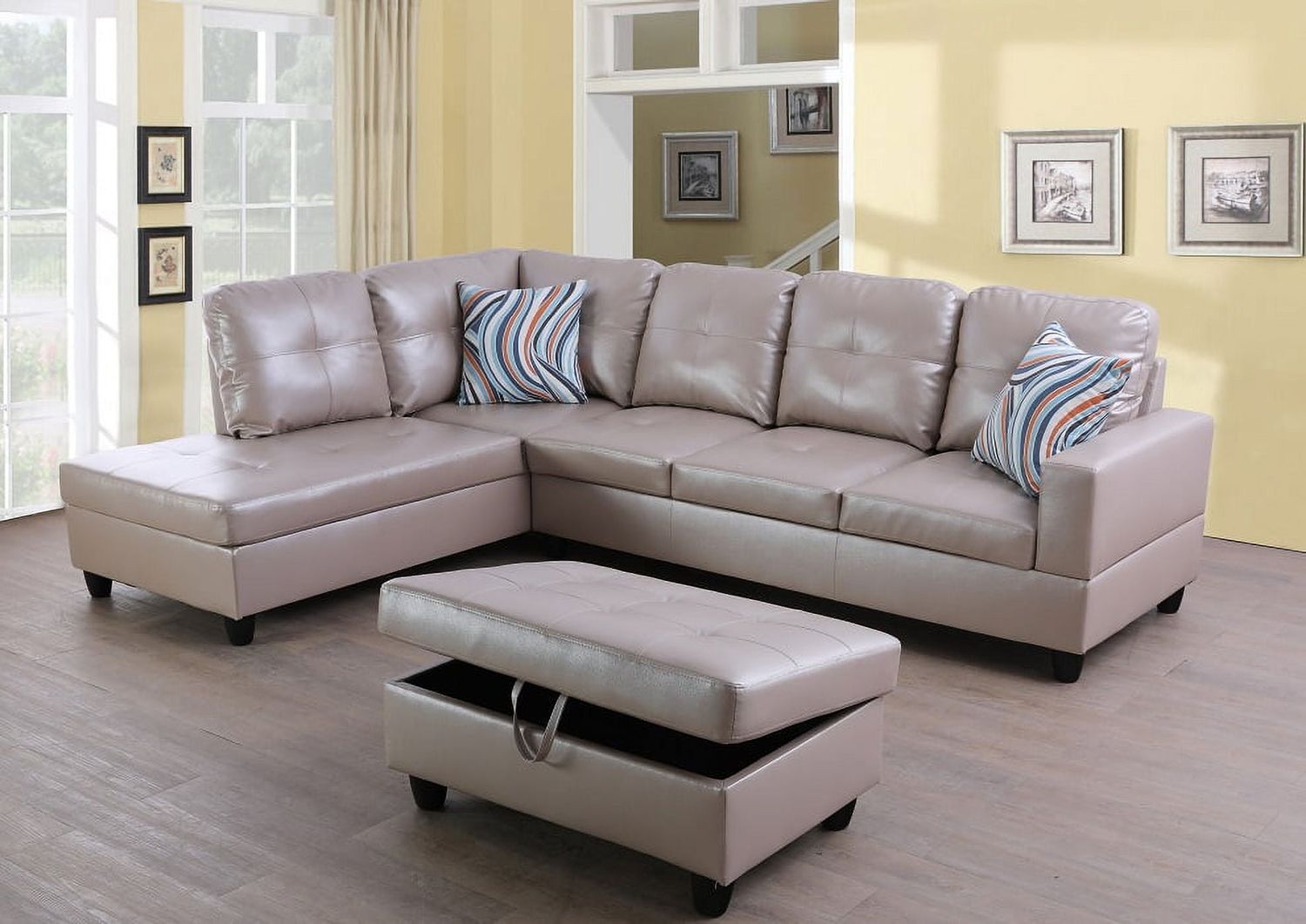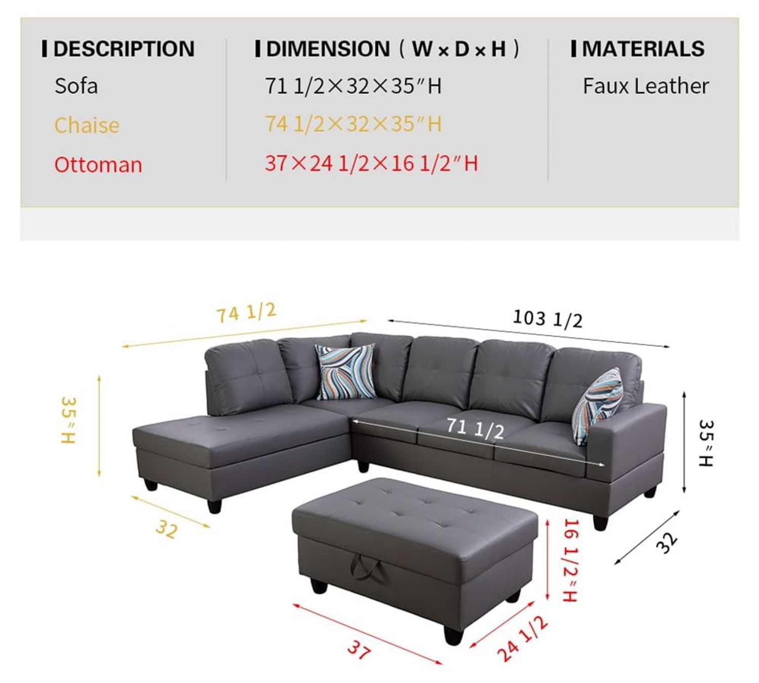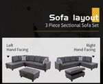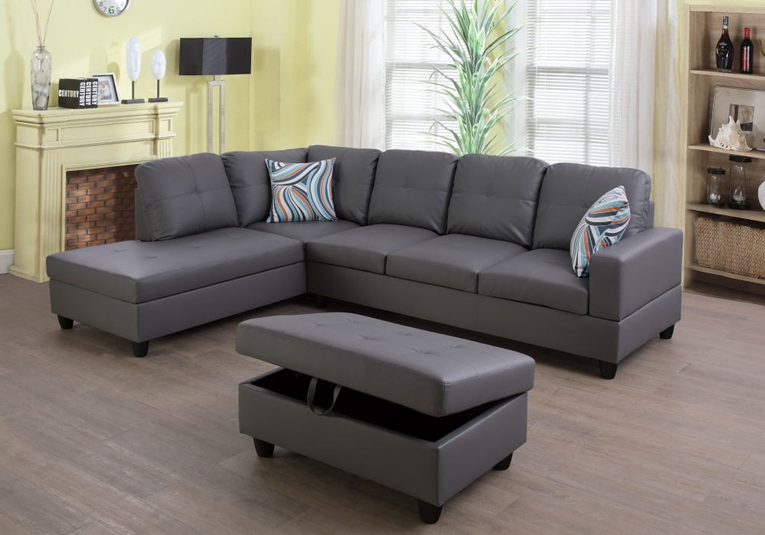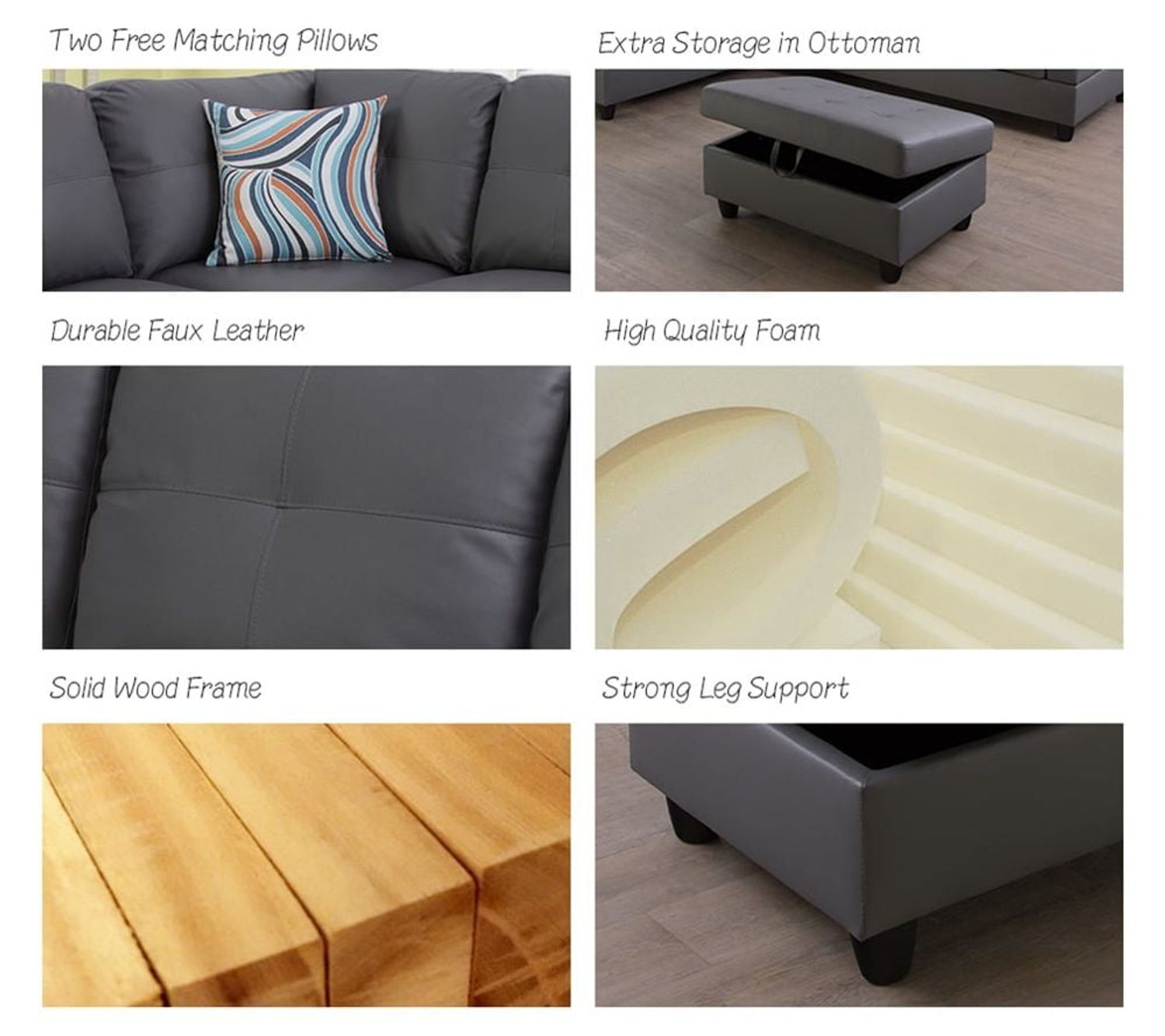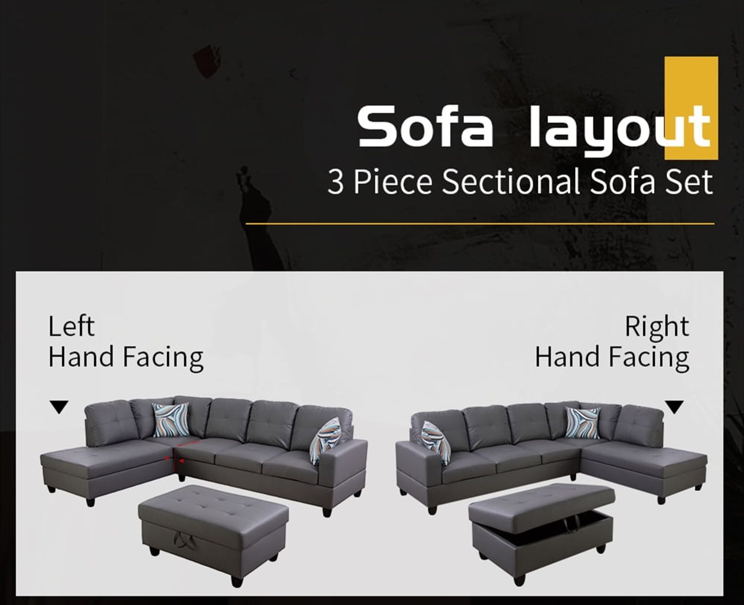 PonLiving Furniture Faux Leather 3 Piece Sectional Sofa Couch Set, L-Shaped Modern Sofa with Chaise Storage Ottoman and Pillows for Living Room Furnit