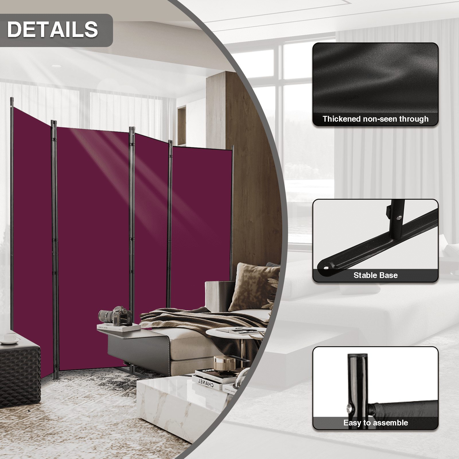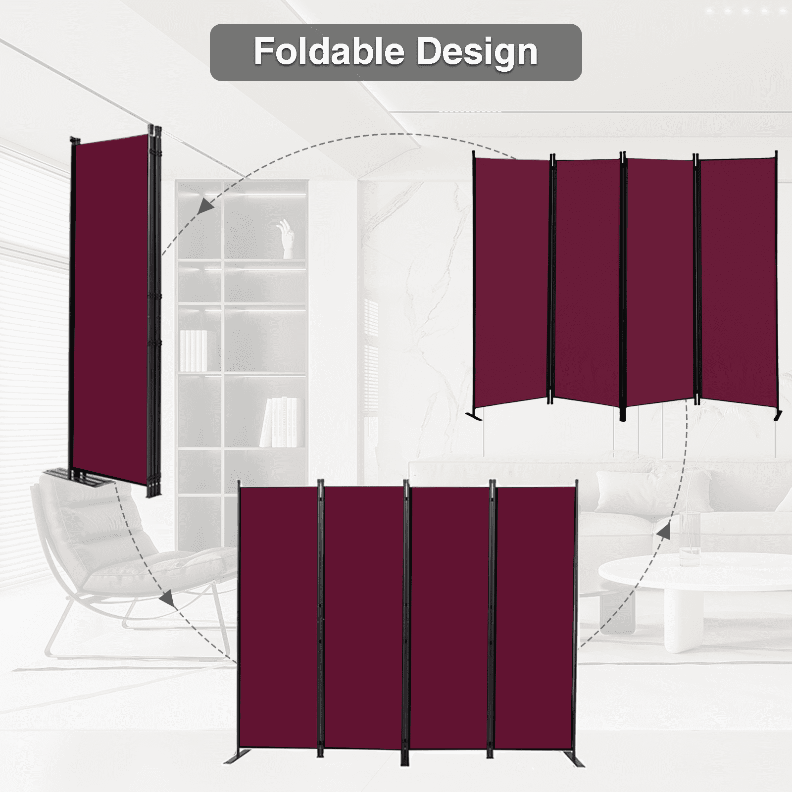 Room Divider Portable Room Dividers and Folding Privacy Screens, 88'' W Fabric Divider for Room Separation, 4 Panel Partition Room Dividers Freestandi