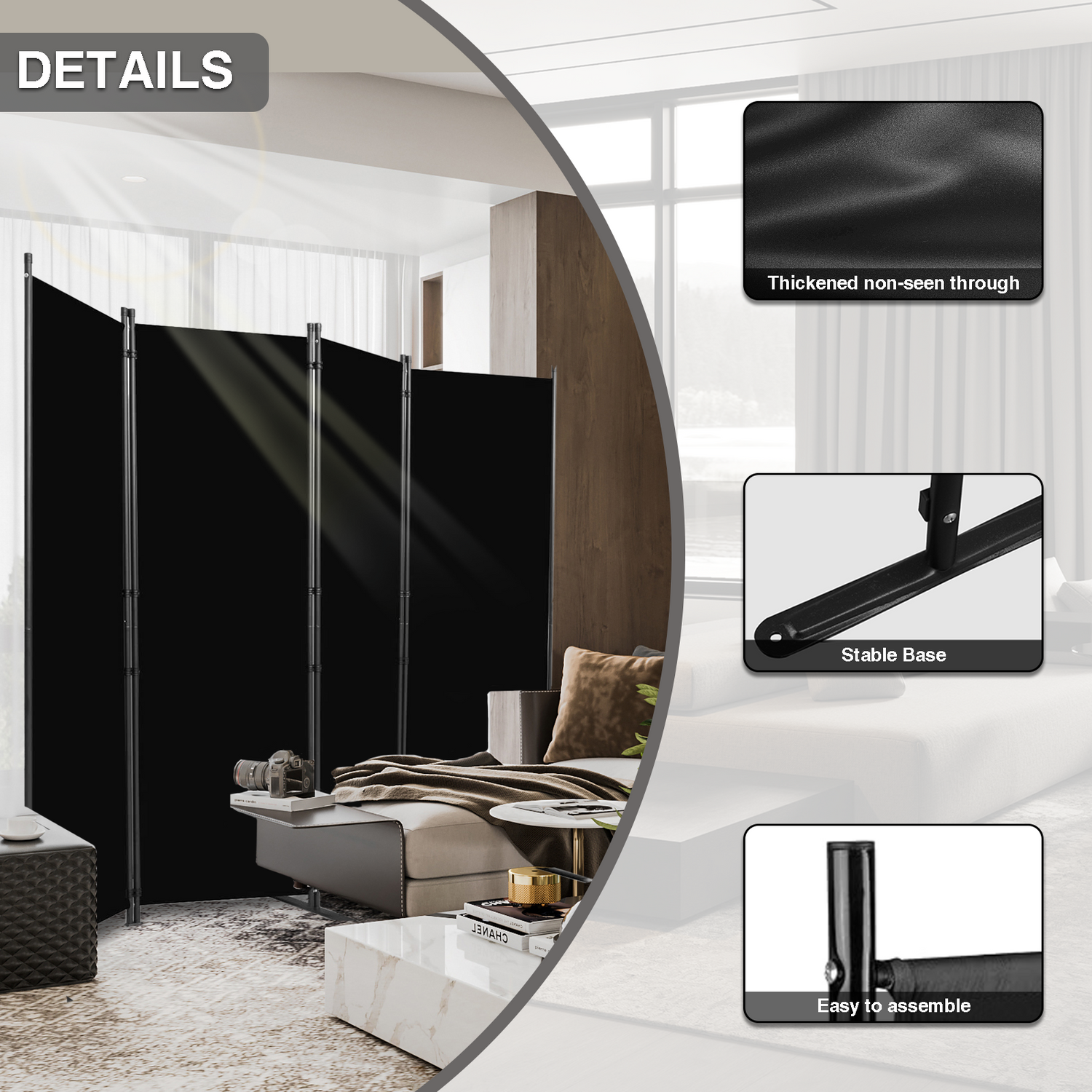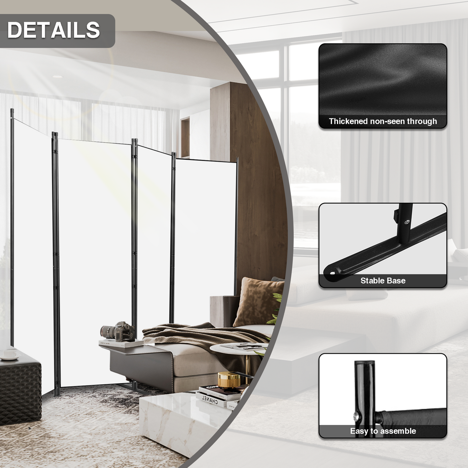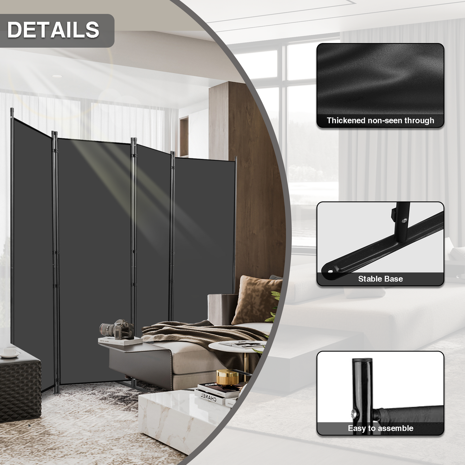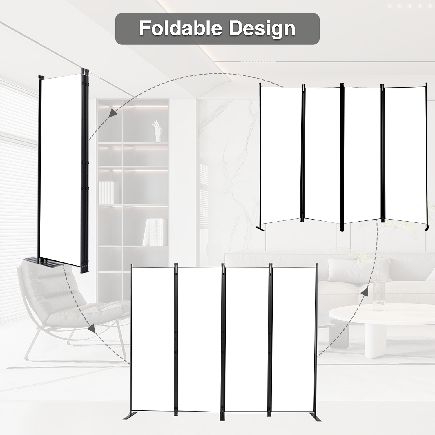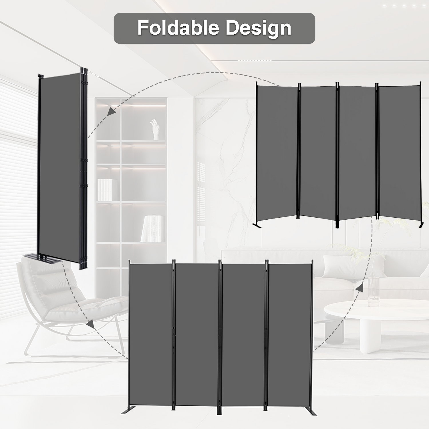 Room Divider Portable Room Dividers and Folding Privacy Screens, 88'' W Fabric Divider for Room Separation,