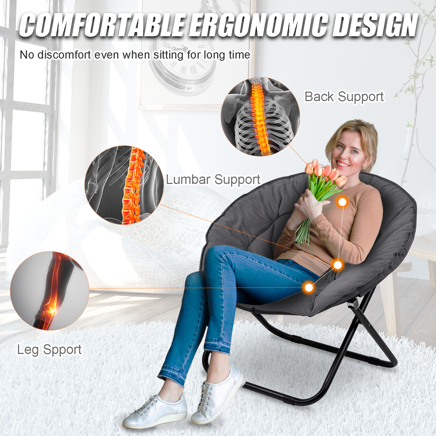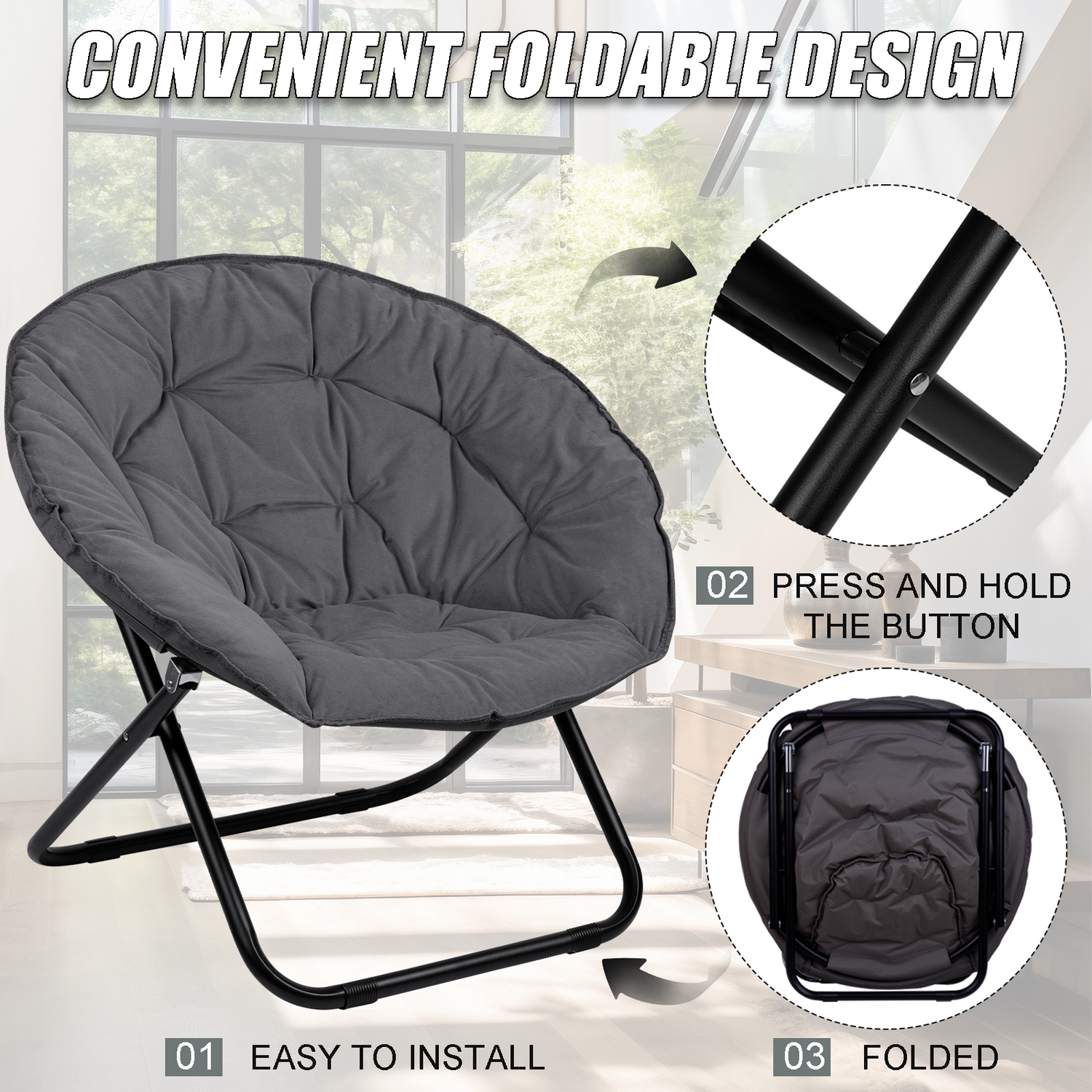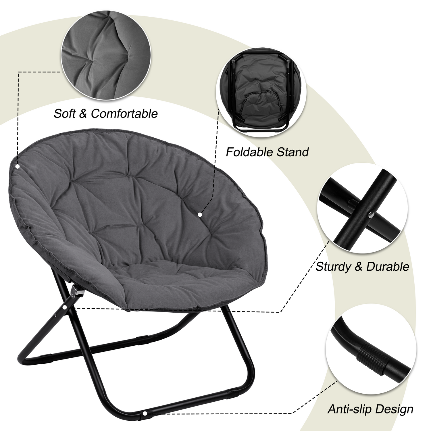 TANGJEAER Folding Chair, Saucer Chair with Metal Frame, Comfy Moon Chairs for Bedroom, Camping, Lounging, Garden and Courtyard (Blue)